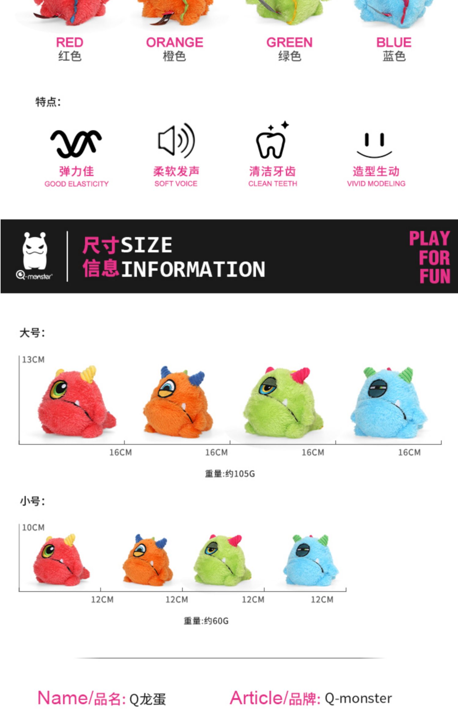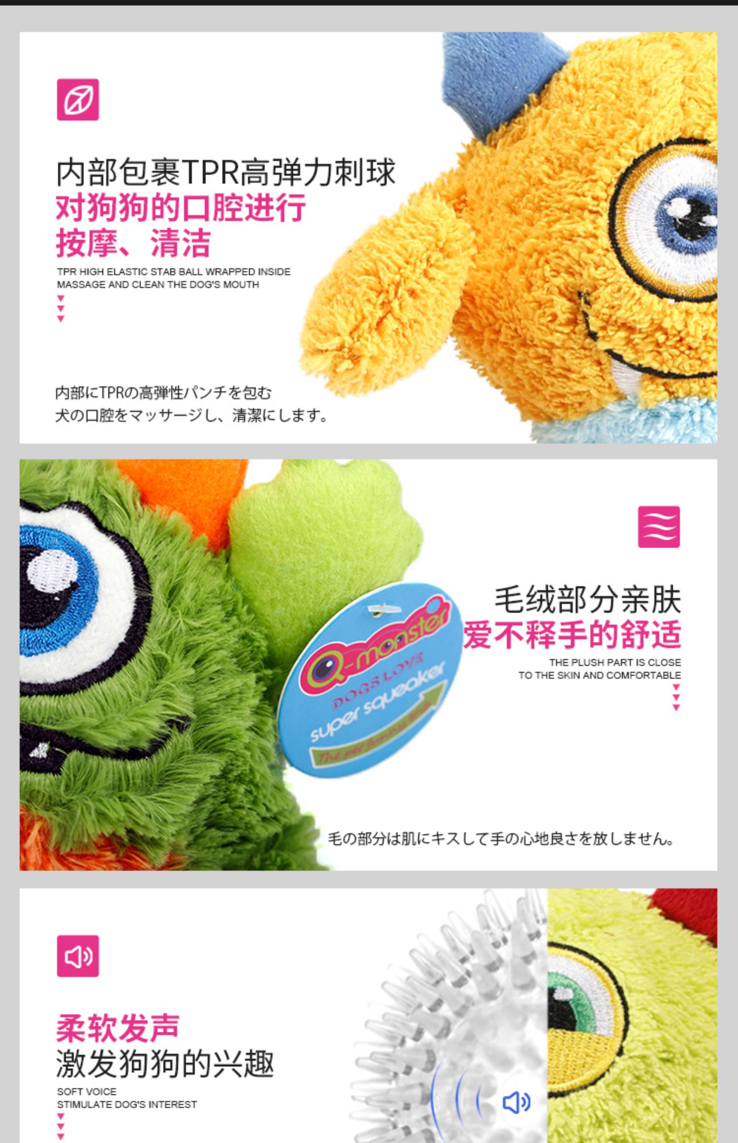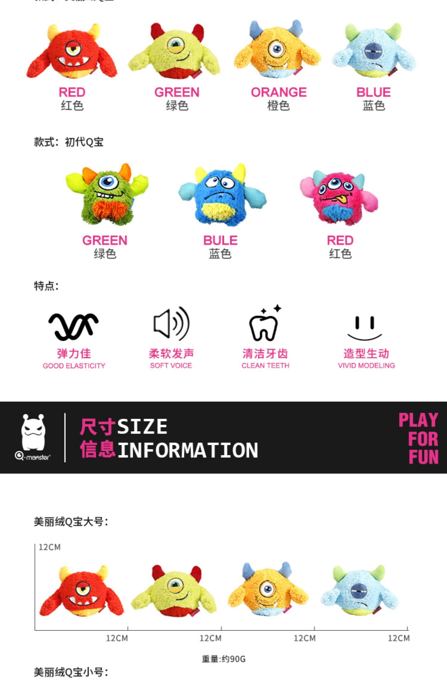 애완 동물 INN Qmonster 작은 괴물 애완 동물 장난감 개 음성 장난감 튀는 공 봉제 고무 공