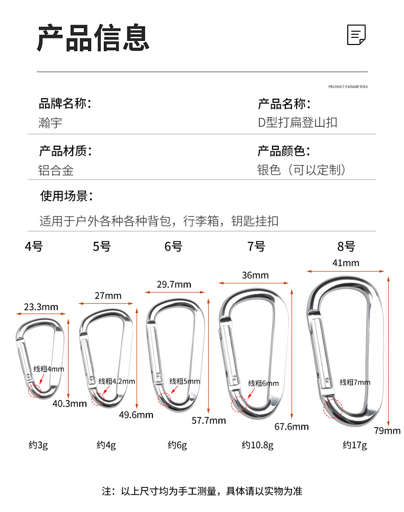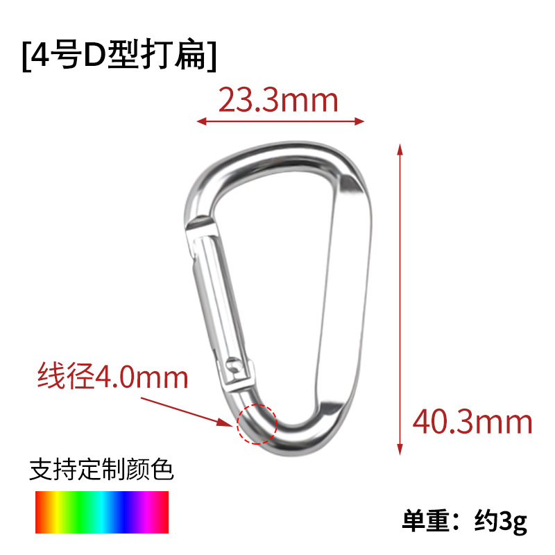 45678 D 자형 평평한 알루미늄 합금 등산 버클 실버 등산 버클 컵 퀵 매달린 D 자형 매달린 버클 야외 봄