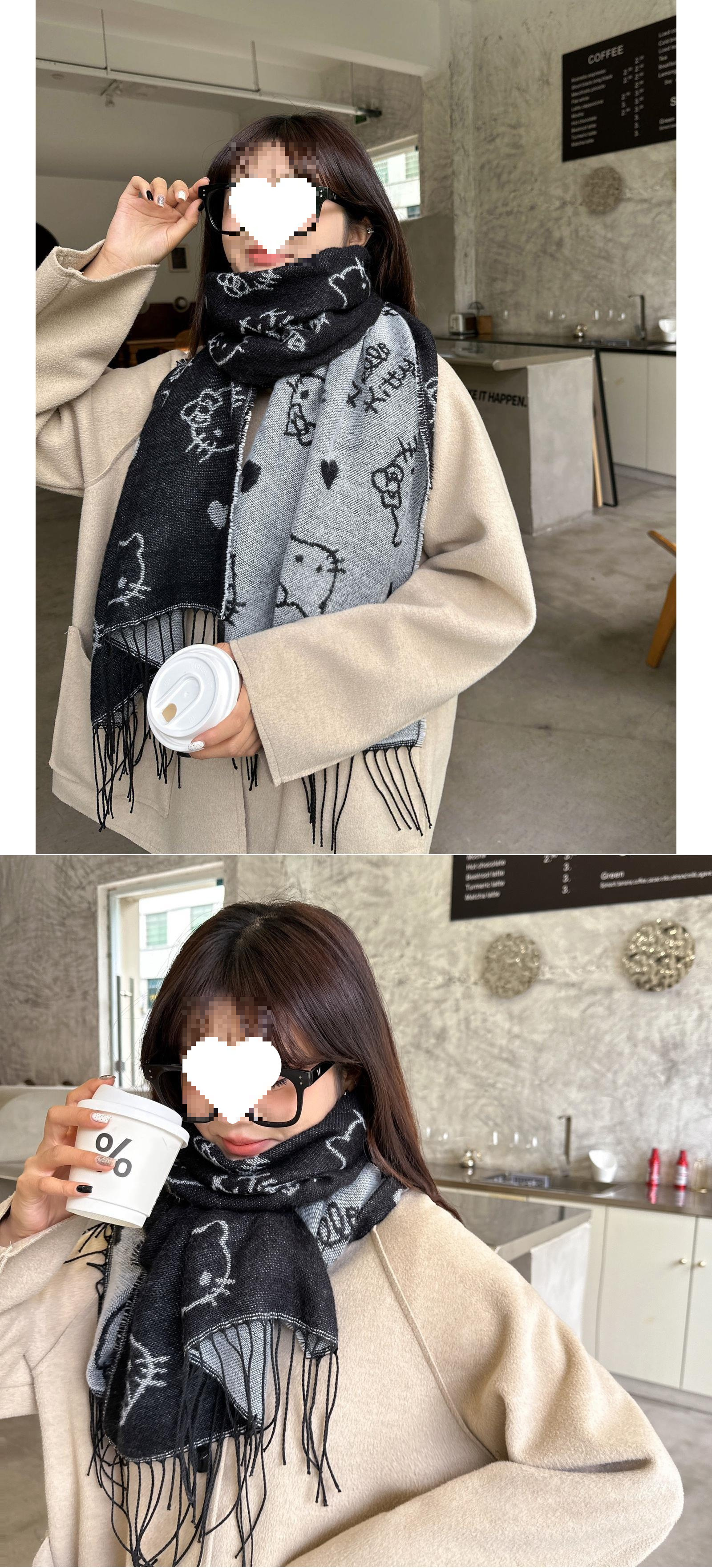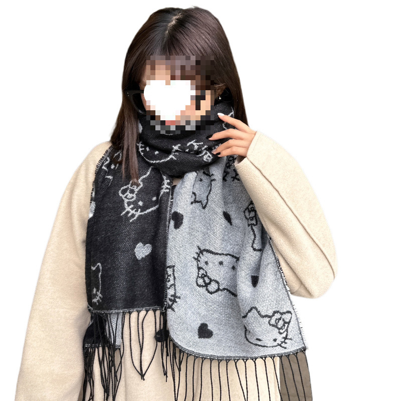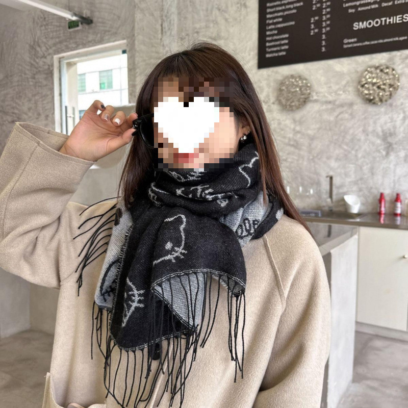 새로운 겨울 일본 스타일 귀여운 검은 색과 회색 양면 스카프 슈퍼 다용도 간단한 스카프 무료 배송스토어 가기