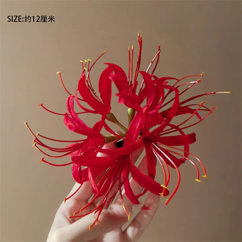 빨간 Bianhua 인공 꽃 헤어핀 사이드 클립 사이드 헤드 레트로 절묘한 연말 신부 헤어 액세서리