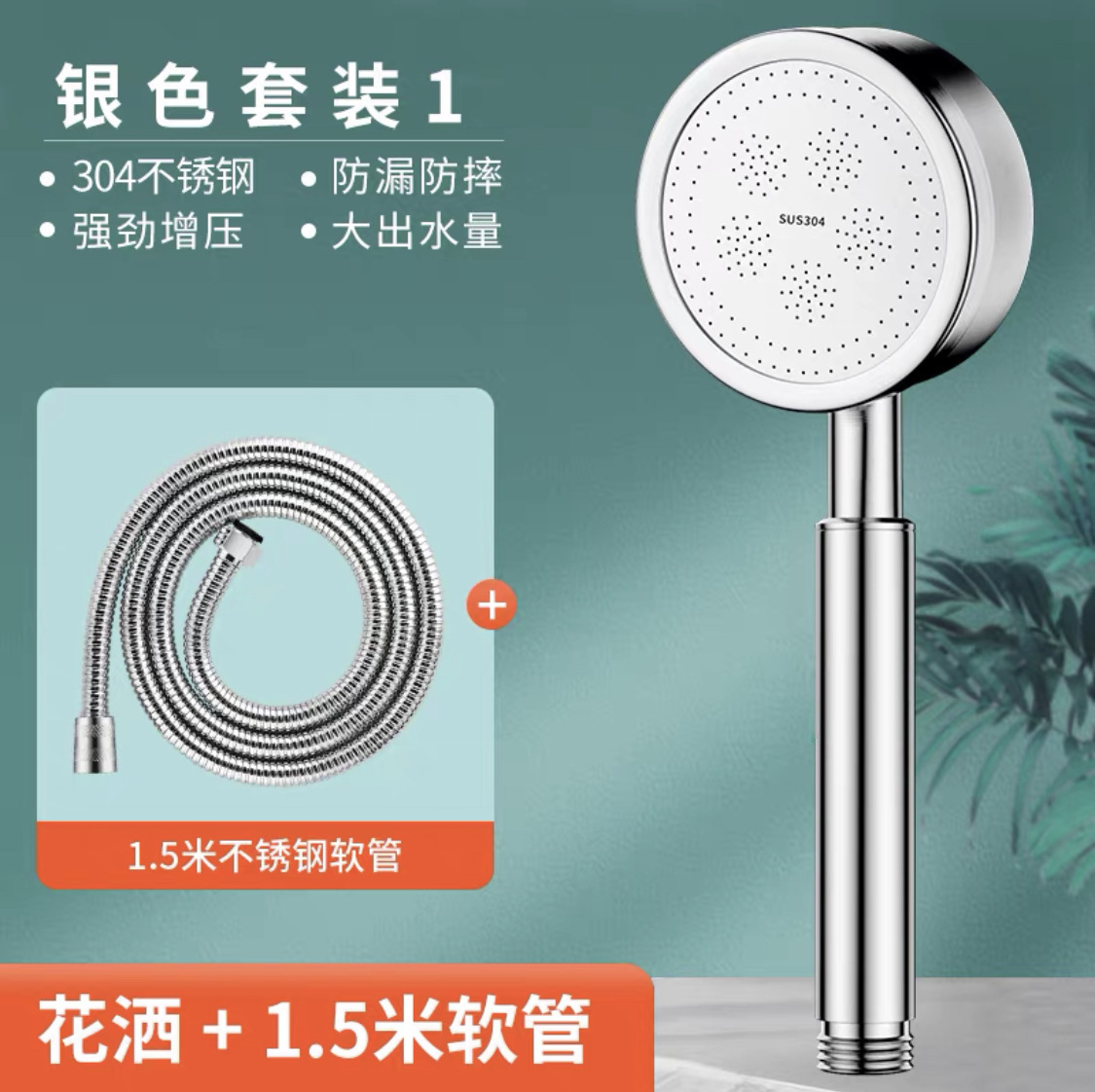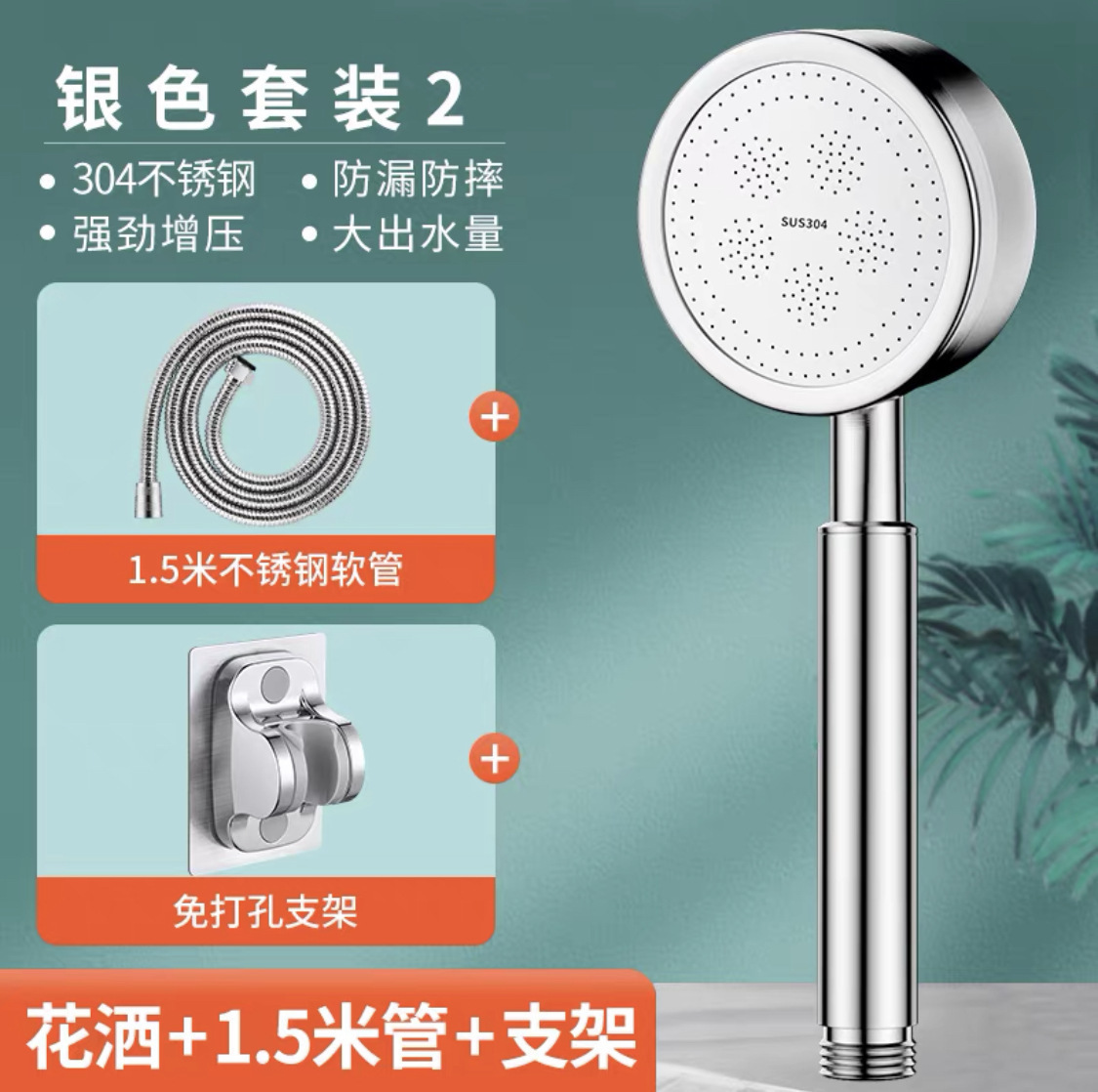 • 두꺼운 [실버 스테인레스 스틸] 샤워 + 브래킷 + 1.5m 호스