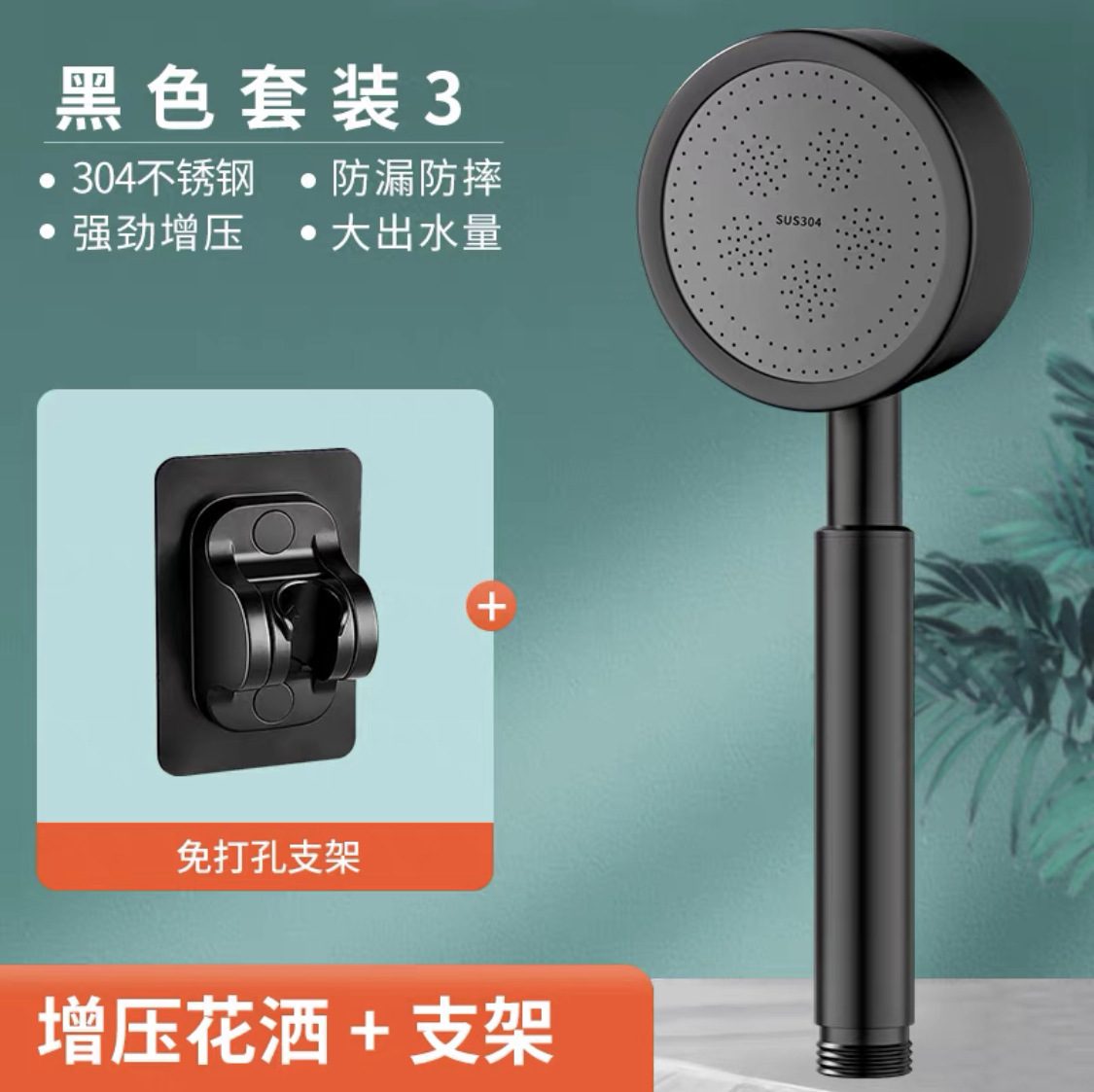 • 두꺼운 [블랙 스테인레스 스틸] 샤워 헤드 + 브래킷