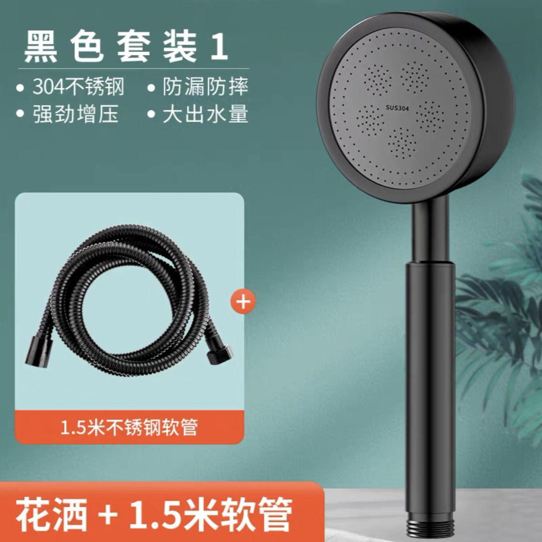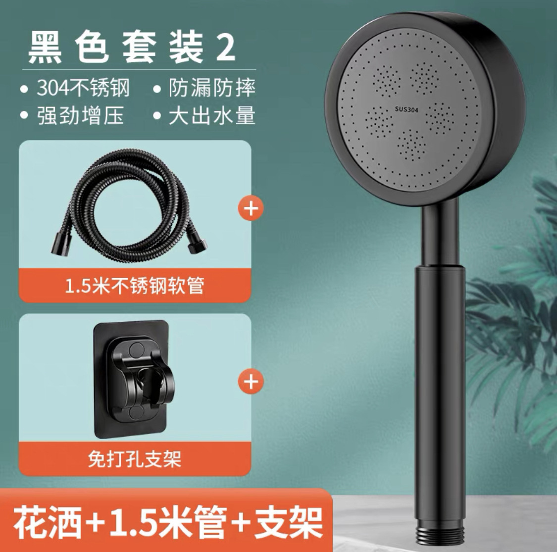 • 두꺼워진 [블랙 스테인레스 스틸] 샤워 + 브래킷 + 1.5m 호스
