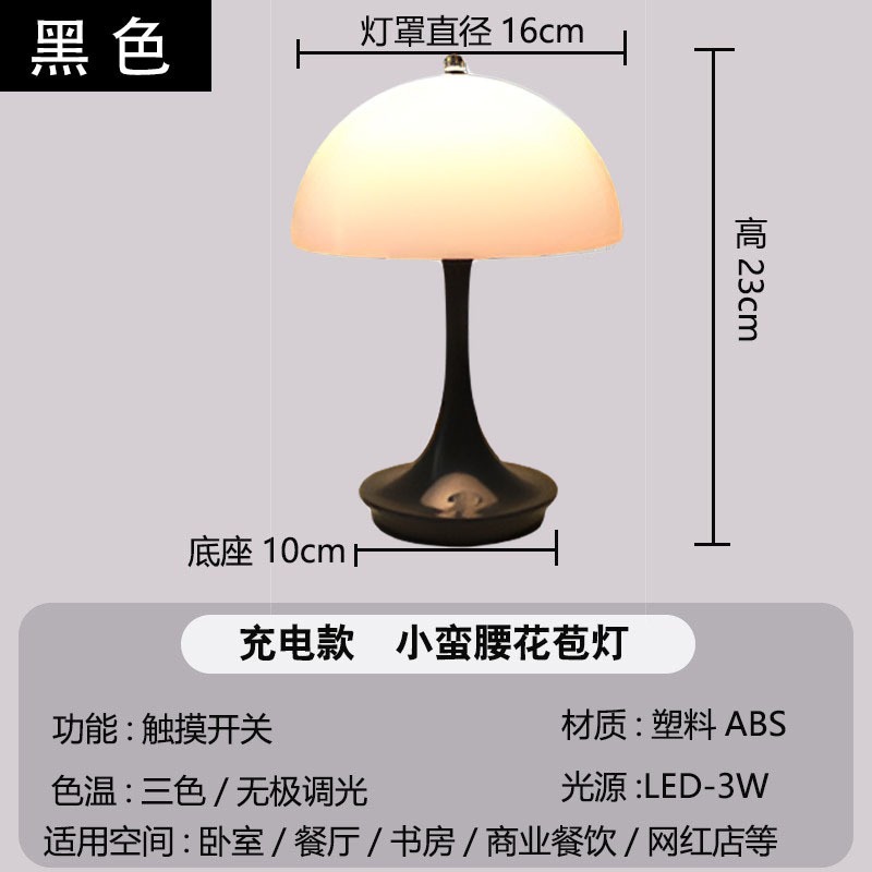 크로스보더 덴마크 창의적인 크림 스타일 테이블 램프 침실 침대 옆 분위기 조명 충전식 휴대용 버섯 장식 해파리 램프
