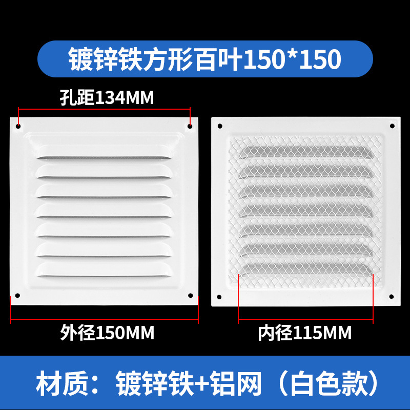 • 아연도금 철제 사각루버 150*150mm 흰색