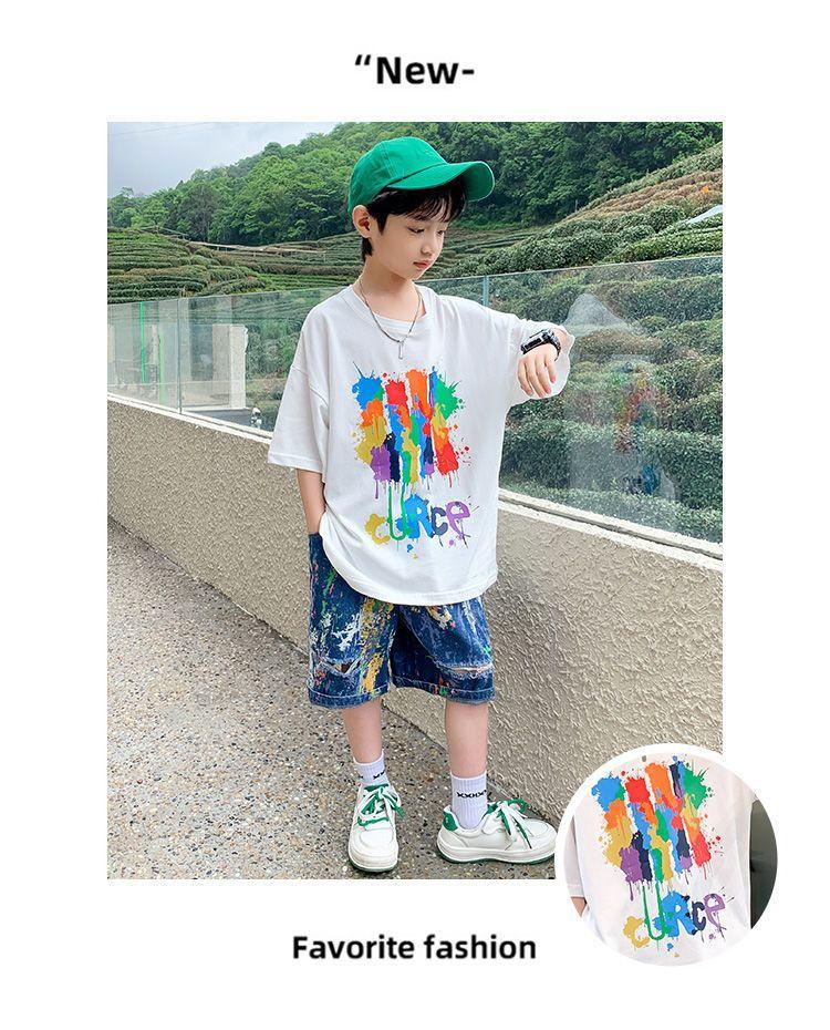 아동복 남성과 여성의 반팔 티셔츠 코튼 만화 쿨 핸섬 여름 새 어린이 아기 반소매 탑 중 큰 어린이스토어 가기