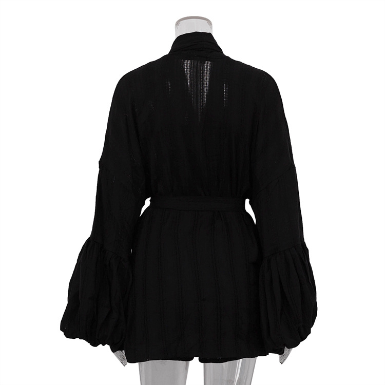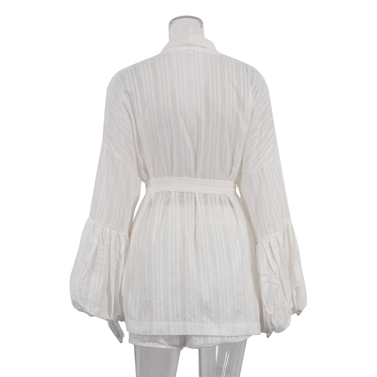 유럽 및 미국 여성 캐주얼 세트 여성 2025 새로운 코튼 스트랩 느슨한 긴팔 카디건 탑 반바지 투피스 세트