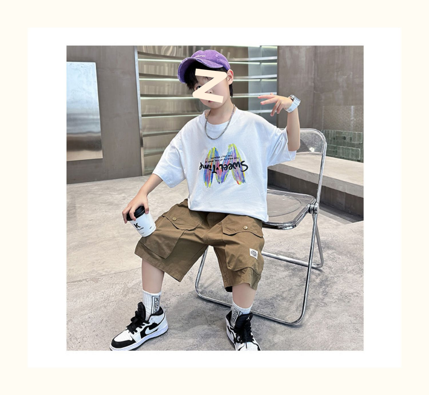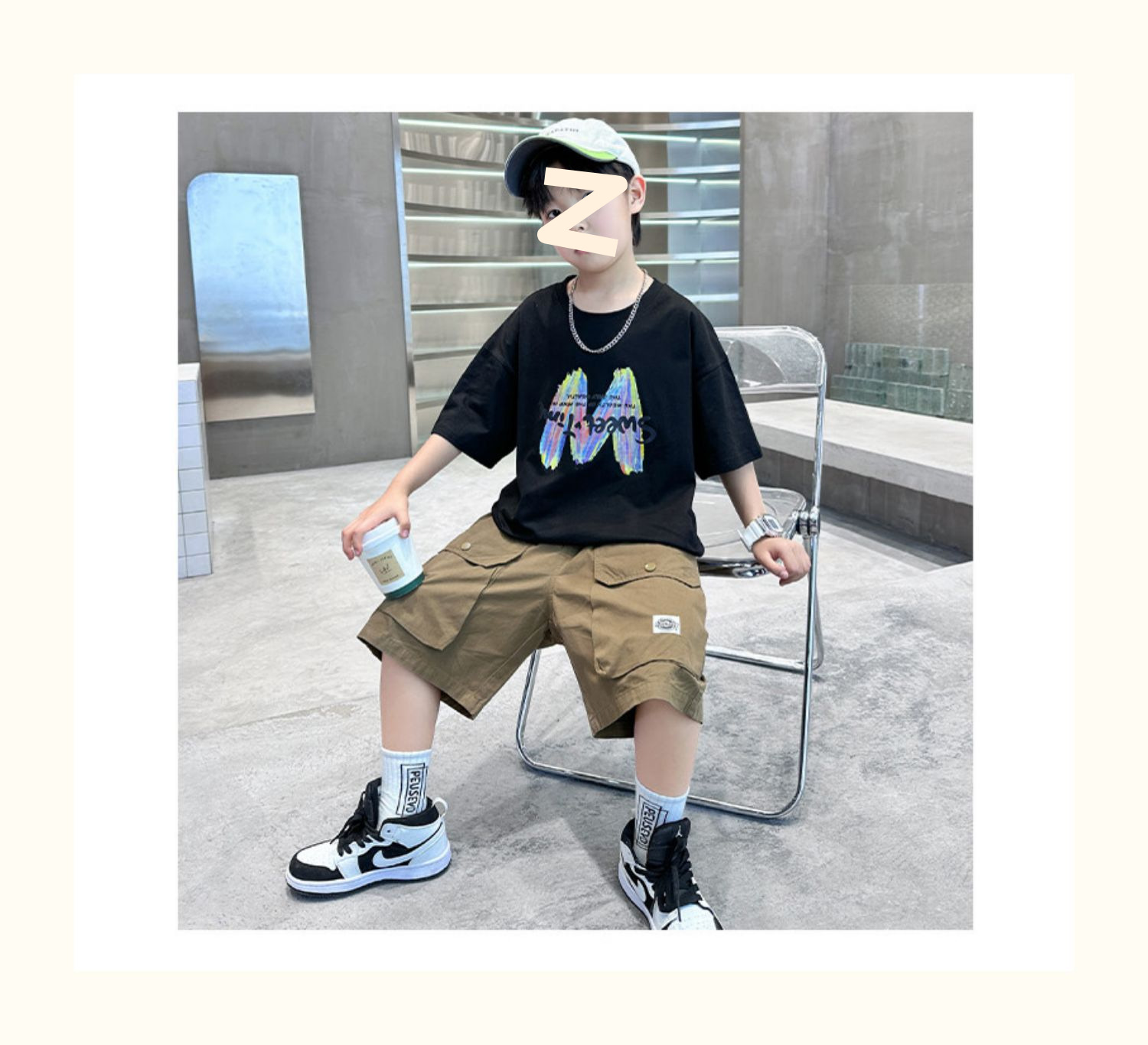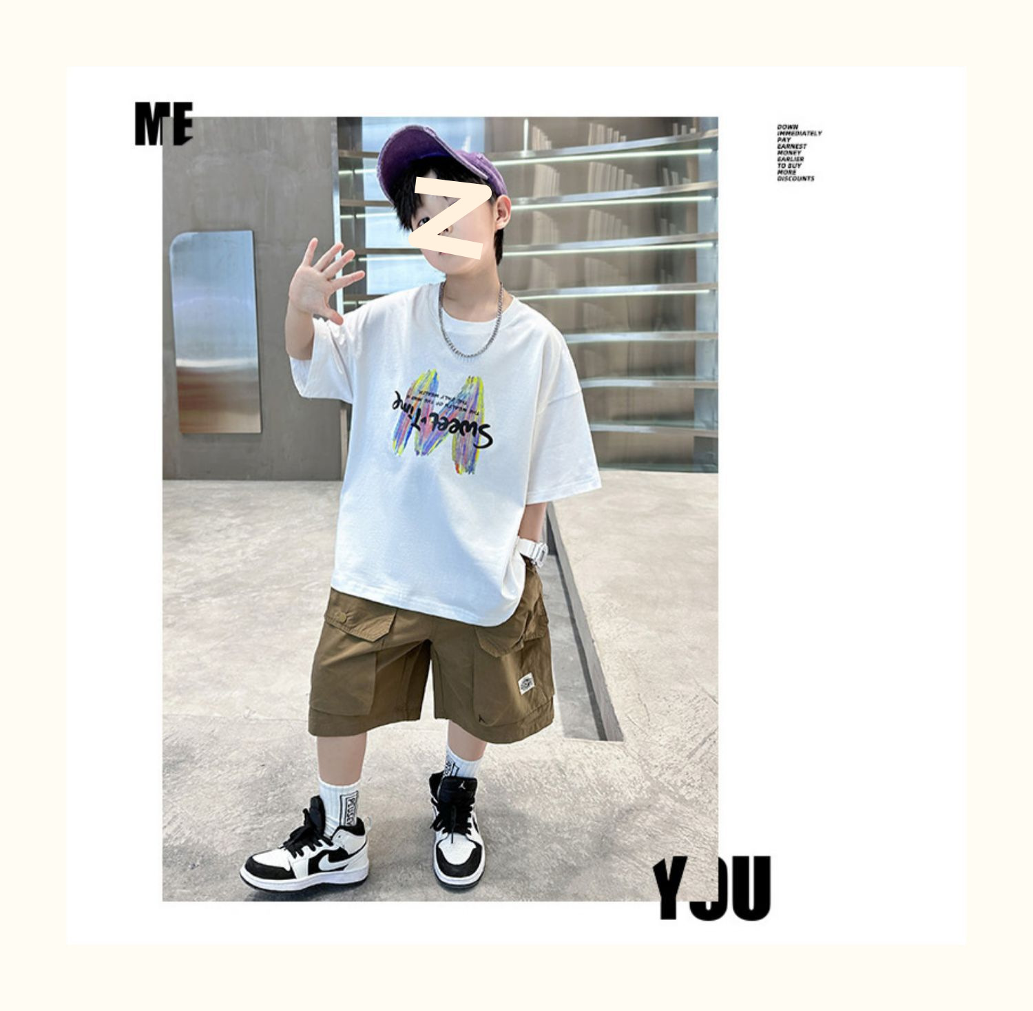 남학생의 여름 얇은 잘 생긴 스포츠 세트 2025 새 반팔 티셔츠 반바지 한국 투피스 세트스토어 가기