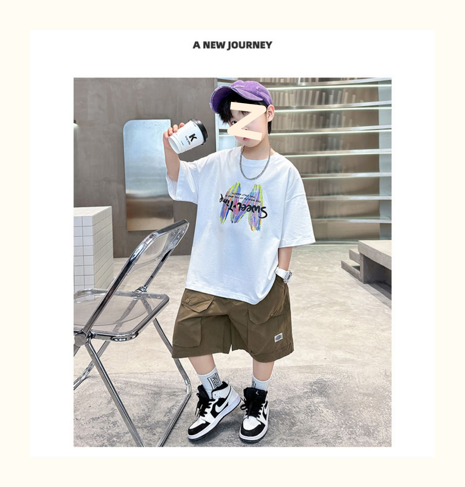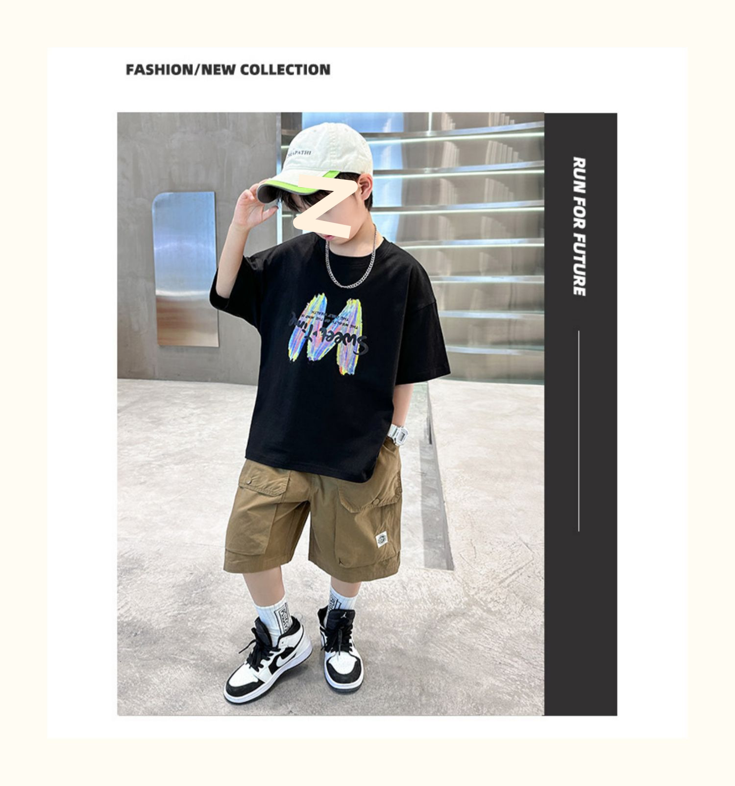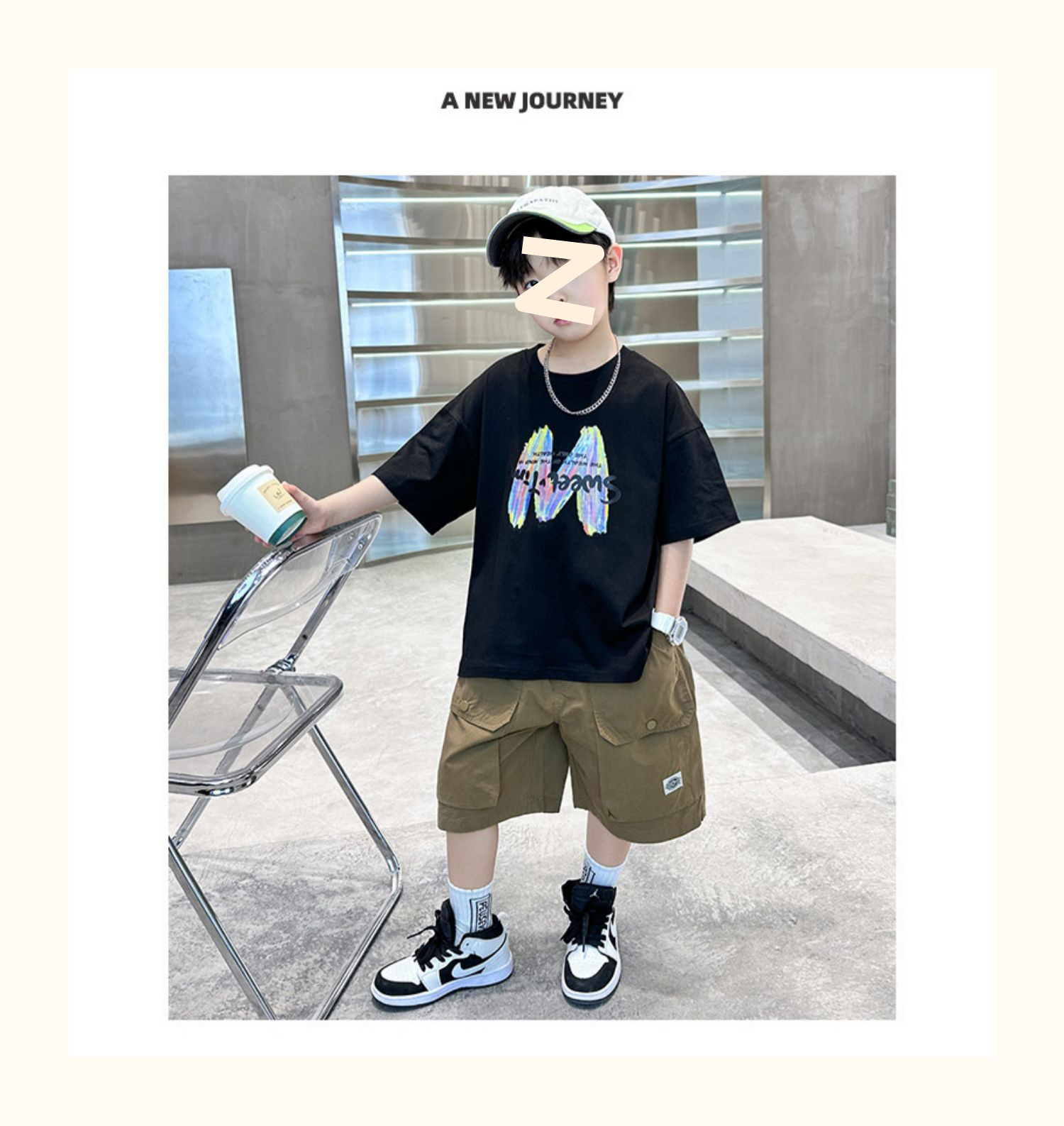 남학생의 여름 얇은 잘 생긴 스포츠 세트 2025 새 반팔 티셔츠 반바지 한국 투피스 세트스토어 가기