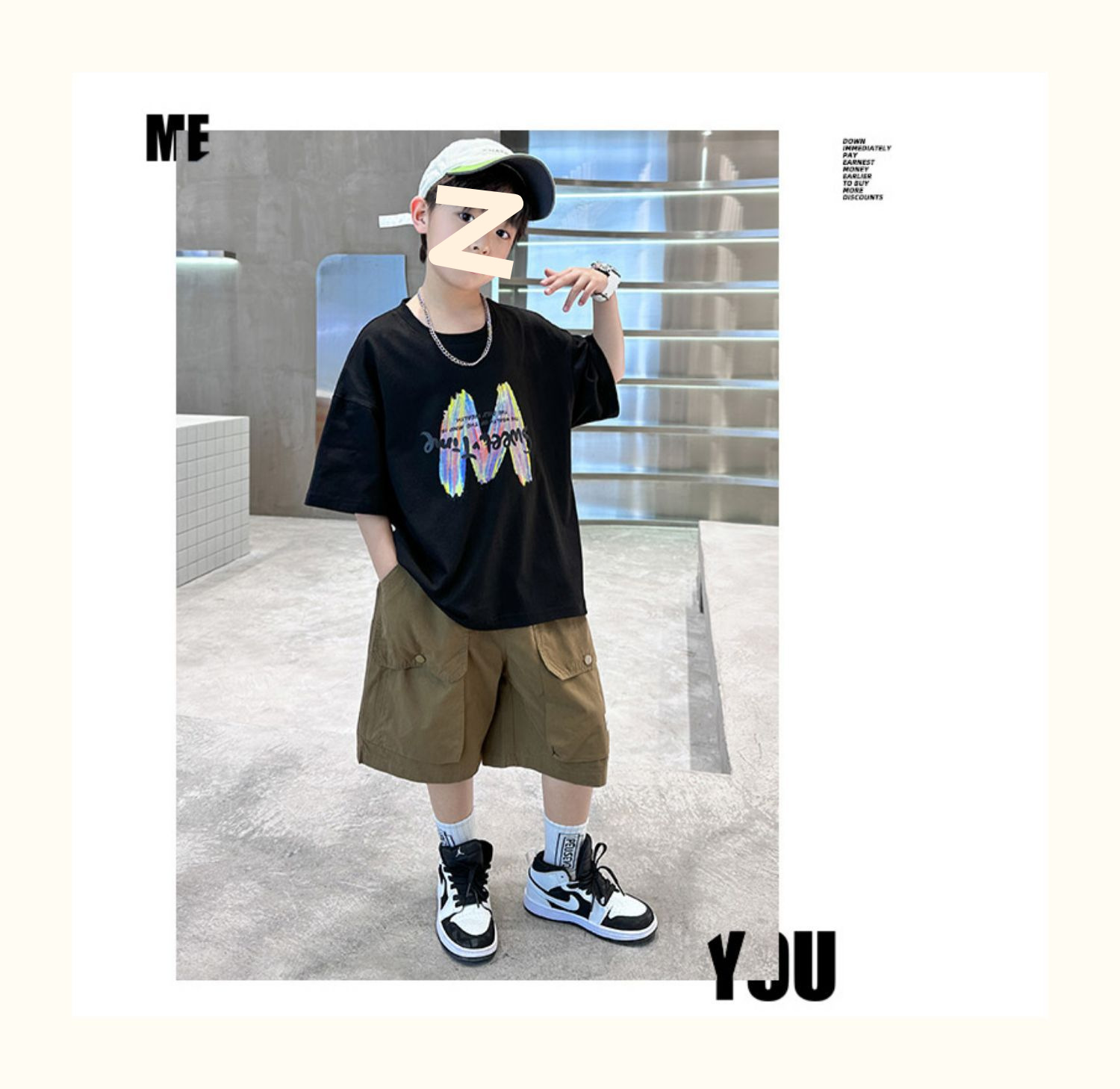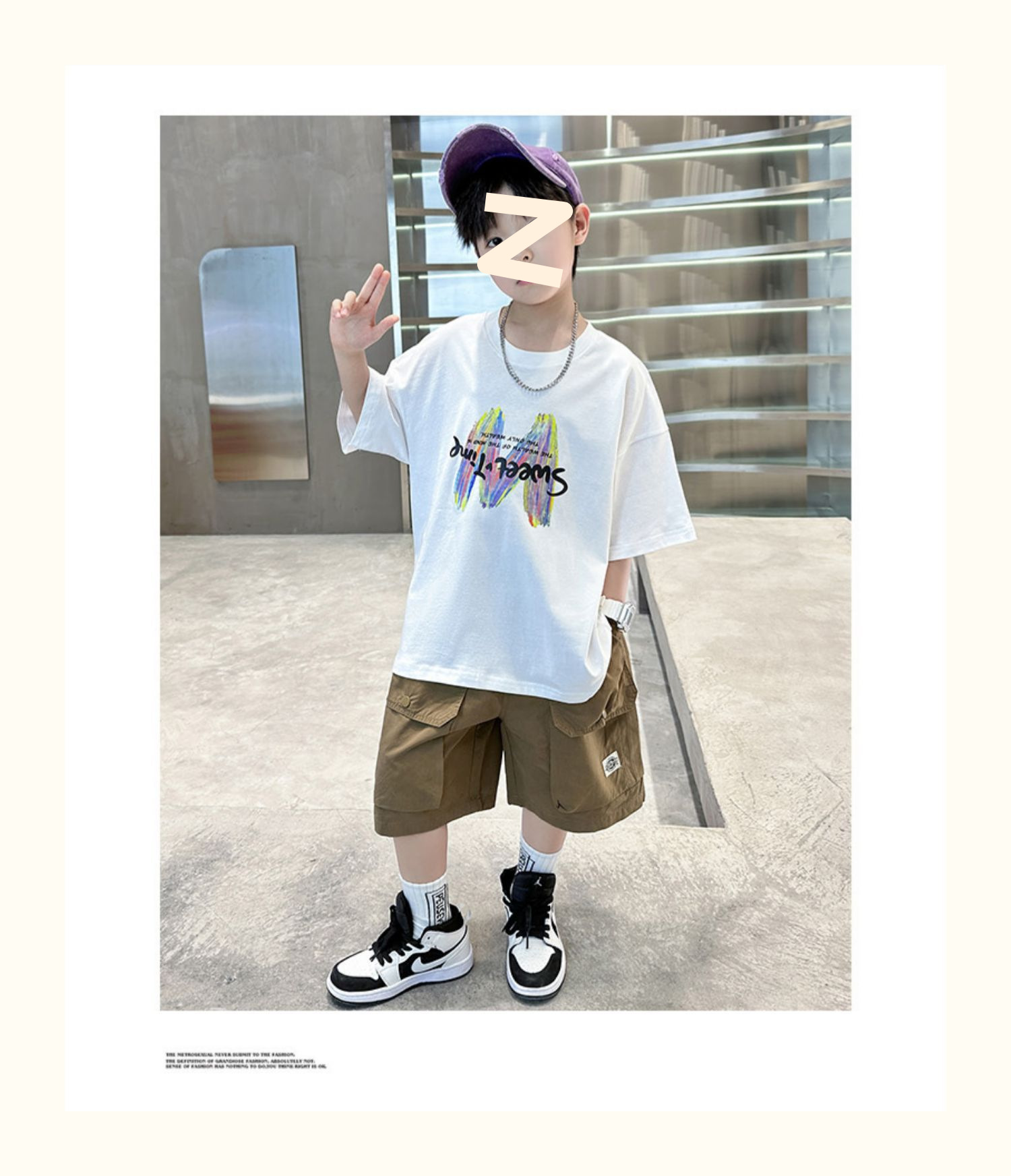 남학생의 여름 얇은 잘 생긴 스포츠 세트 2025 새 반팔 티셔츠 반바지 한국 투피스 세트