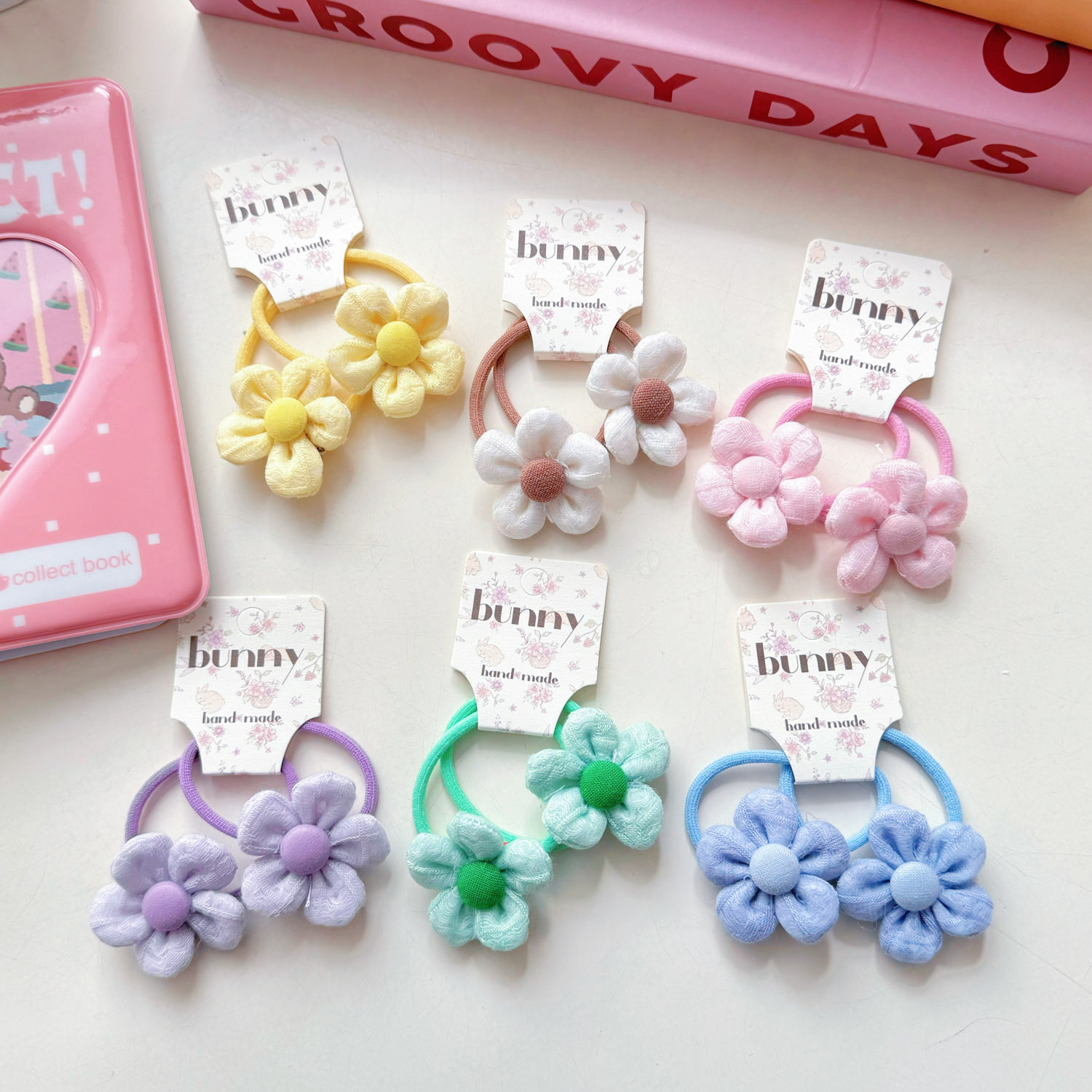 봄 새로운 패브릭 꽃 어린이 헤어핀 귀여운 여자 헤어 링 작은 꽃 고무 텐던 헤어 로프 달콤한 아기 헤어 액세서리스토어 가기