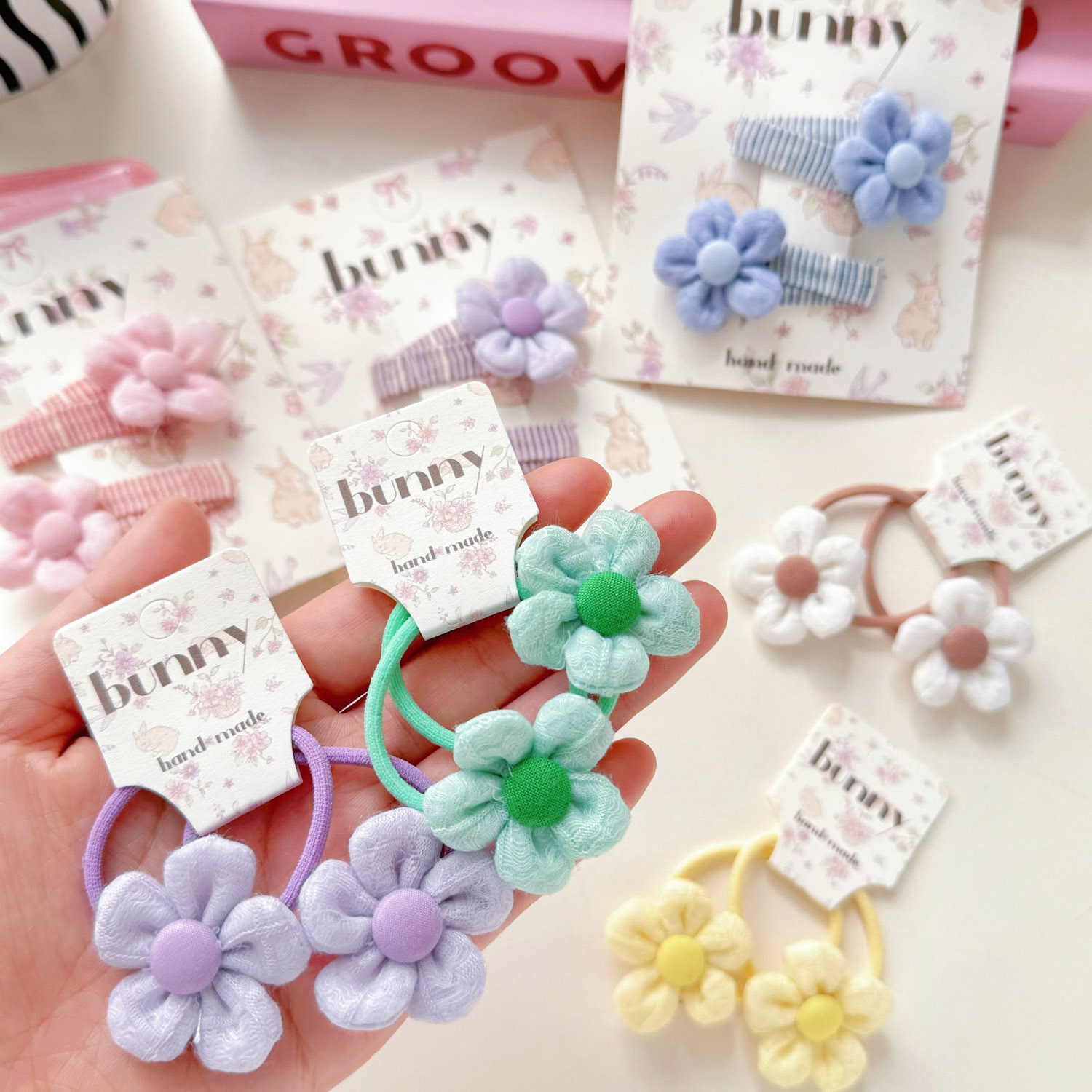 봄 새로운 패브릭 꽃 어린이 헤어핀 귀여운 여자 헤어 링 작은 꽃 고무 텐던 헤어 로프 달콤한 아기 헤어 액세서리