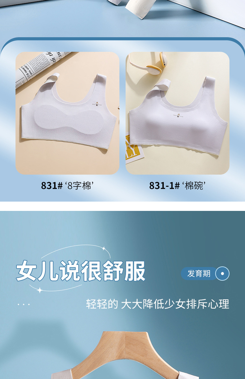 831 면화 소녀 브라 발달 속옷 여중학생 고등학생 고정 컵 조끼 속옷스토어 가기