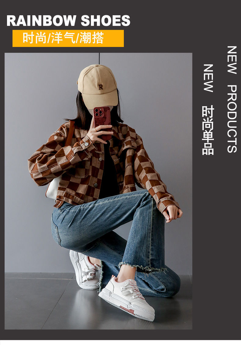 홍콩 스타일의 두꺼운 밑창 작은 흰색 신발 여성의 봄과 가을 하이 엔드 느낌 2023 새로운 틈새 올 매치 캐주얼 스포츠 신발스토어 가기
