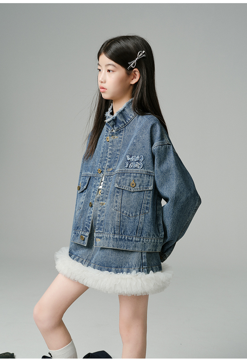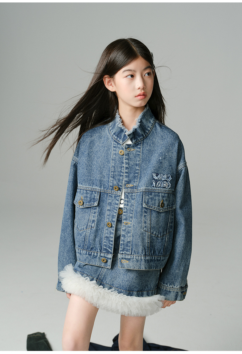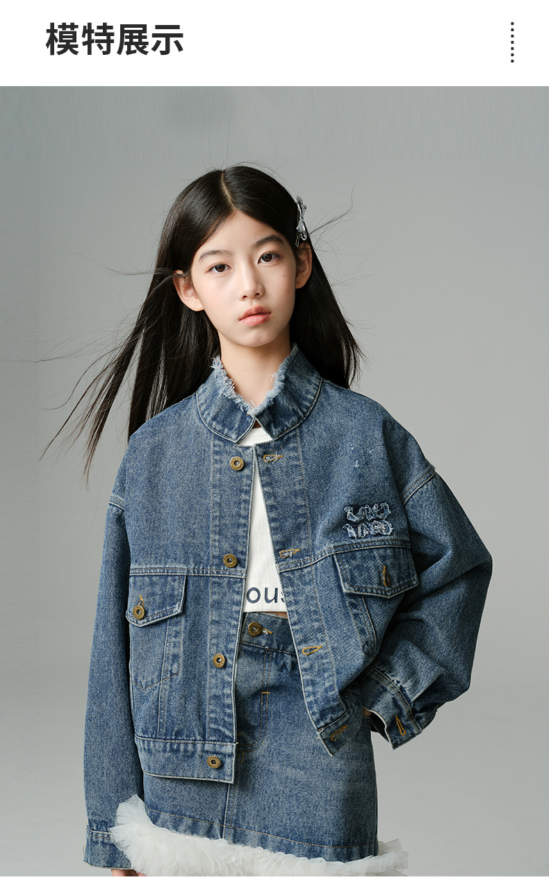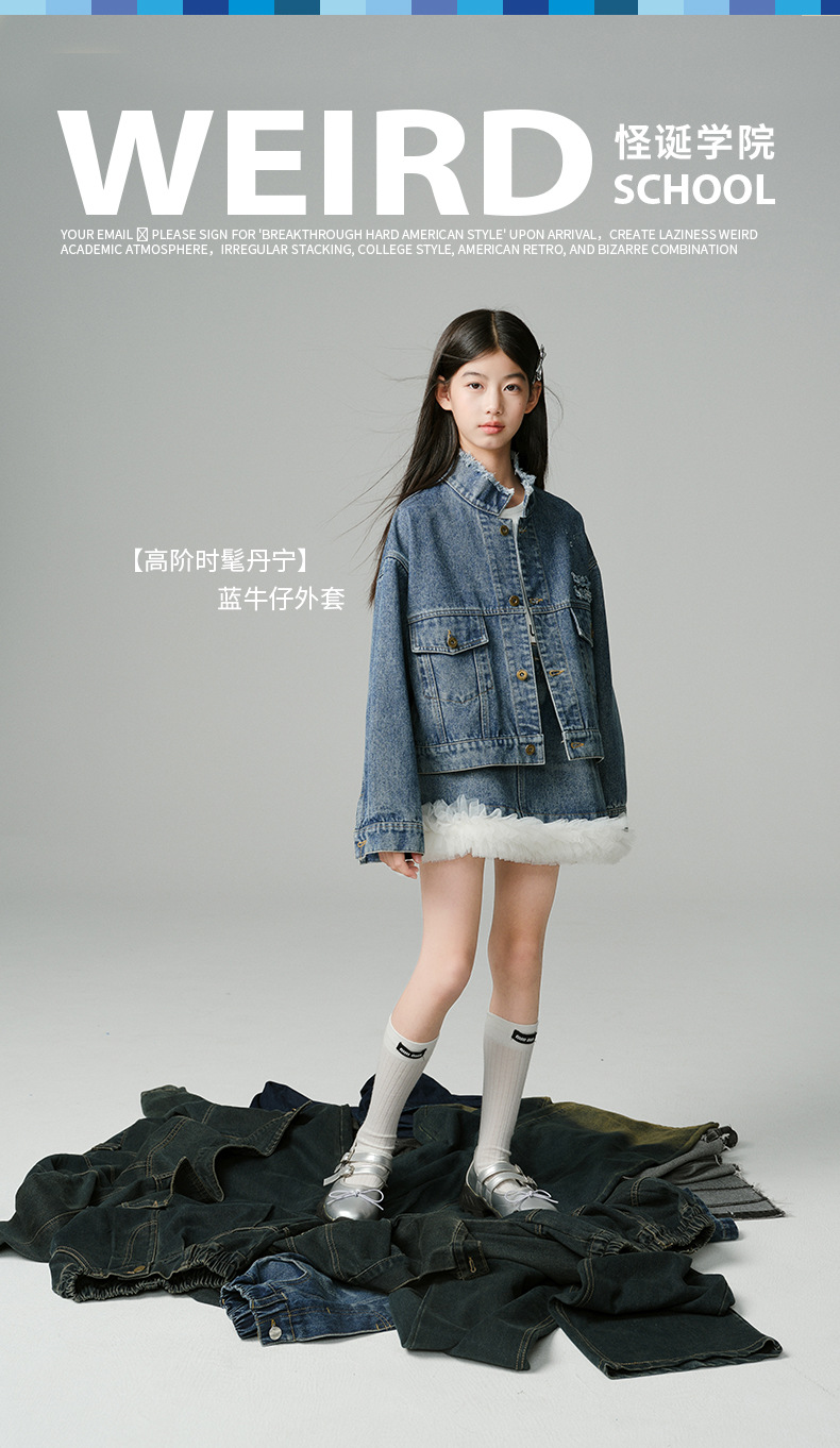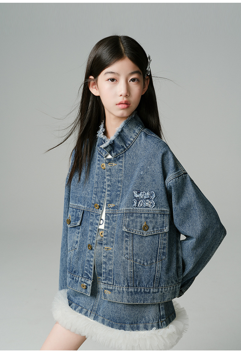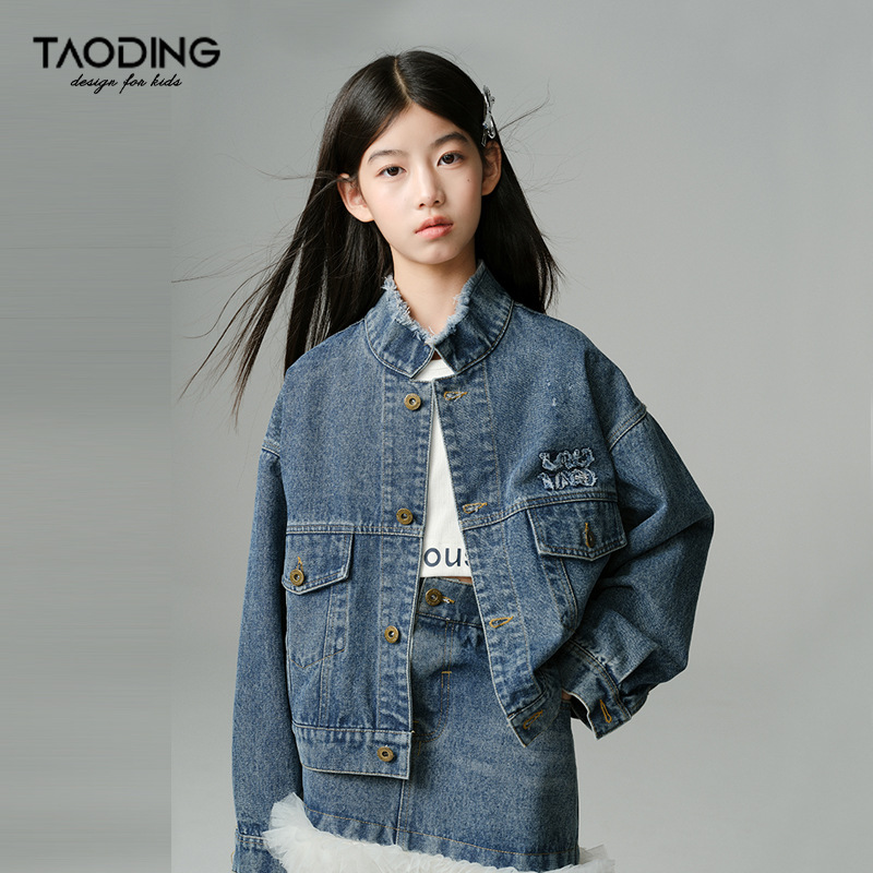 Amoy 하이 엔드 패셔너블 타닌 걸스 빅 보이 데님 코트 봄과 가을 새로운 도착 빅 걸 루즈 콘트라스트 컬러 재킷 트렌디스토어 가기