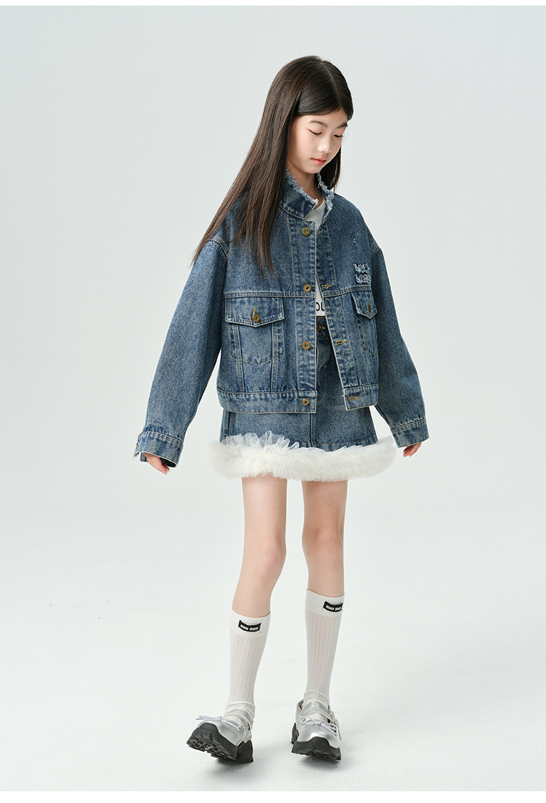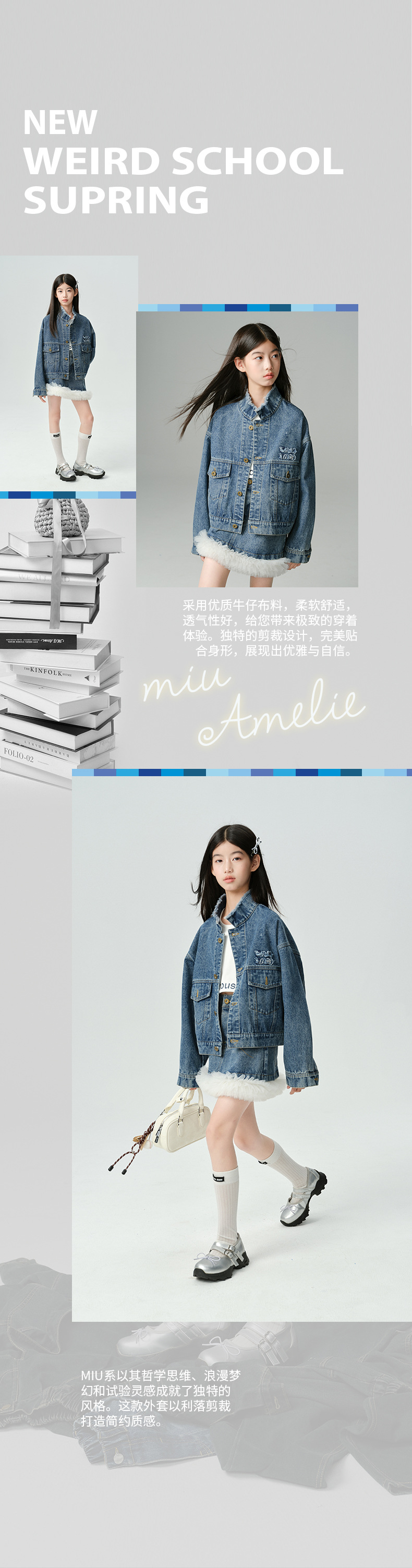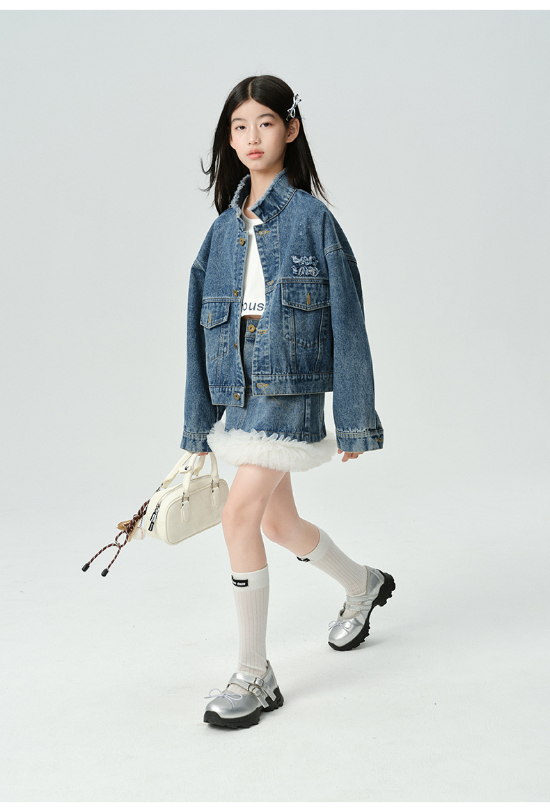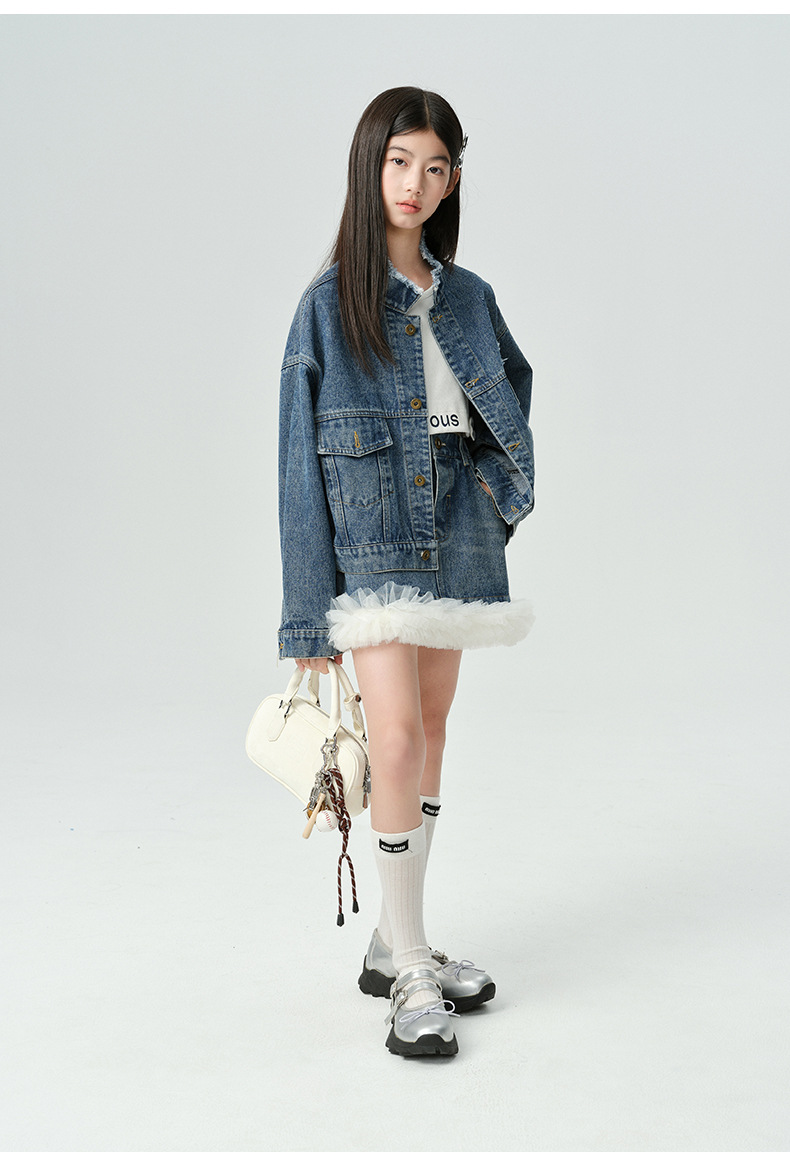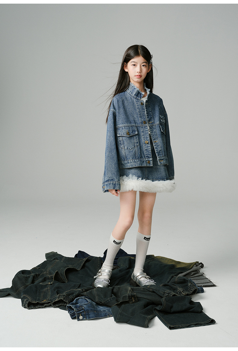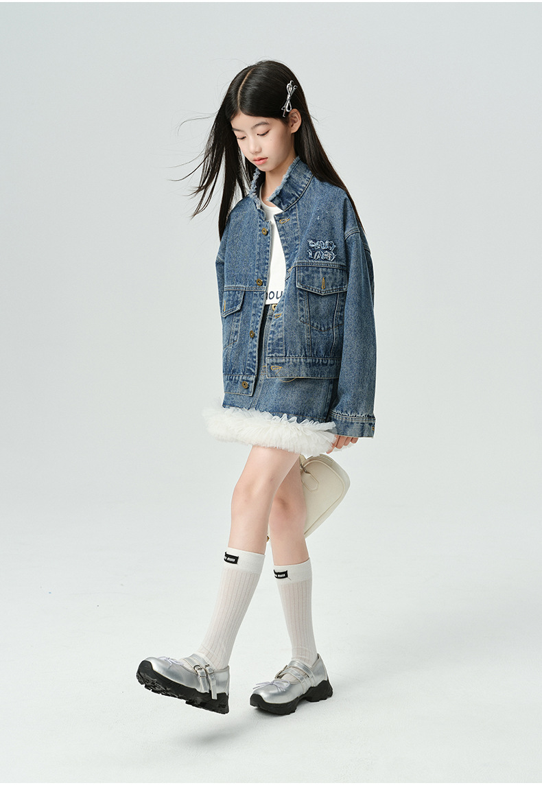 Amoy 하이 엔드 패셔너블 타닌 걸스 빅 보이 데님 코트 봄과 가을 새로운 도착 빅 걸 루즈 콘트라스트 컬러 재킷 트렌디스토어 가기