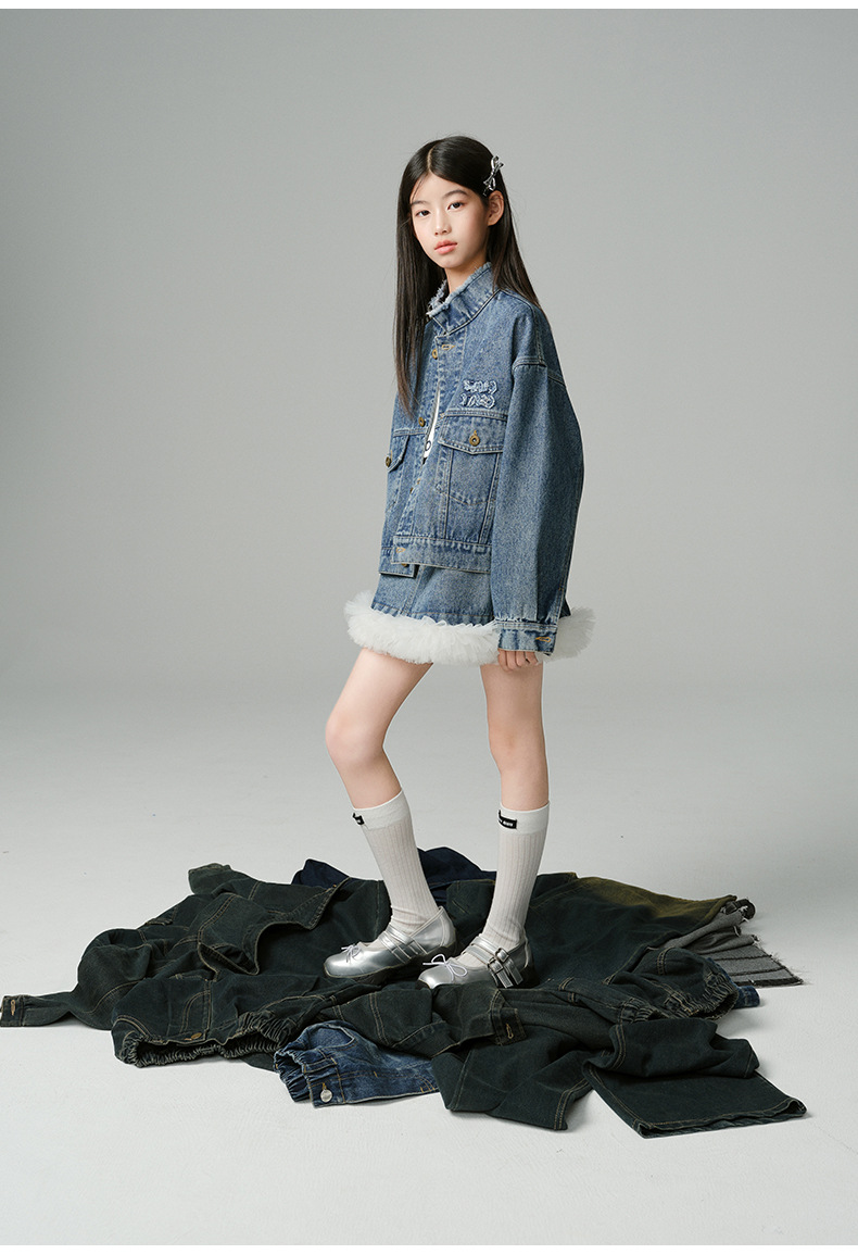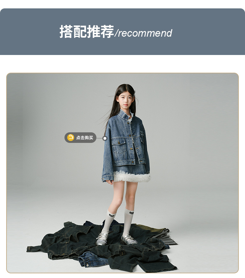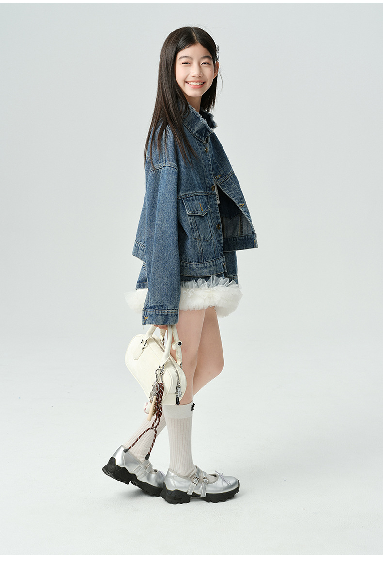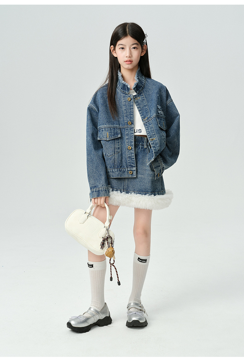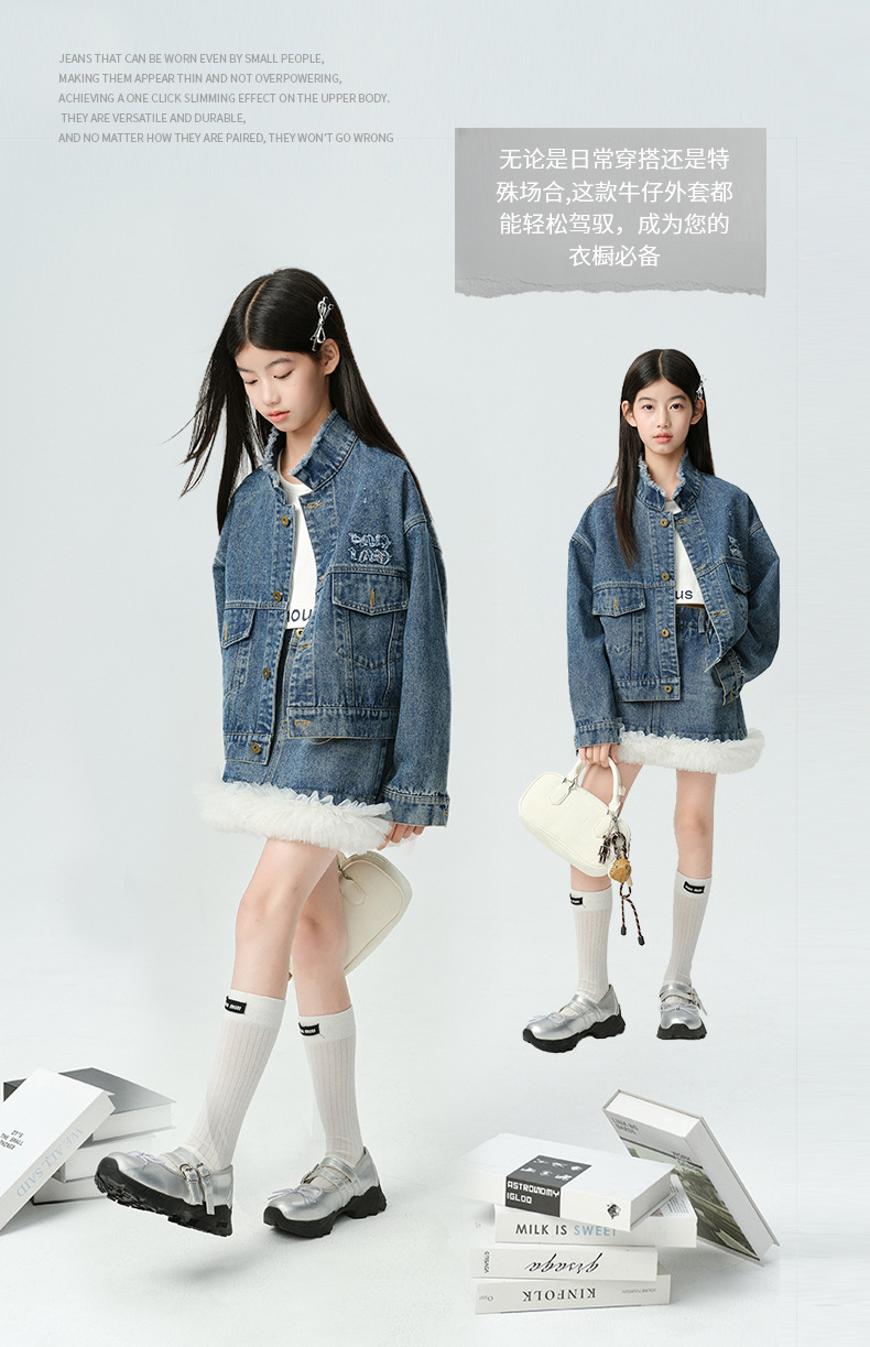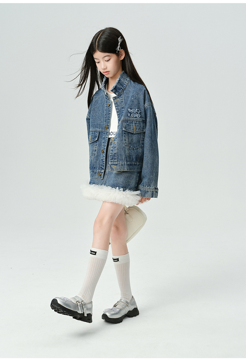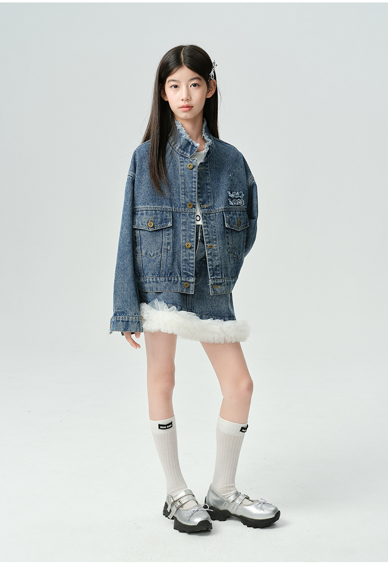 Amoy 하이 엔드 패셔너블 타닌 걸스 빅 보이 데님 코트 봄과 가을 새로운 도착 빅 걸 루즈 콘트라스트 컬러 재킷 트렌디스토어 가기