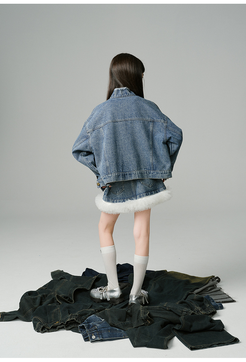 Amoy 하이 엔드 패셔너블 타닌 걸스 빅 보이 데님 코트 봄과 가을 새로운 도착 빅 걸 루즈 콘트라스트 컬러 재킷 트렌디