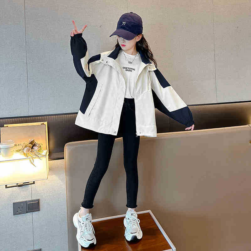 소녀 코트 봄 2025 새로운 스타일 큰 소년의 러스크 옷 어린이 최고 봄과 가을 소녀의 재킷 윈드브레이커스토어 가기