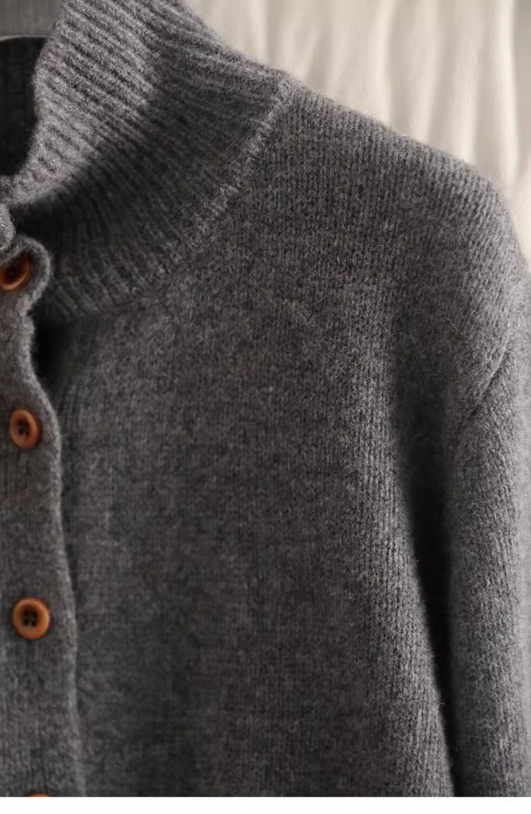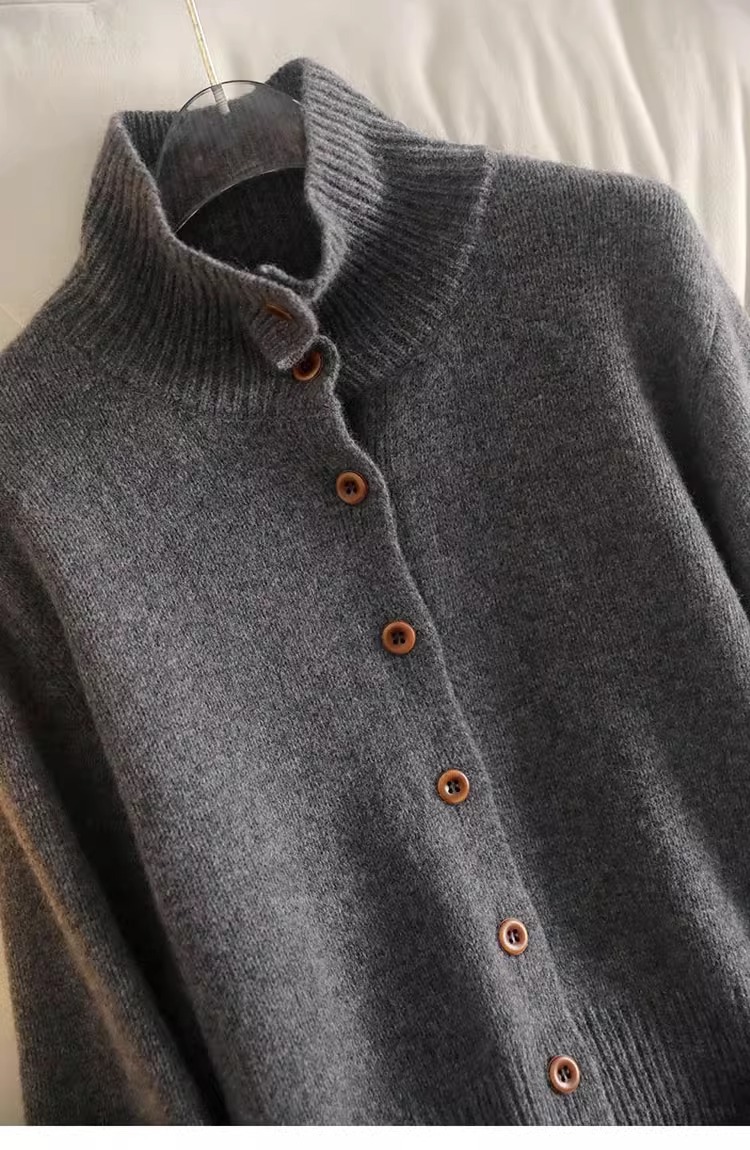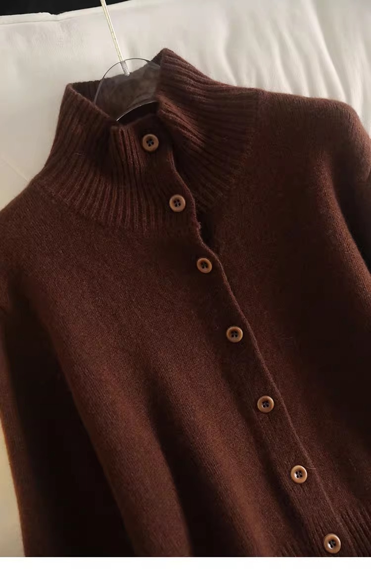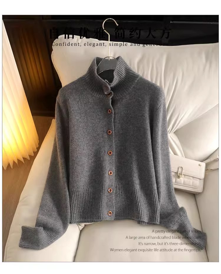 소프트 왁스 따뜻한 레트로 고급 싱글 브레스트 카디건 쇼트 코트 2024 가을 및 겨울 터틀넥 스웨터 여성 탑