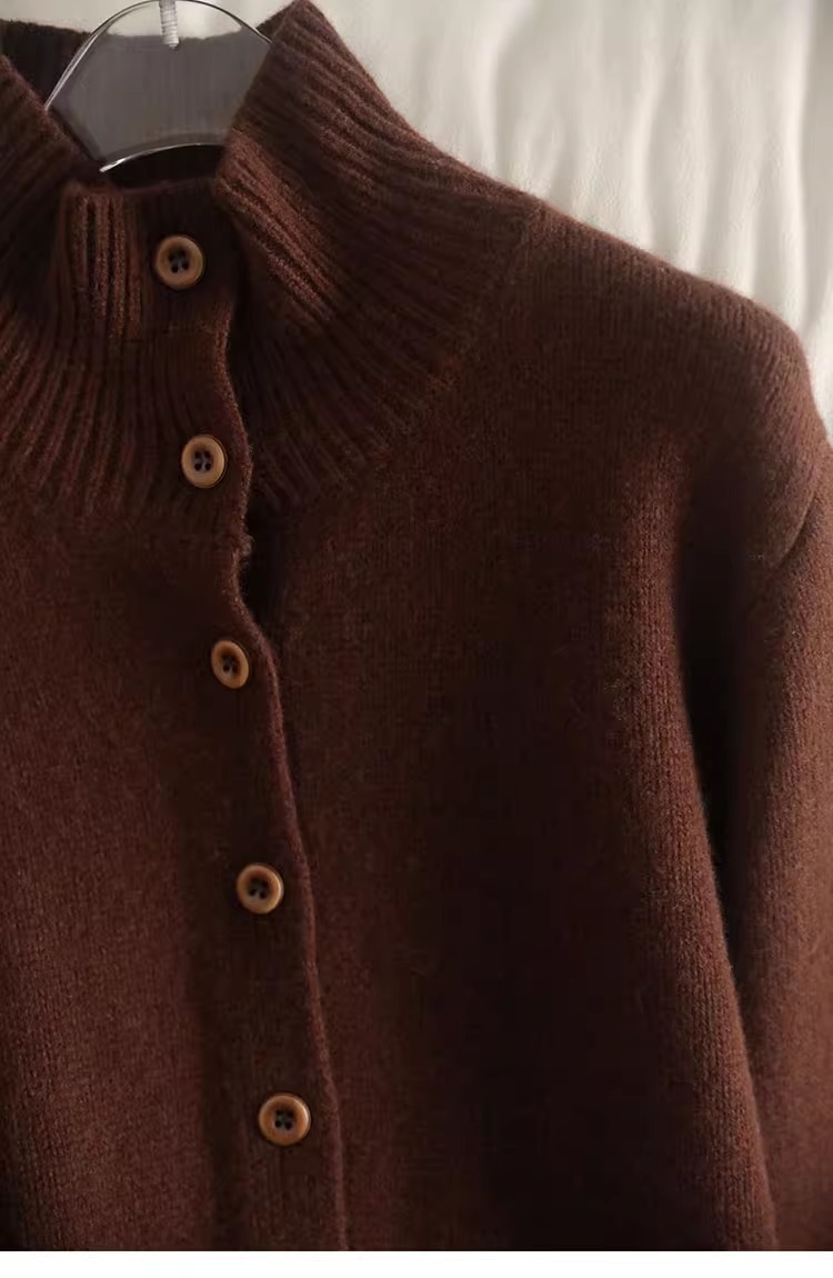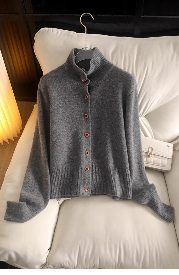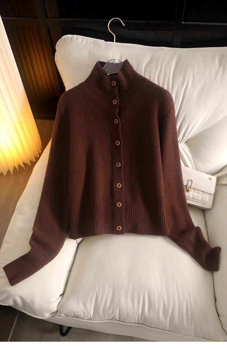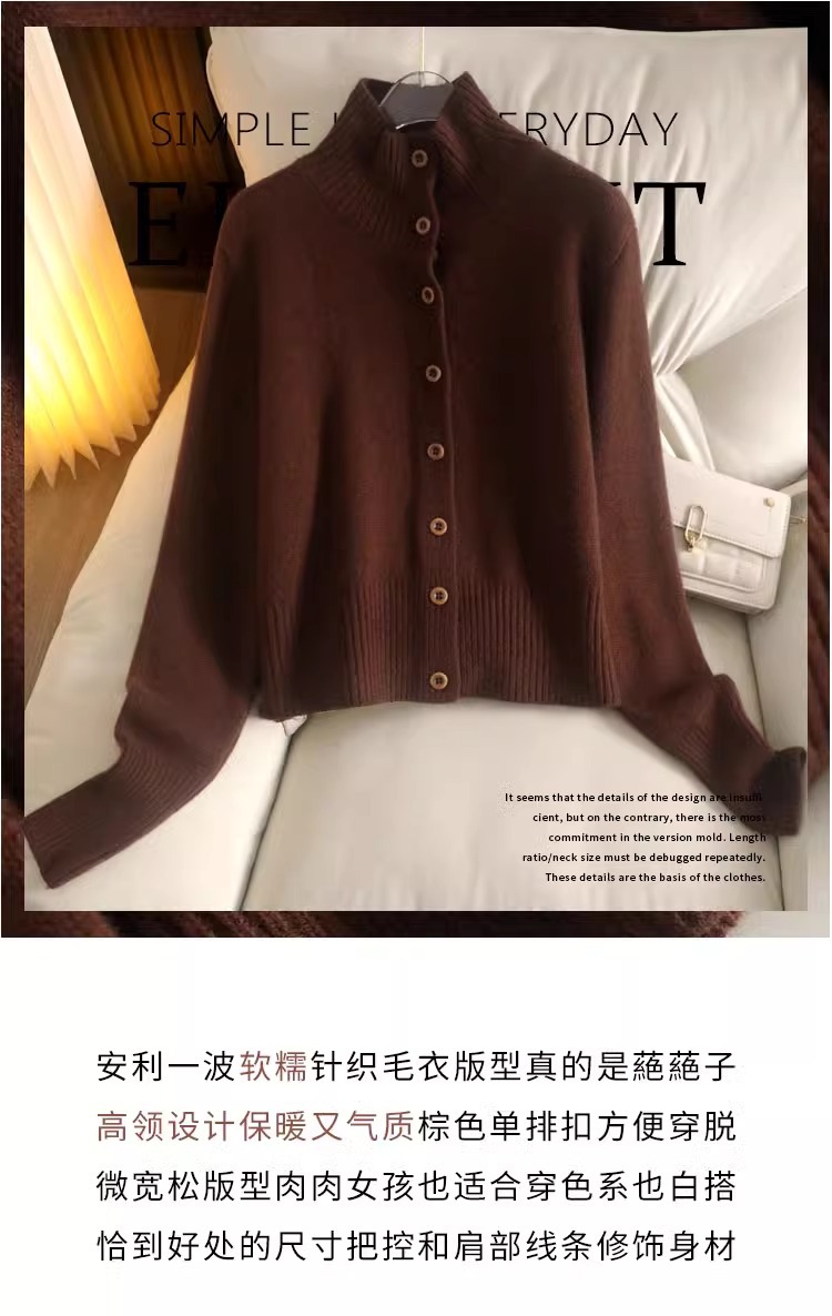 소프트 왁스 따뜻한 레트로 고급 싱글 브레스트 카디건 쇼트 코트 2024 가을 및 겨울 터틀넥 스웨터 여성 탑스토어 가기