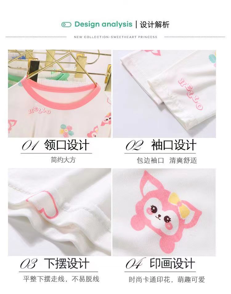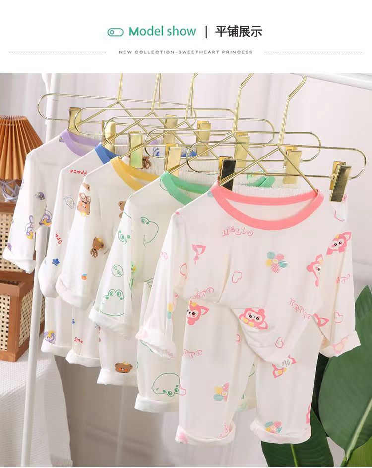 어린 이용 홈 의류 세트 얇은 소년 소녀 Youkosi 9 소매 에어컨 세트 대형 어린이 잠옷 새로운 스타일스토어 가기