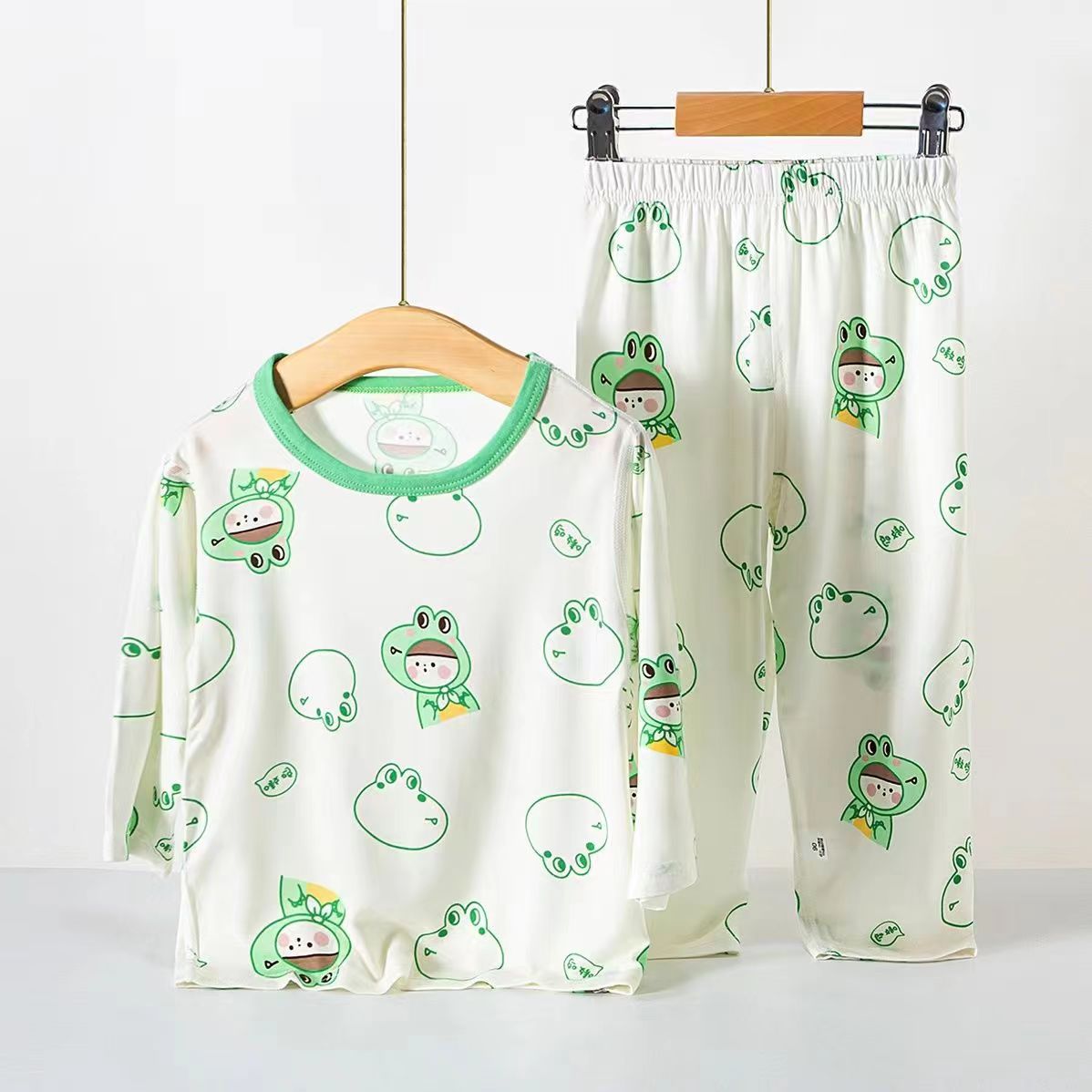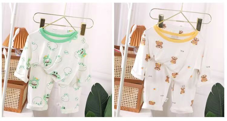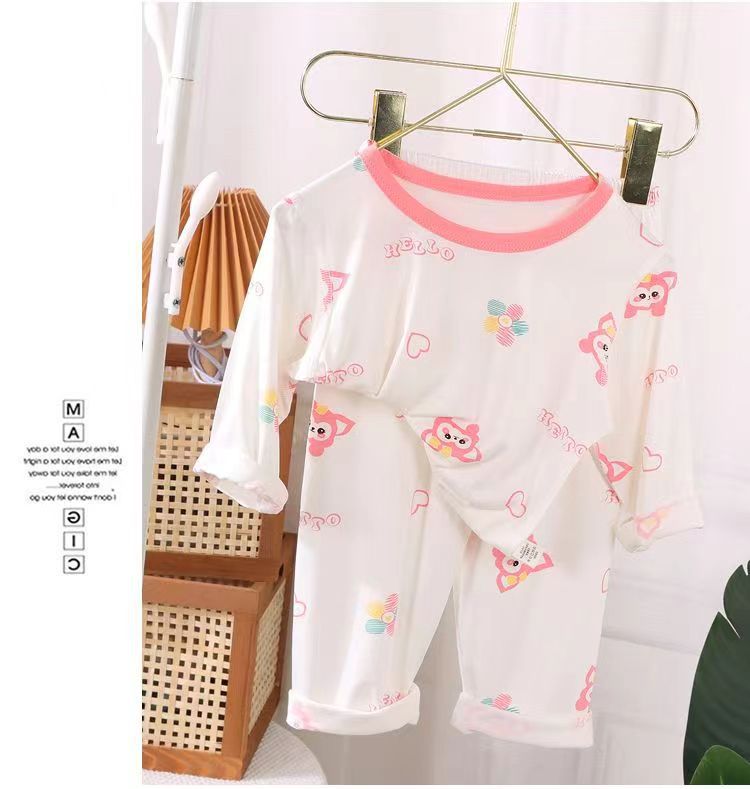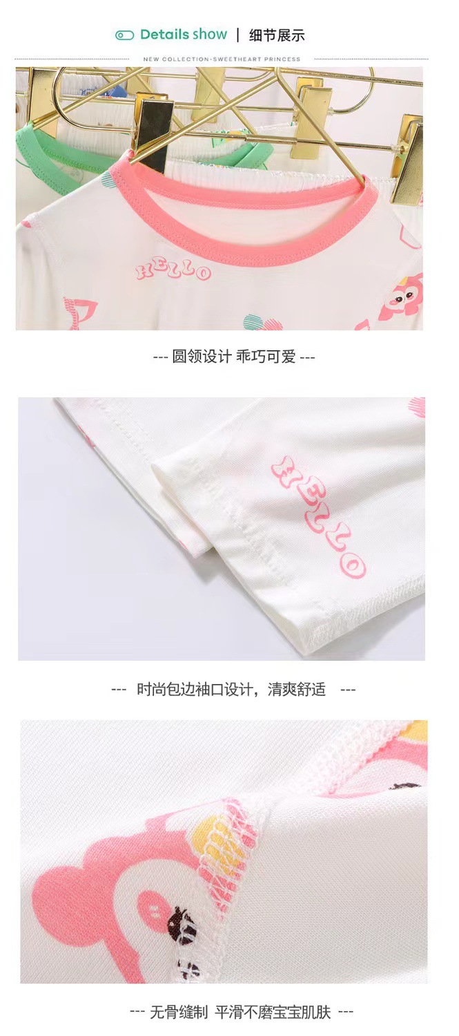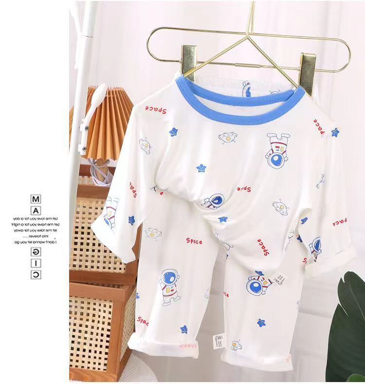 어린 이용 홈 의류 세트 얇은 소년 소녀 Youkosi 9 소매 에어컨 세트 대형 어린이 잠옷 새로운 스타일