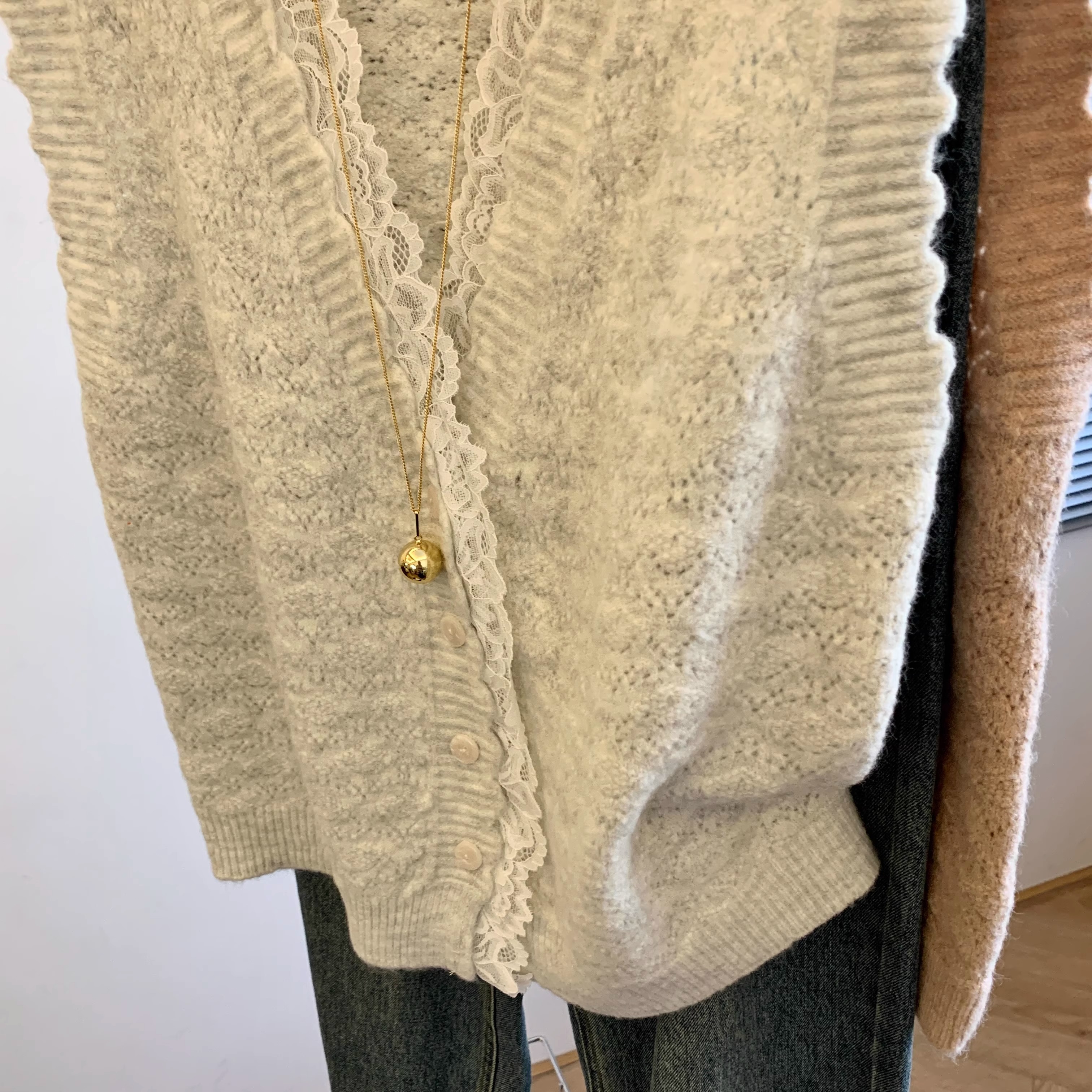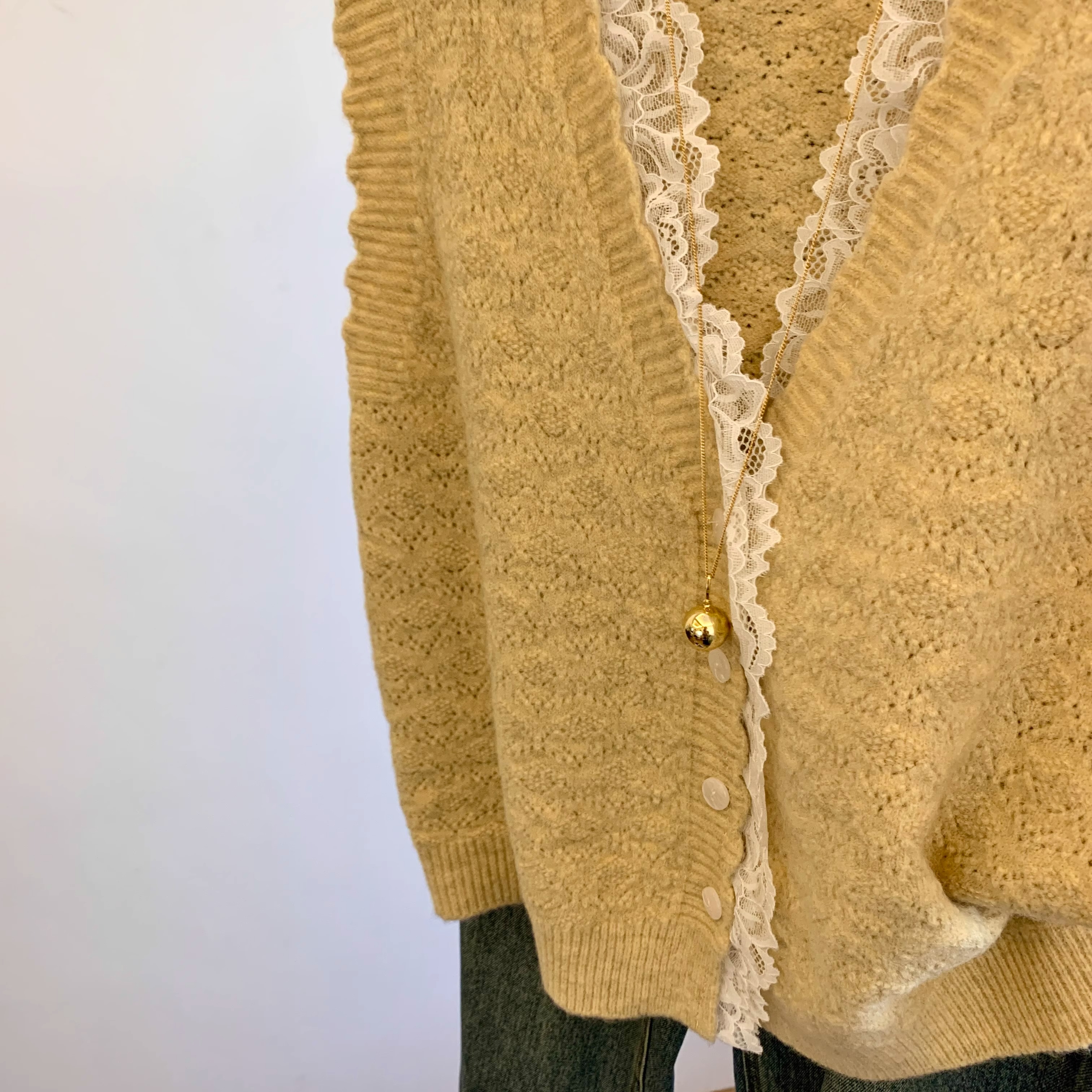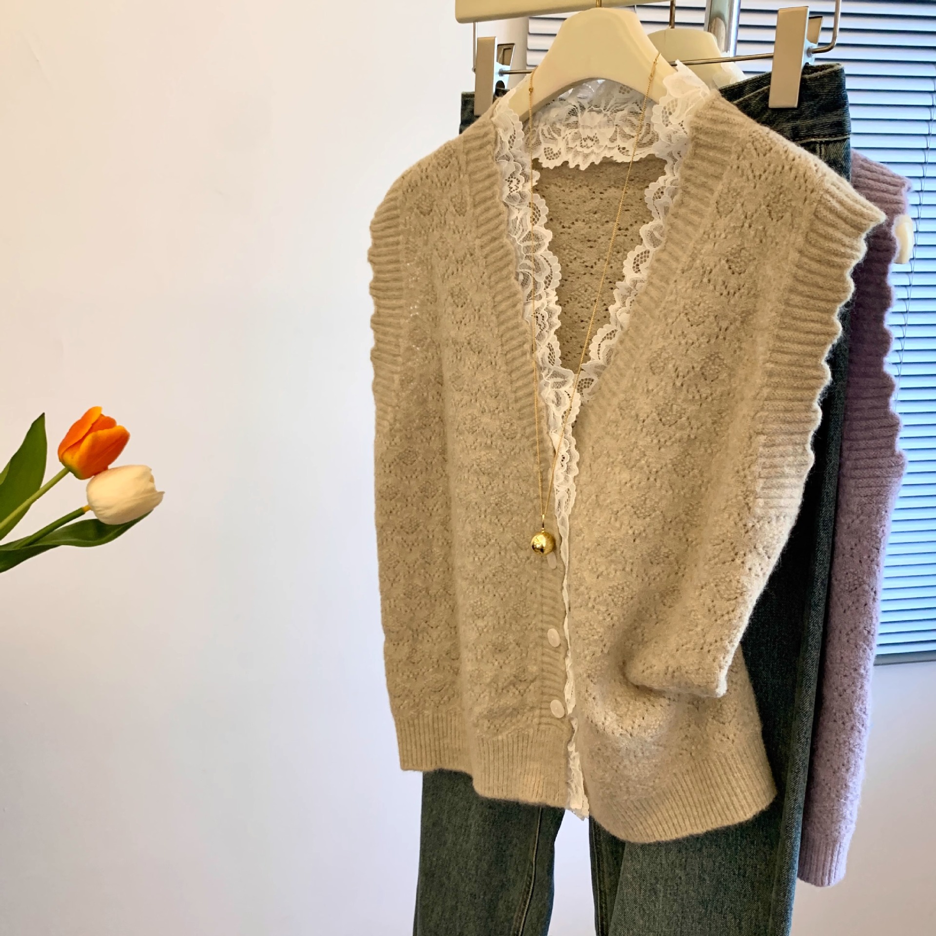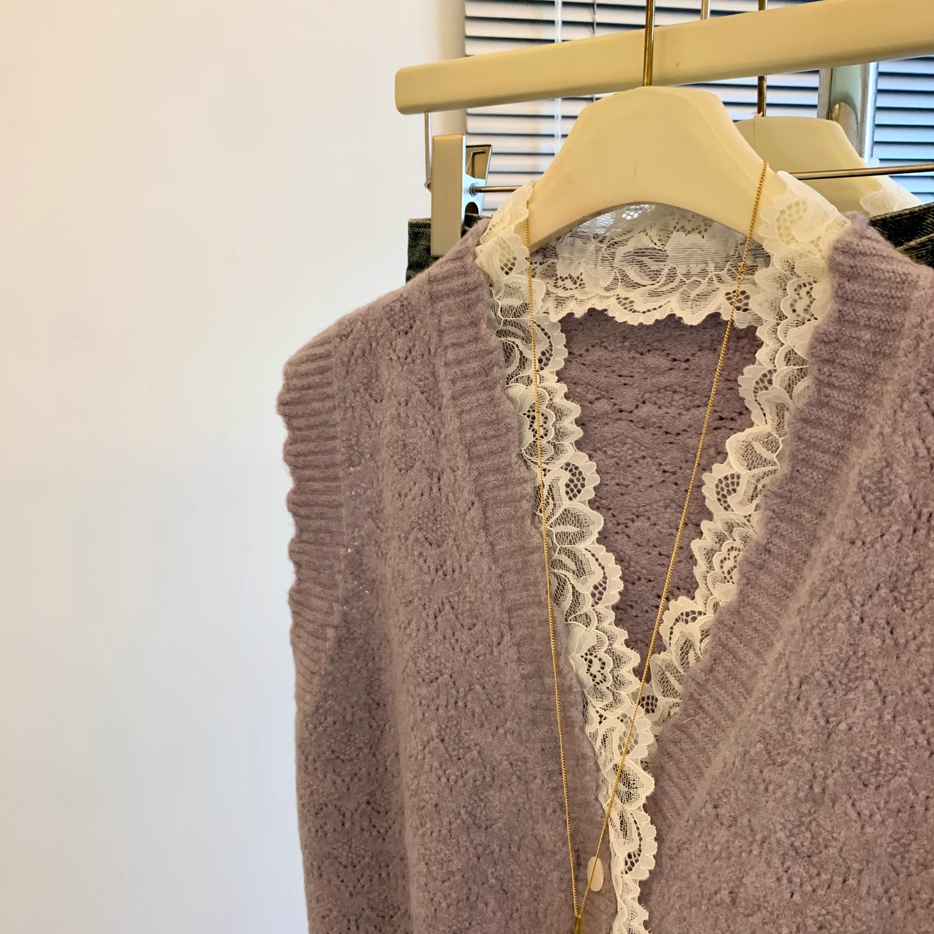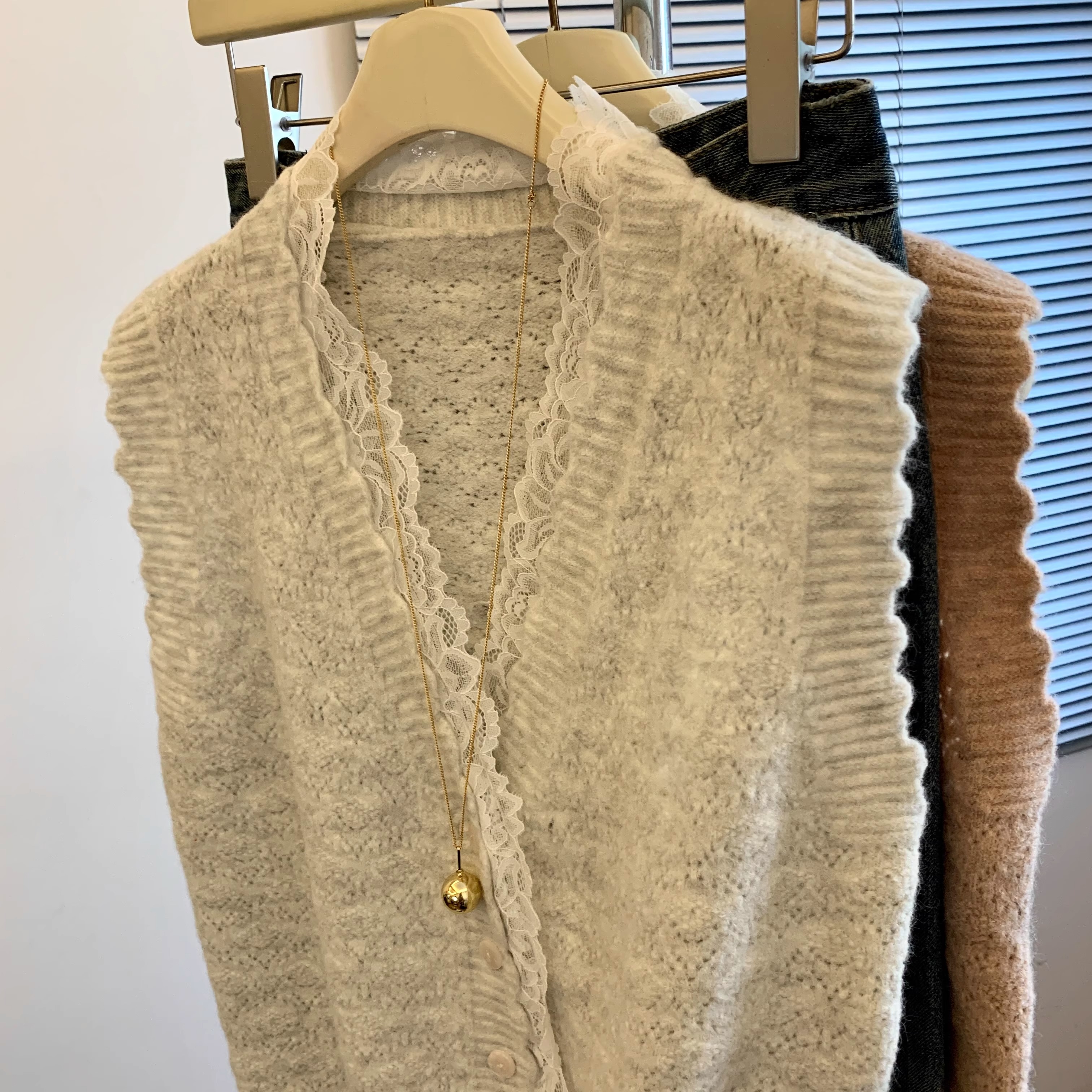 노란색 V 넥 레이스 스티칭 니트 조끼 여성 봄 2025 새로운 하이 엔드 카디건 양복 조끼 스웨터스토어 가기