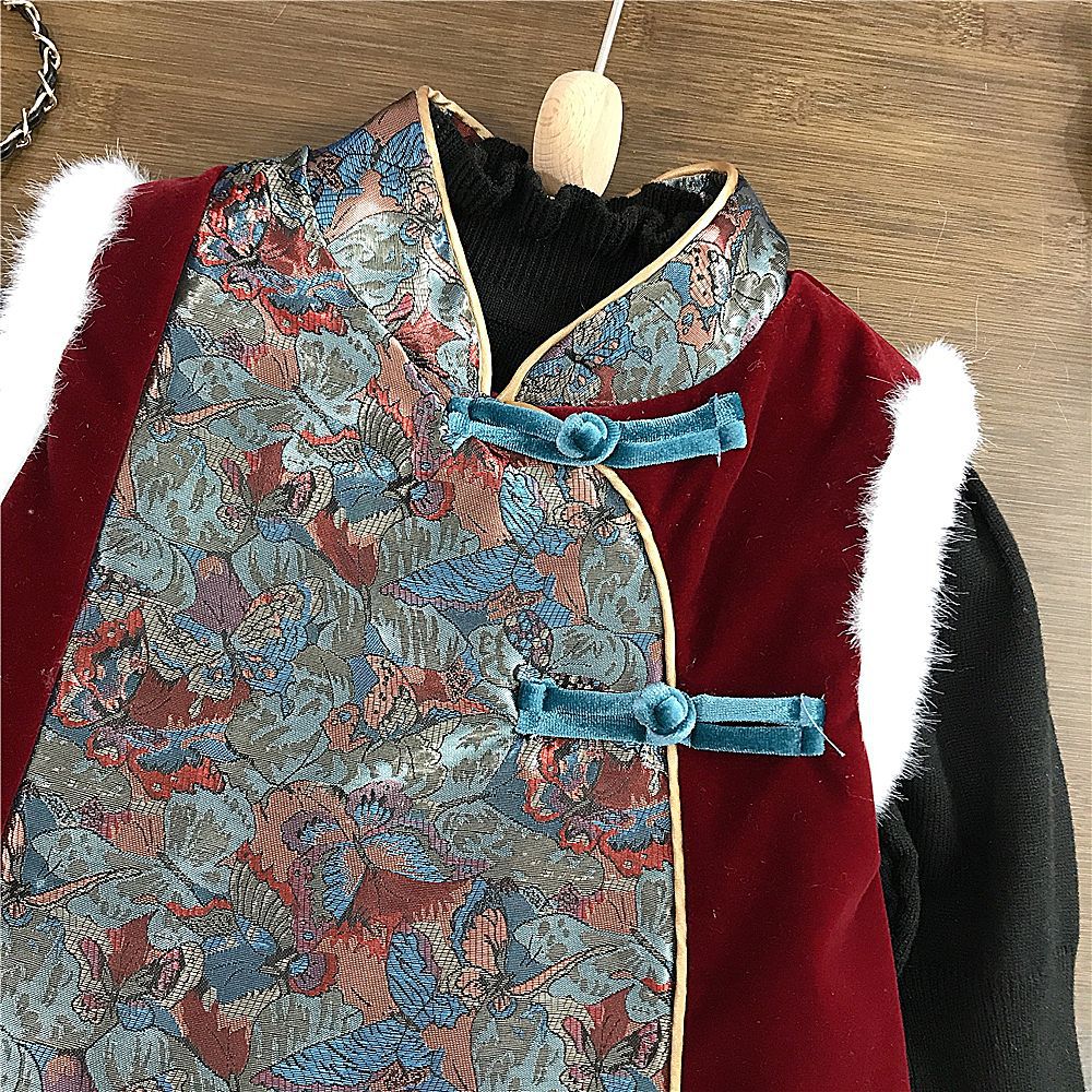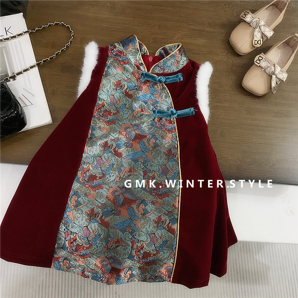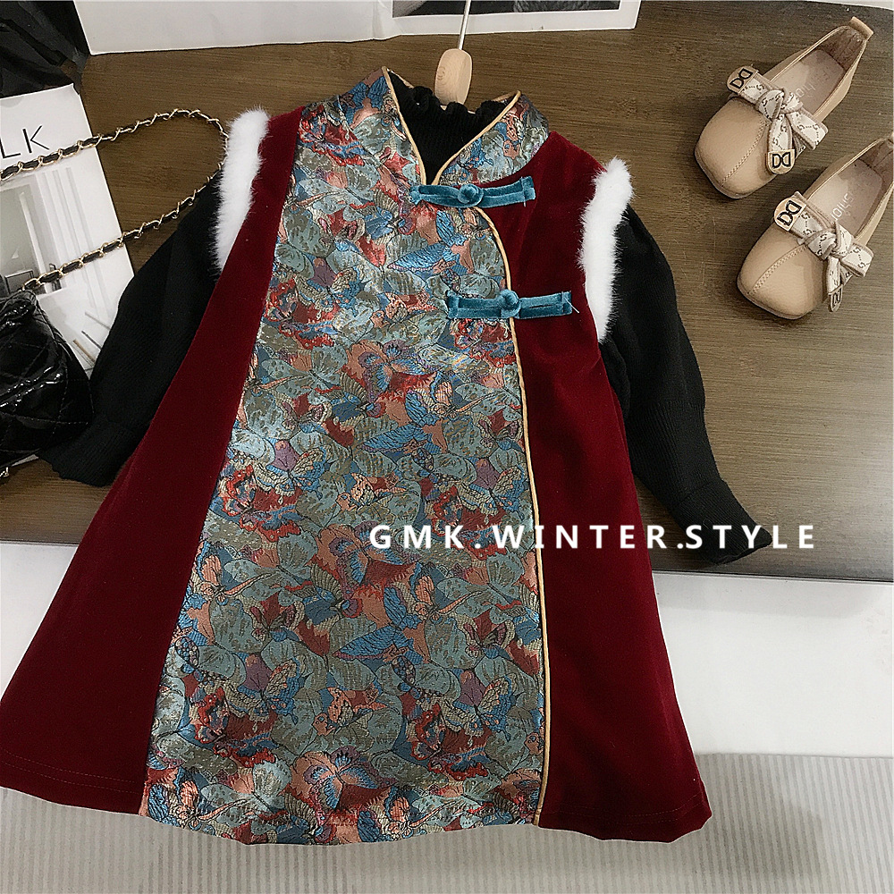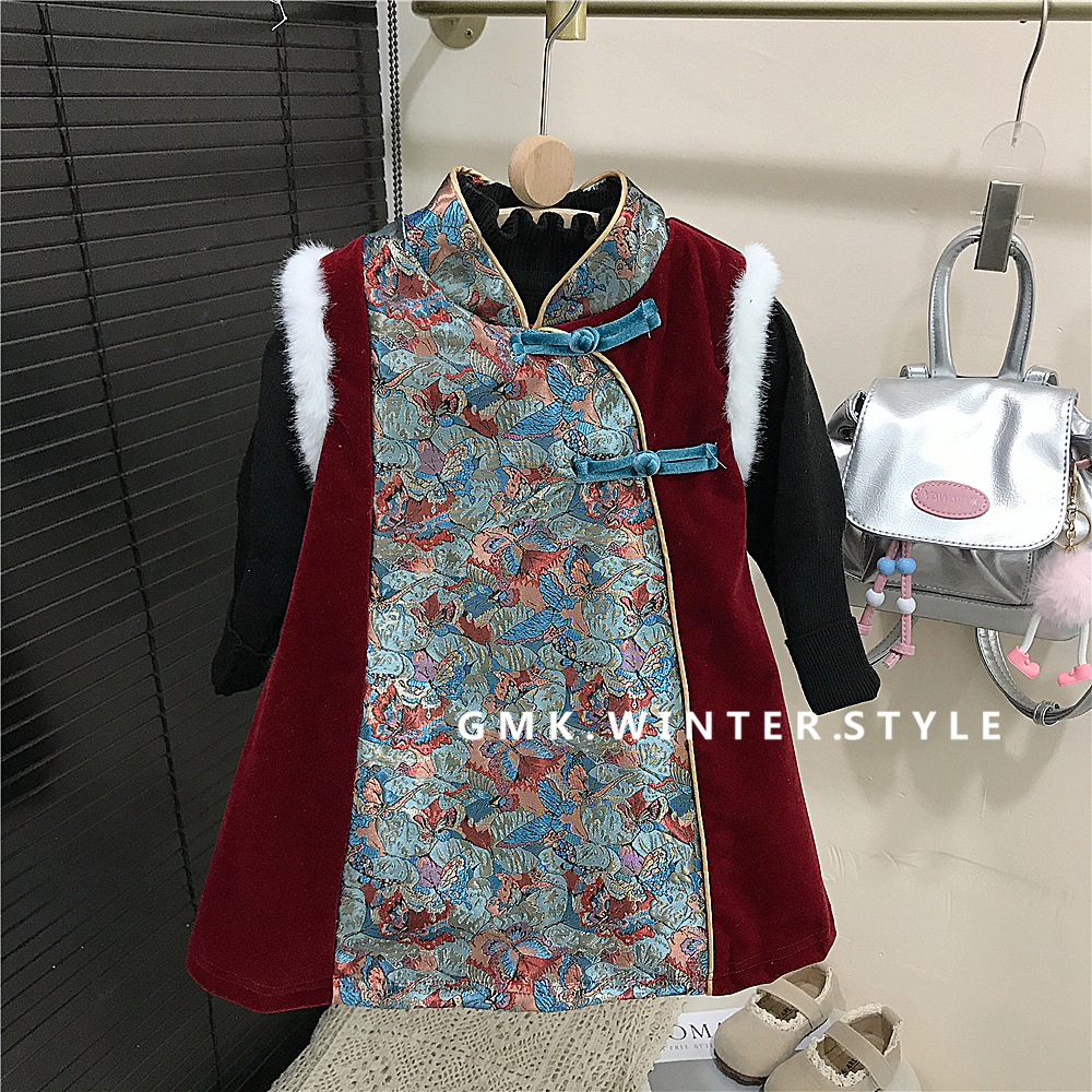 소녀들의 신년 서비스 면화 패딩 겨울 새 어린이 선박 원피스 새로운 중국 스타일 소녀 한푸 버클 원피스 대외 무역