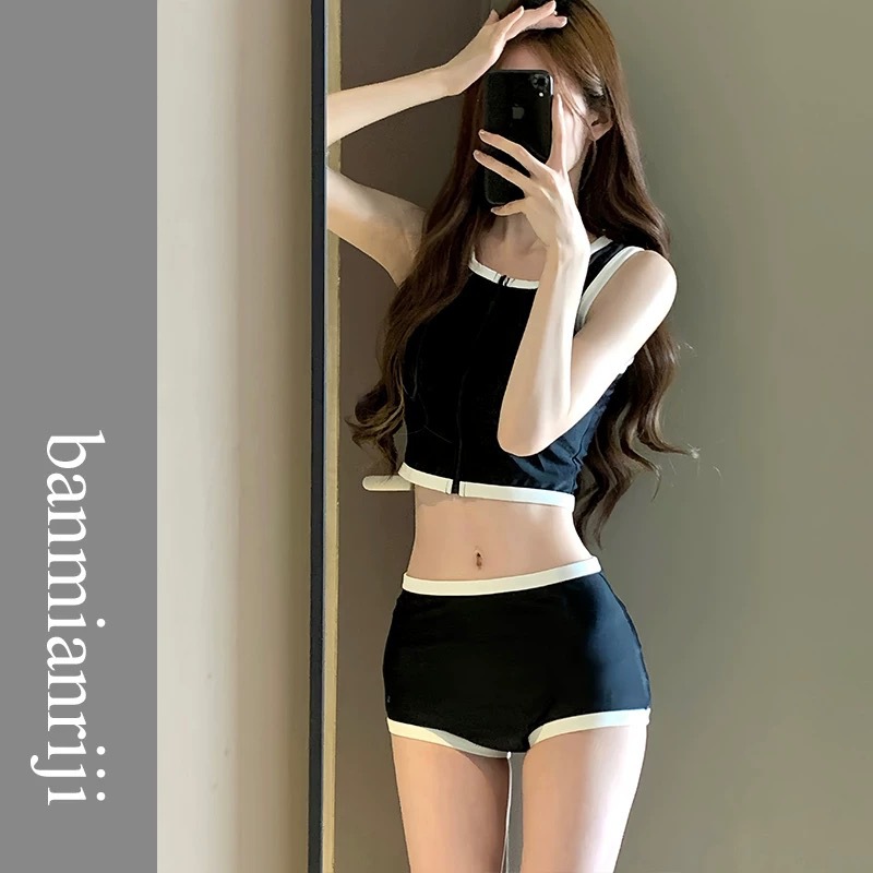 여름 새로운 수영복 여성 분할 학생 스포츠 보수적 인 작은 가슴 모임 높은 허리 배꼽이 뜨거운 봄 여자 수영복스토어 가기