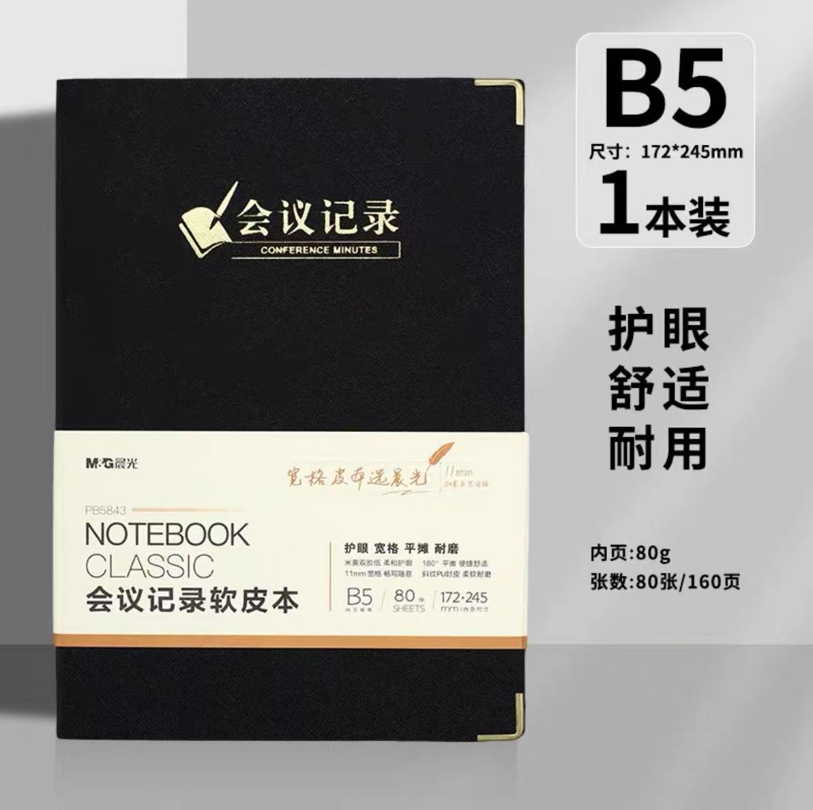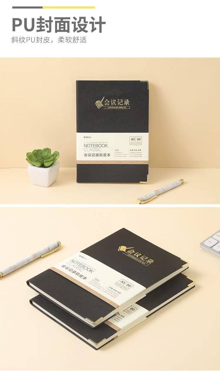 아침 회의 기록 사무실 회의를위한 부드러운 가죽 책 검은 가죽 책 B5 노트북 A5 워크 북스토어 가기