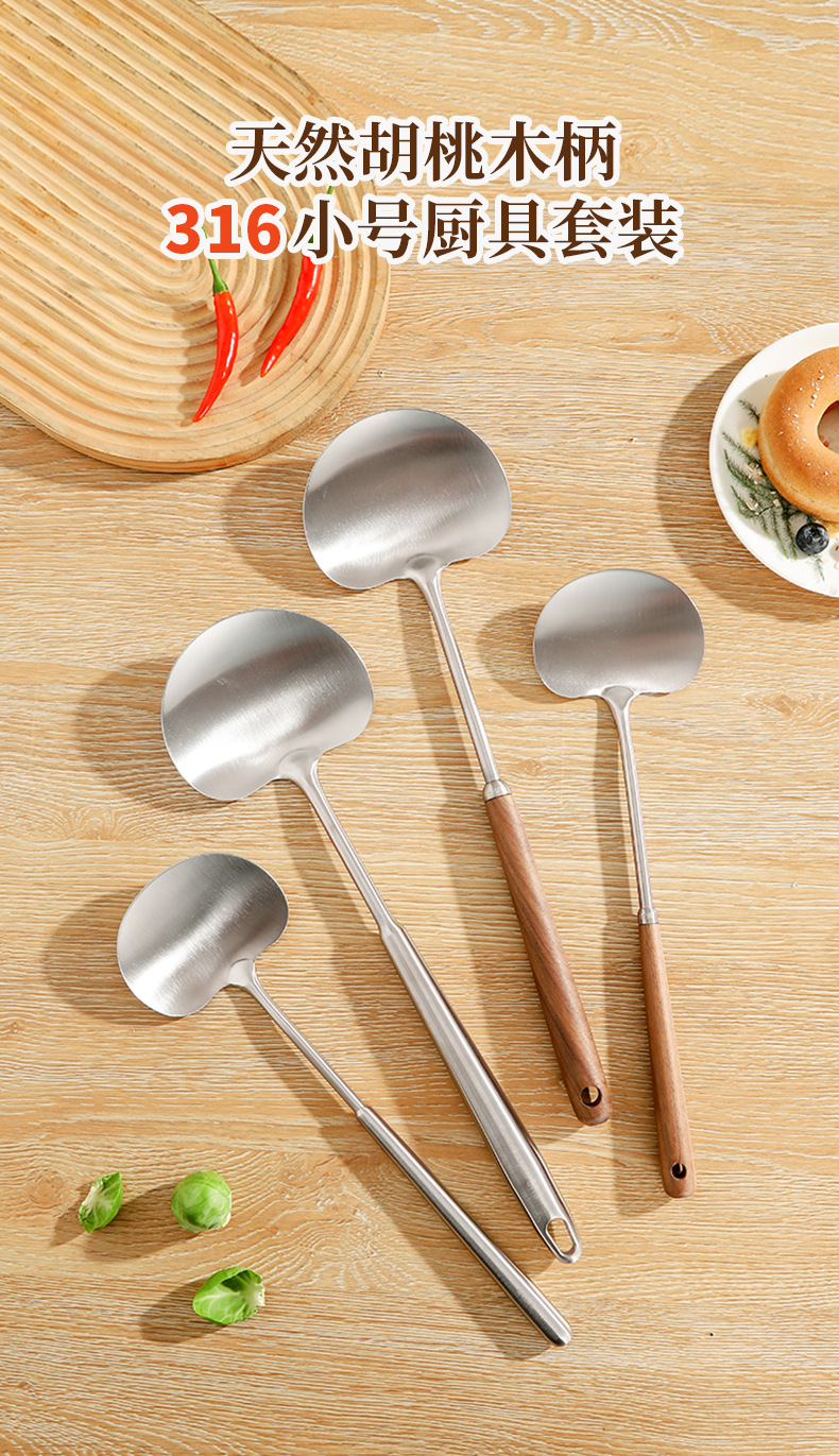 316 스테인리스 스틸 호두나무 끌, 볶음용 끌, 프라이팬용 끌, 가정용 주방 조리용 레트로 미니 끌, 주방용품스토어 가기