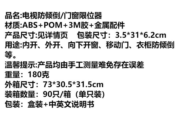 • TV 넘어짐 방지/도어 및 창 리미터 [2개 세트]