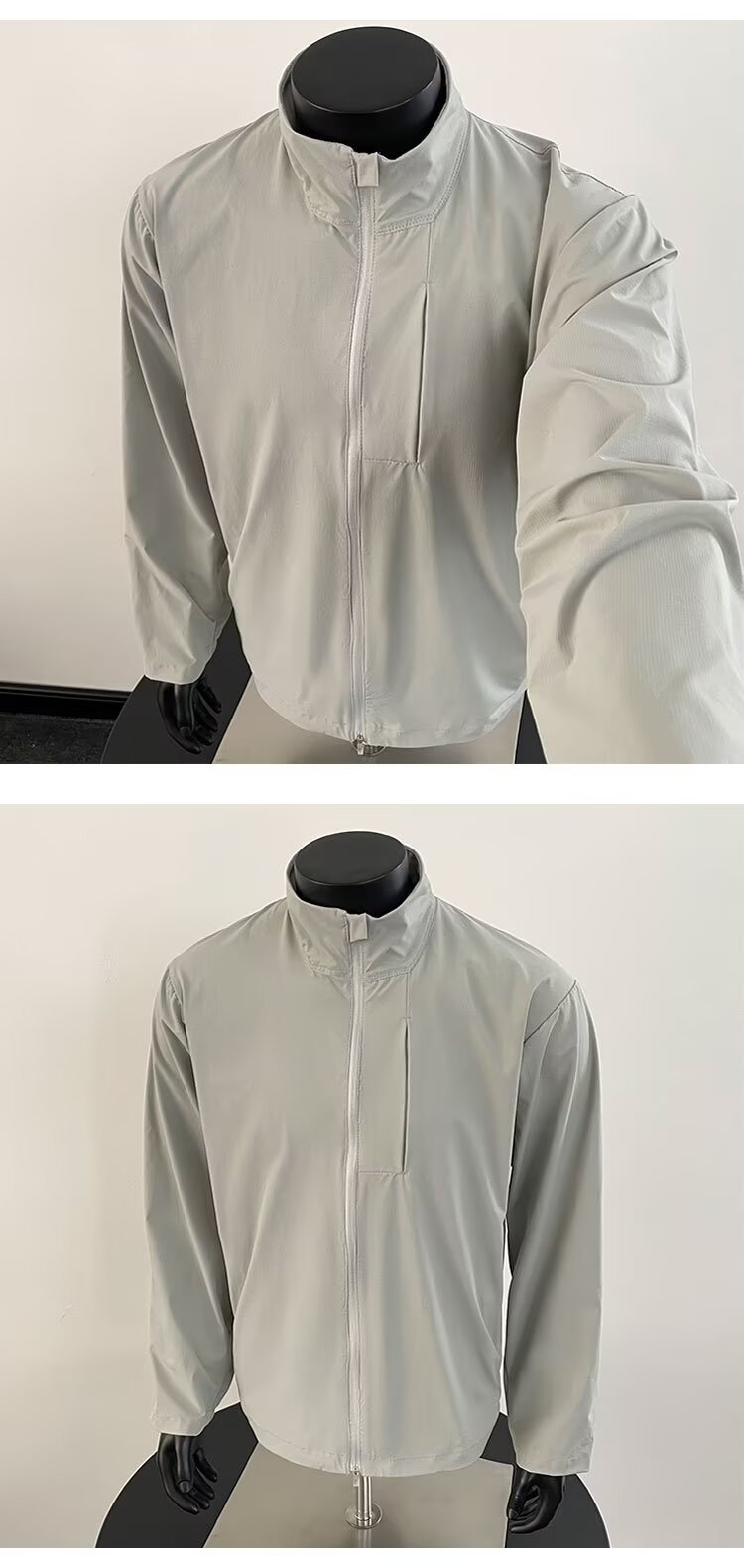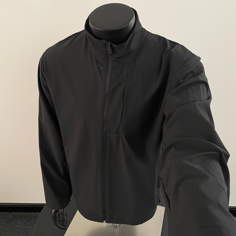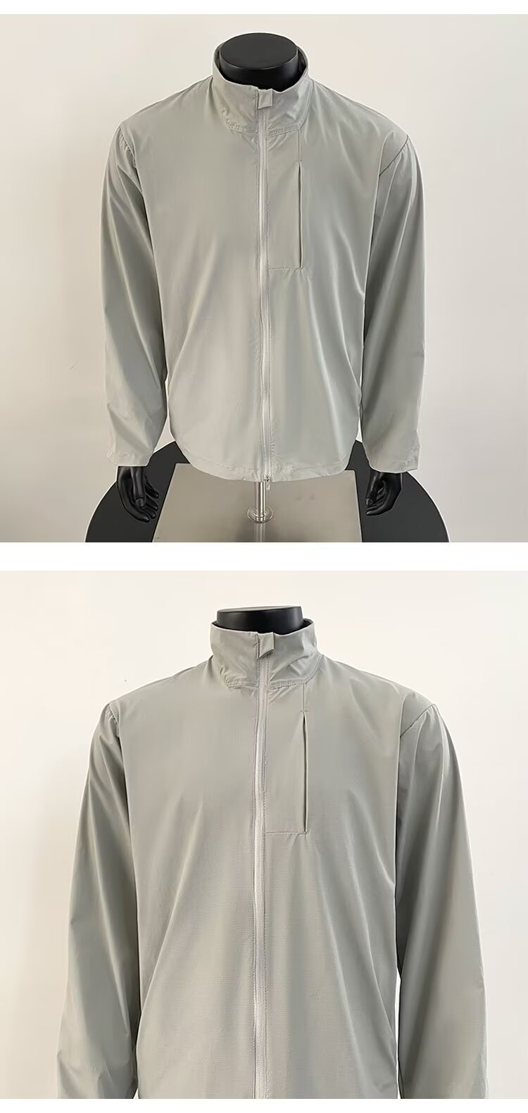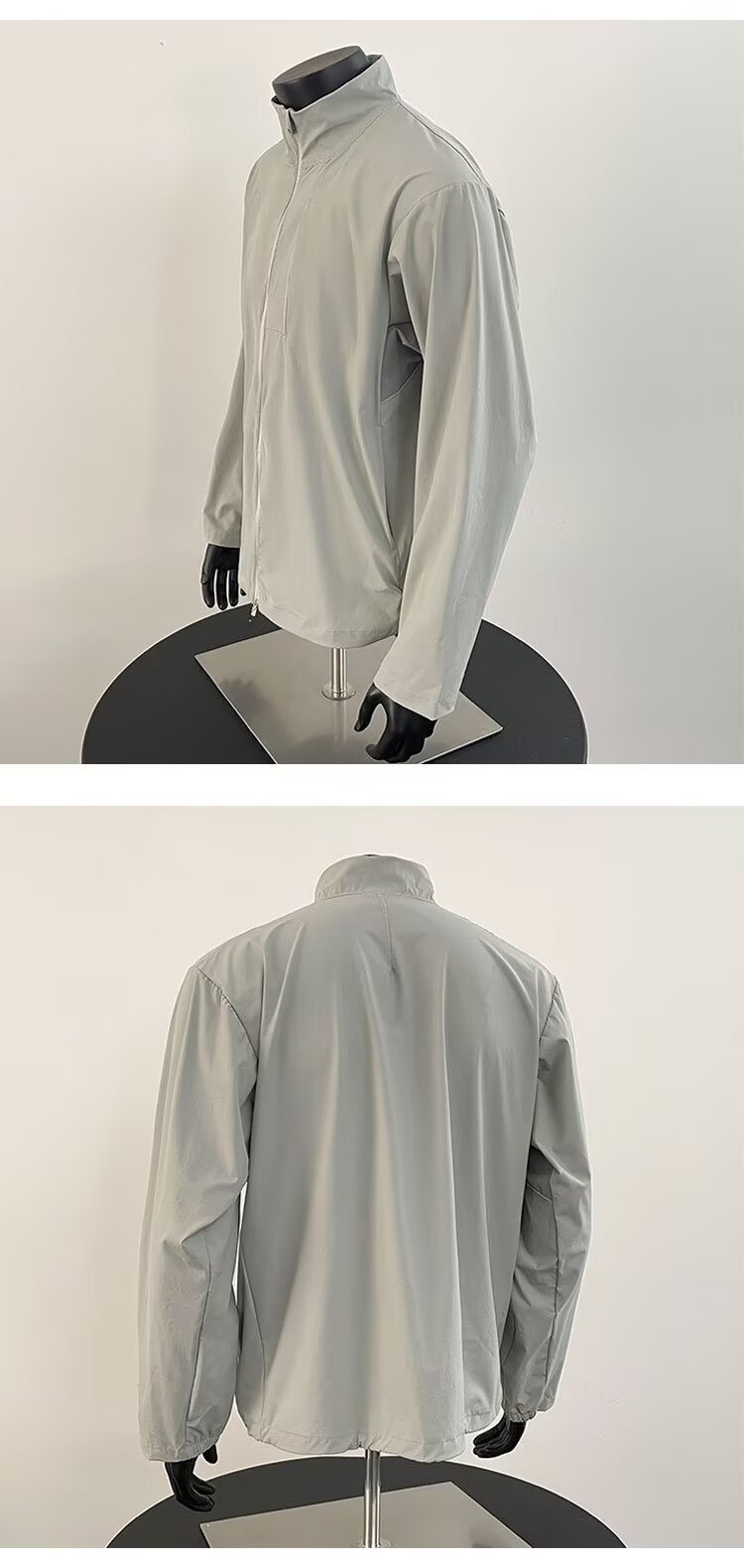 미국 스타일 수직 칼라 솔리드 컬러 얇은 재킷 남성 봄과 가을 야외 기능성 재킷 느슨한 스포츠 등산 재킷