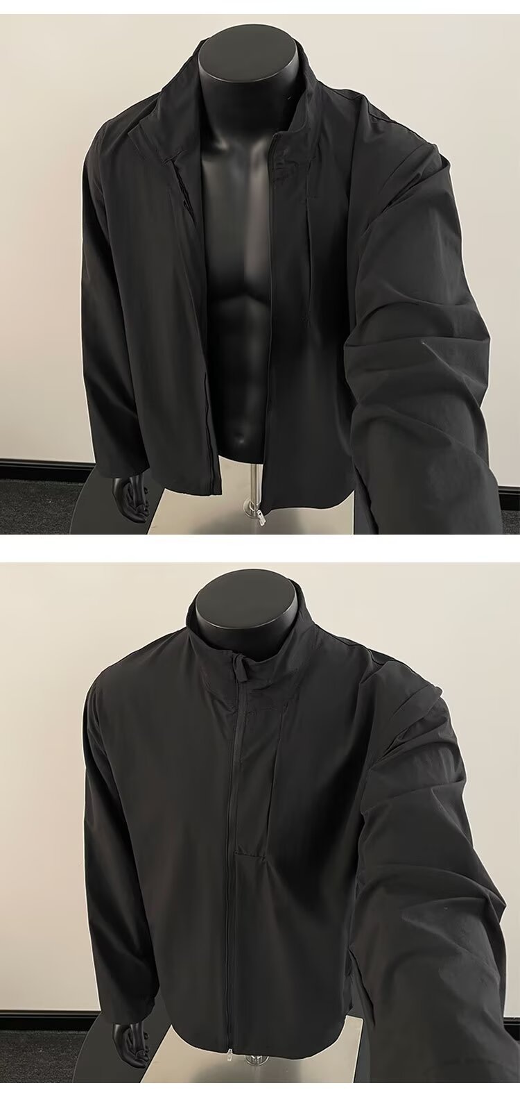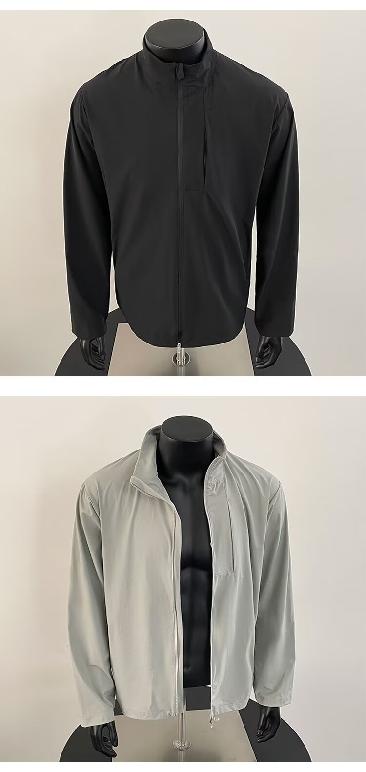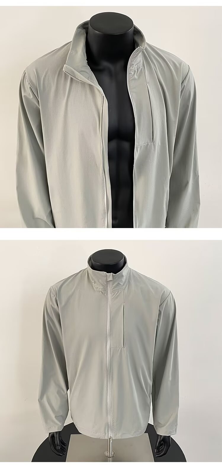 미국 스타일 수직 칼라 솔리드 컬러 얇은 재킷 남성 봄과 가을 야외 기능성 재킷 느슨한 스포츠 등산 재킷