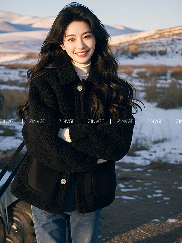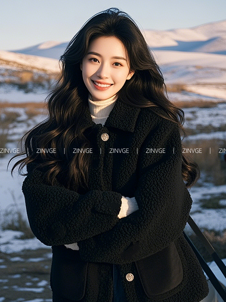 YT392958 폭발 겨울 독특한 슈퍼 잘 생긴 블랙 캐시미어 코트 숙녀 기질 고급 라이트 성숙한 스타일