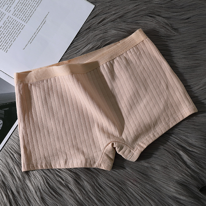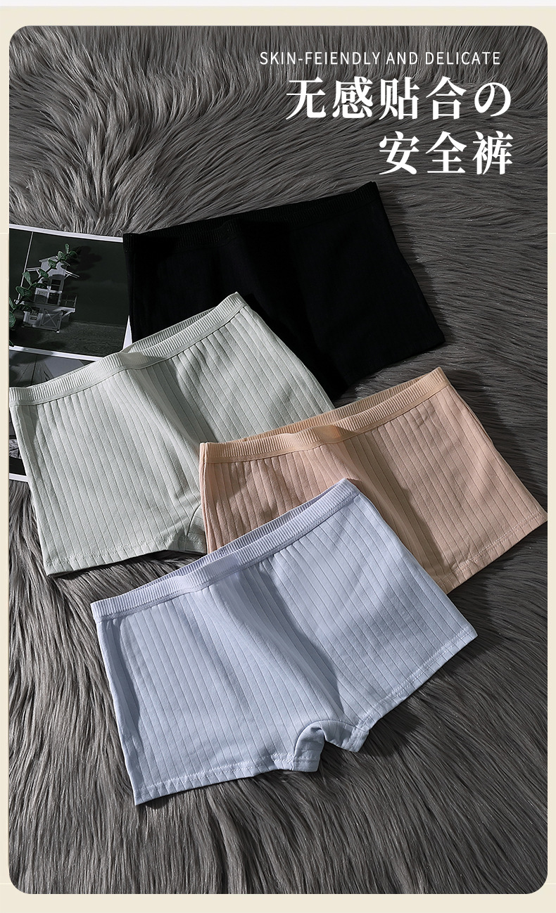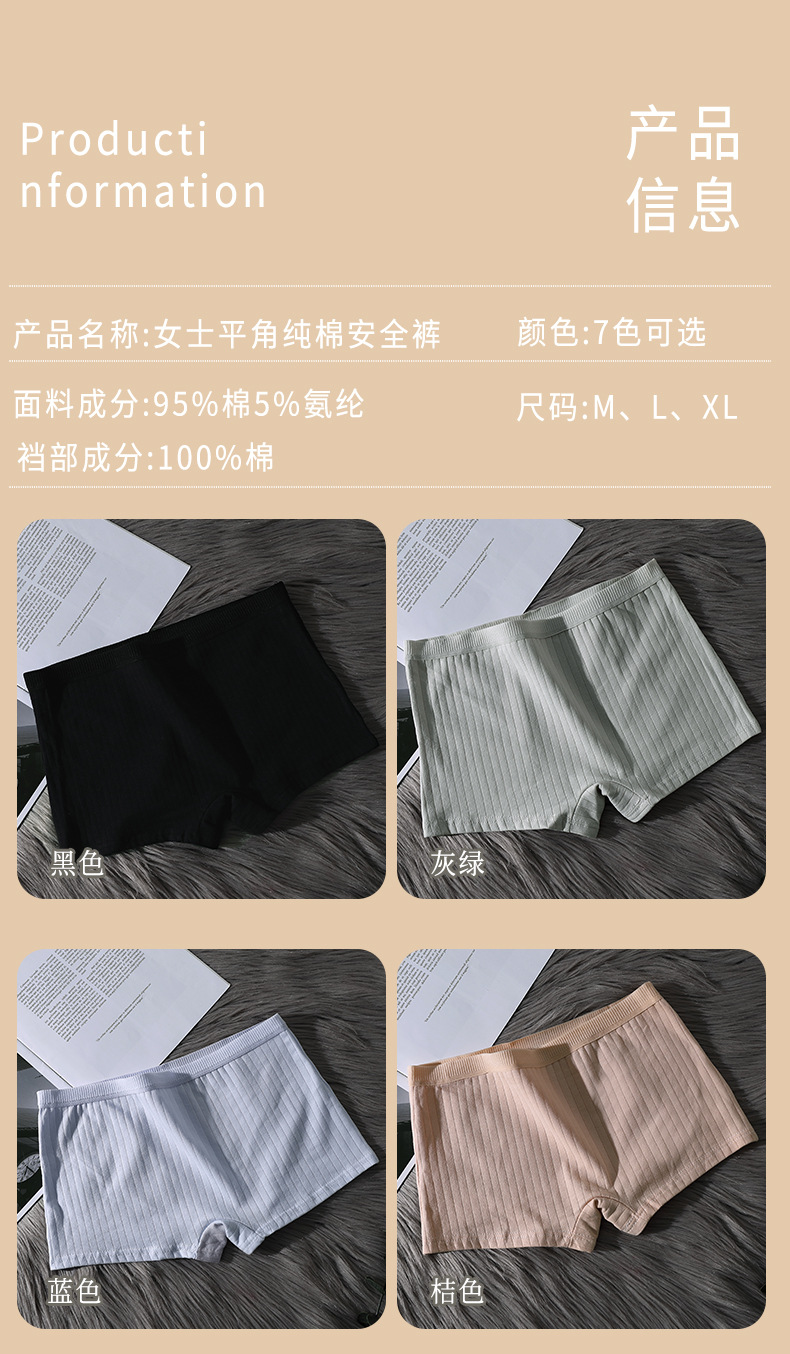 코너 코튼 팬티 여성용 코튼 Crotch 통기성 중간 허리 트리스 안티 러닝 안전 바지 여성용 수직 패턴 플랫 바지