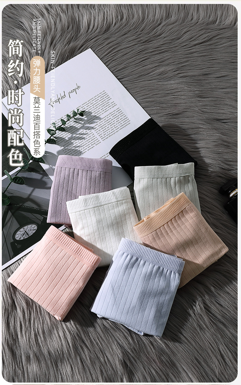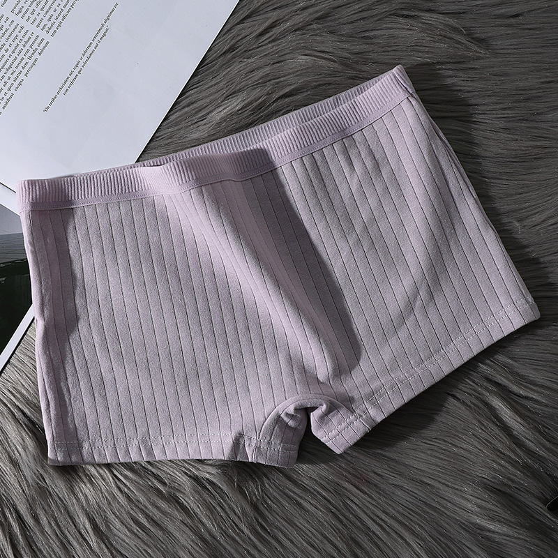 코너 코튼 팬티 여성용 코튼 Crotch 통기성 중간 허리 트리스 안티 러닝 안전 바지 여성용 수직 패턴 플랫 바지스토어 가기