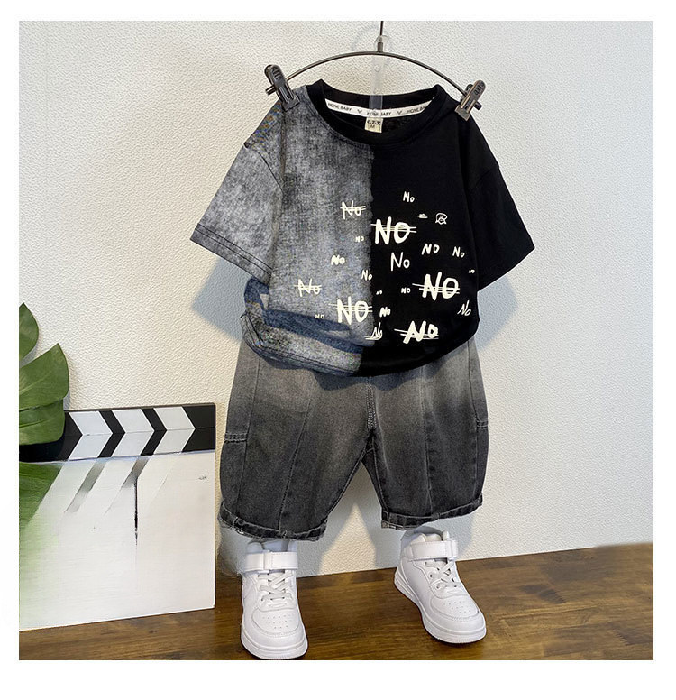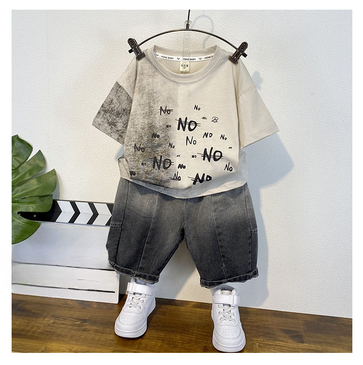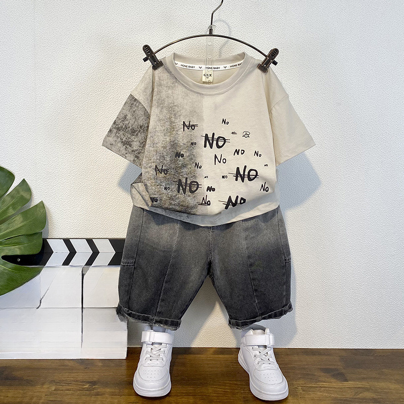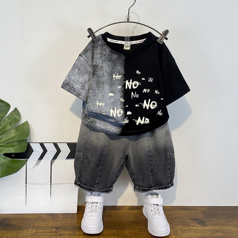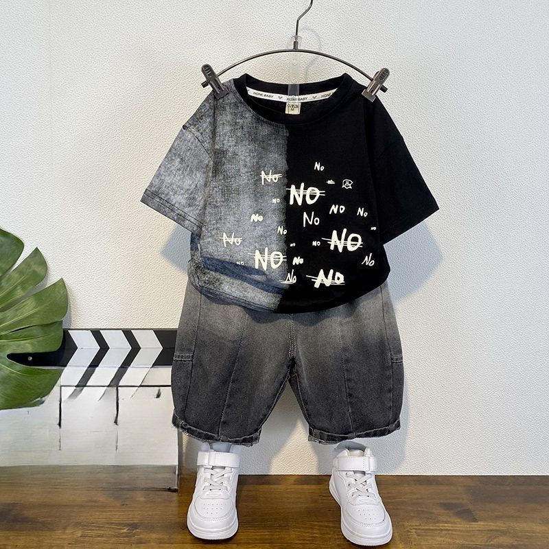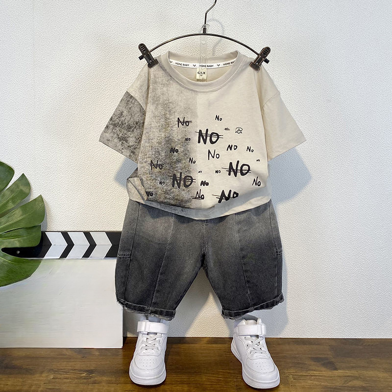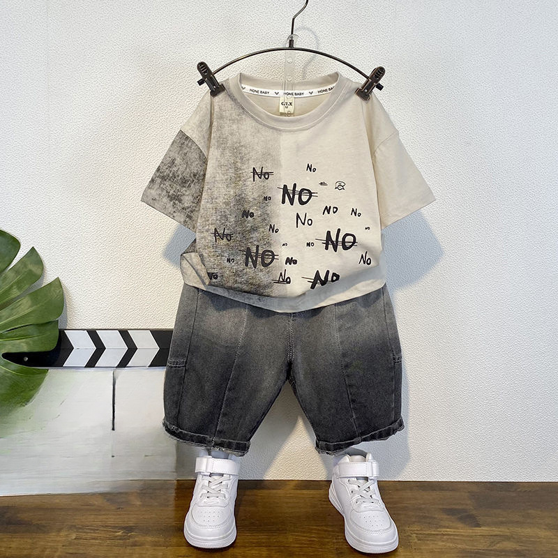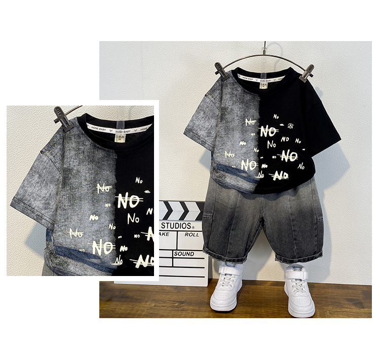 남자들의 여름 반팔 세트 새로운 서양식 어린이 얇은 옷 반바지 멋진 잘 생긴 아기 한국식 여름 패션