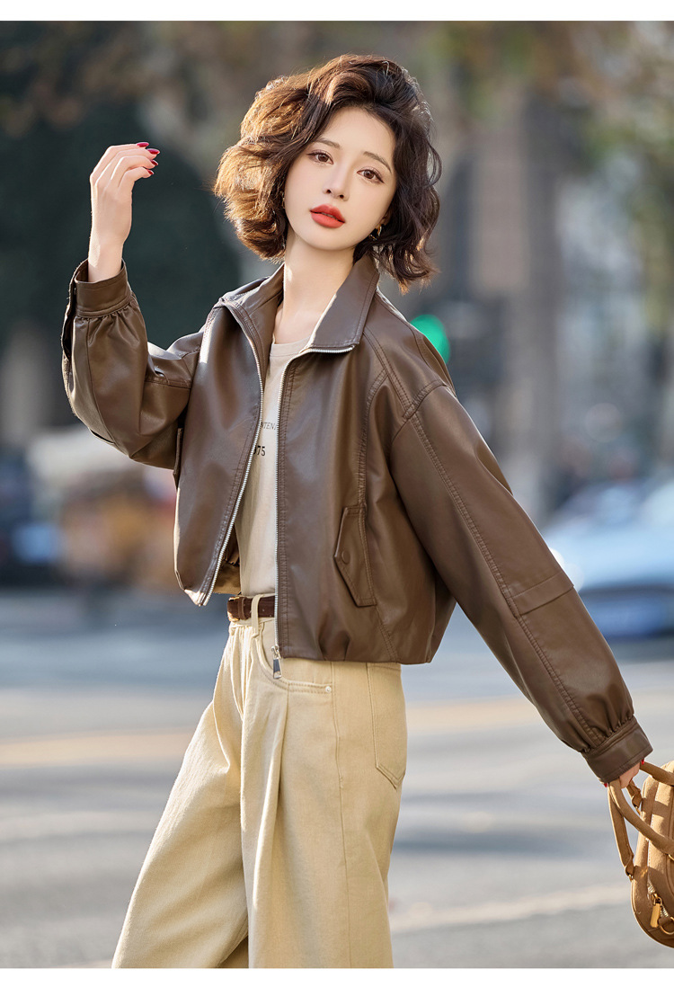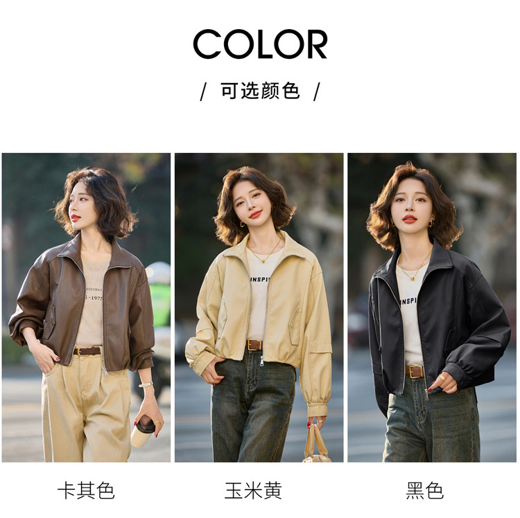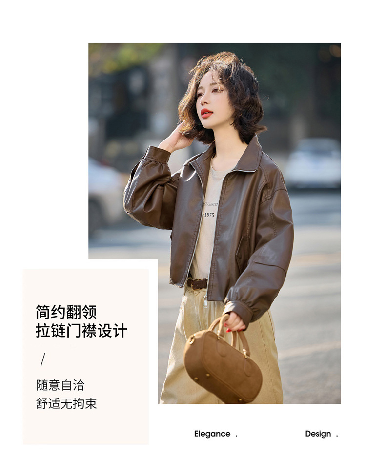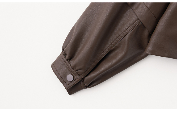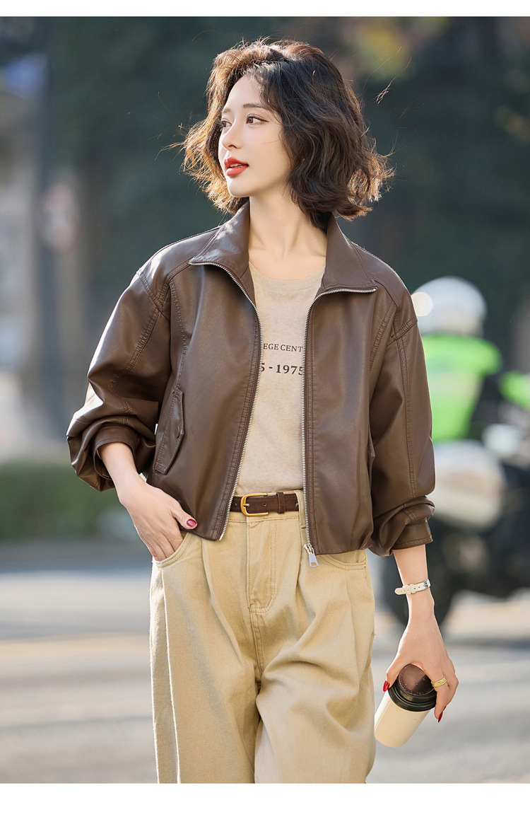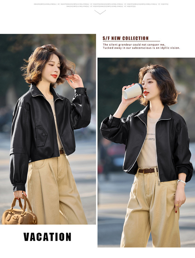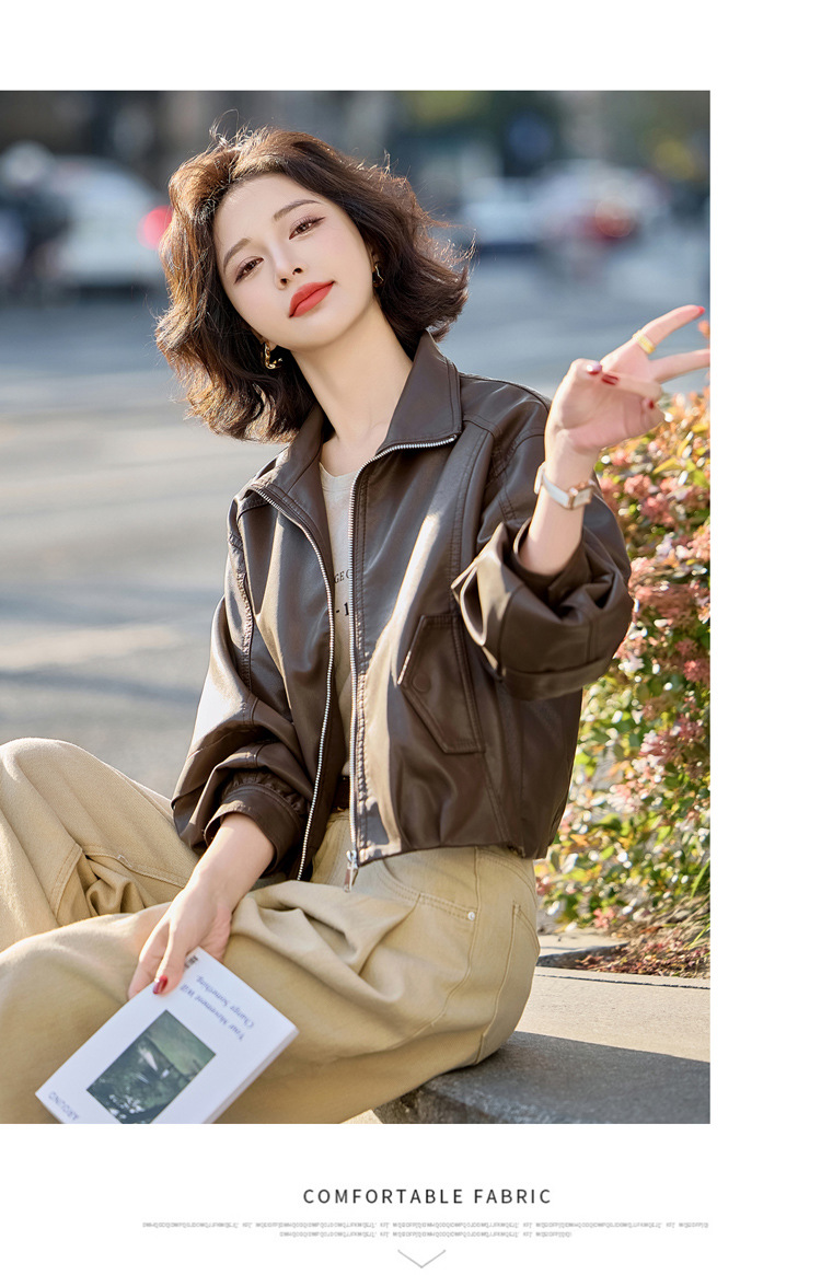 여자 가죽 2025 봄 새로운 여성 빈티지 옷깃 느슨한 올매치 캐주얼 PU 가죽 자켓 코트 YB3568스토어 가기