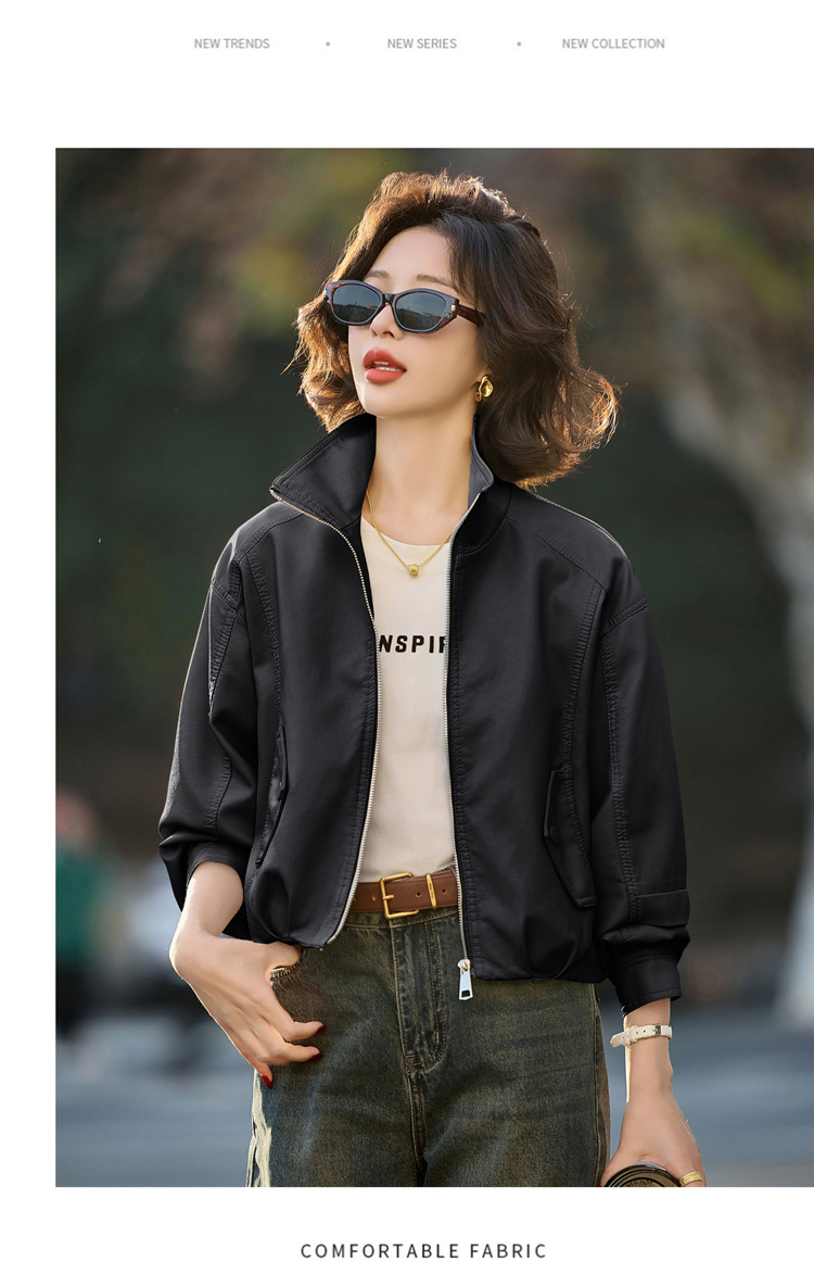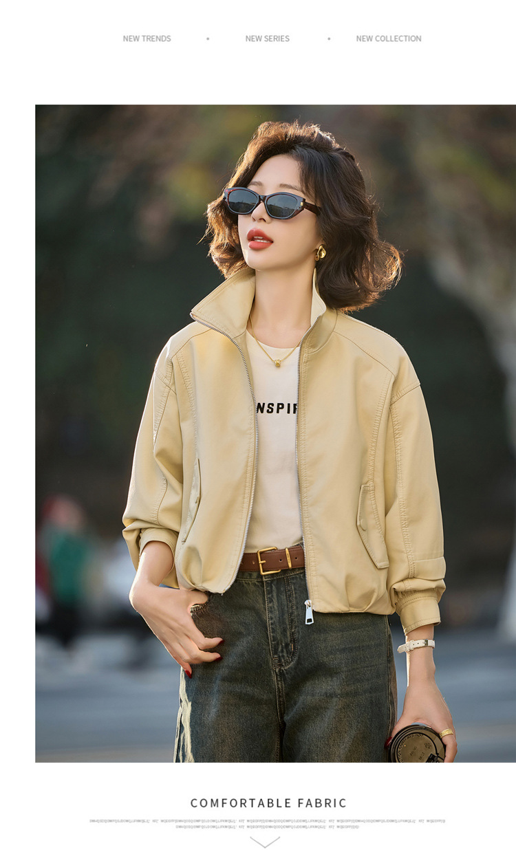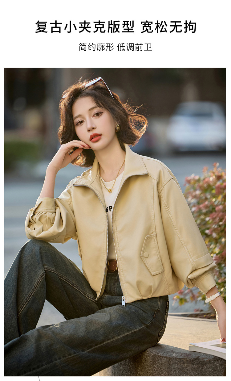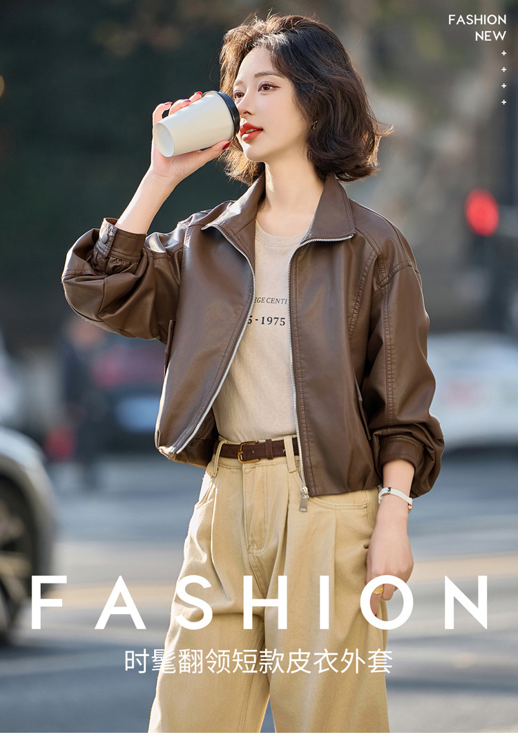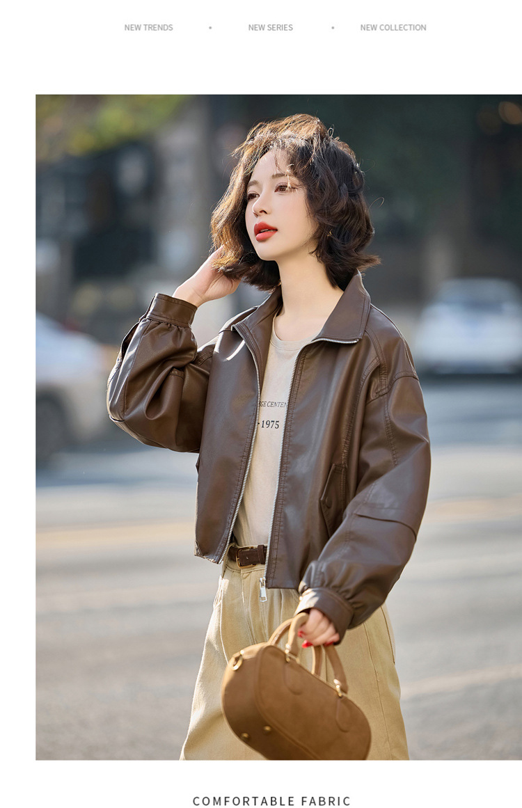 여자 가죽 2025 봄 새로운 여성 빈티지 옷깃 느슨한 올매치 캐주얼 PU 가죽 자켓 코트 YB3568스토어 가기