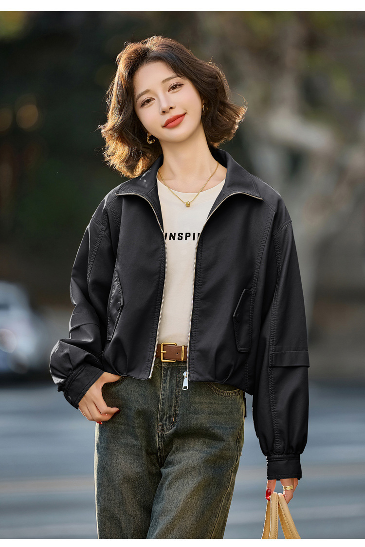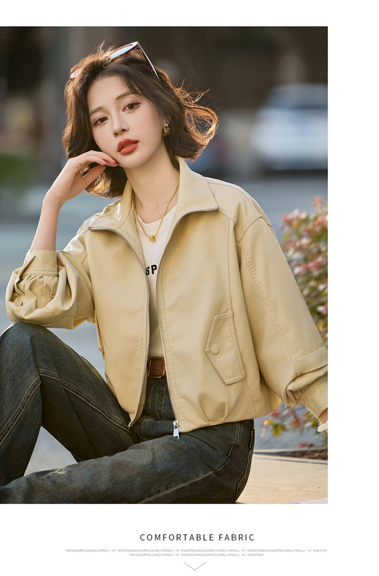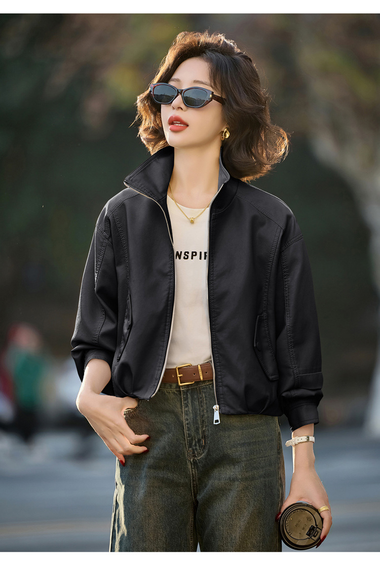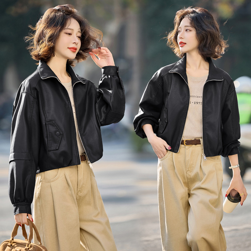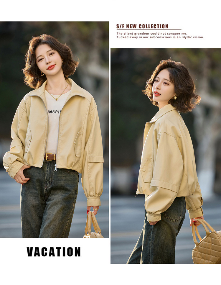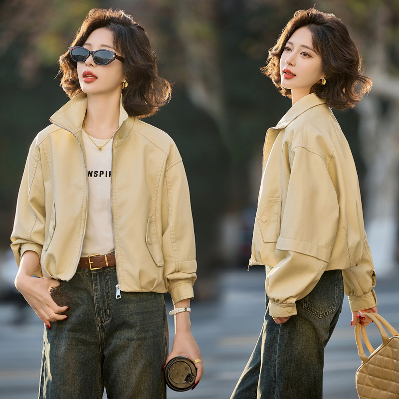 여자 가죽 2025 봄 새로운 여성 빈티지 옷깃 느슨한 올매치 캐주얼 PU 가죽 자켓 코트 YB3568