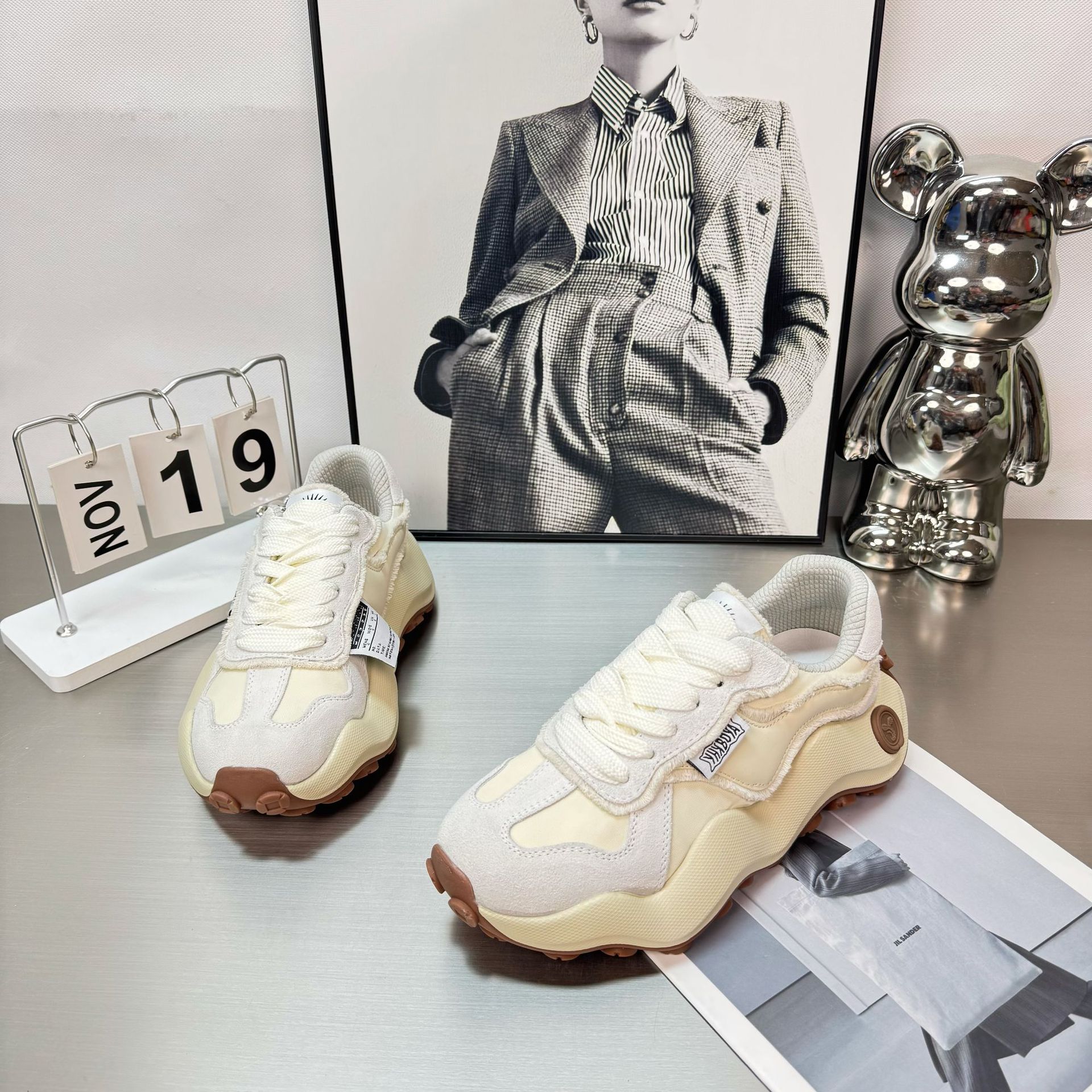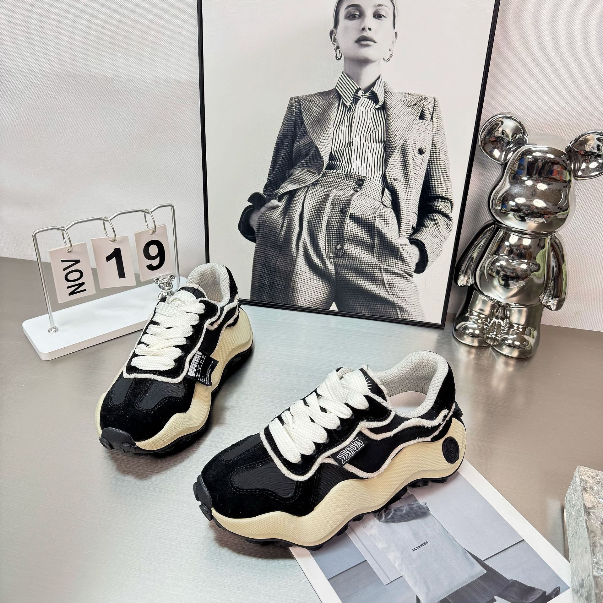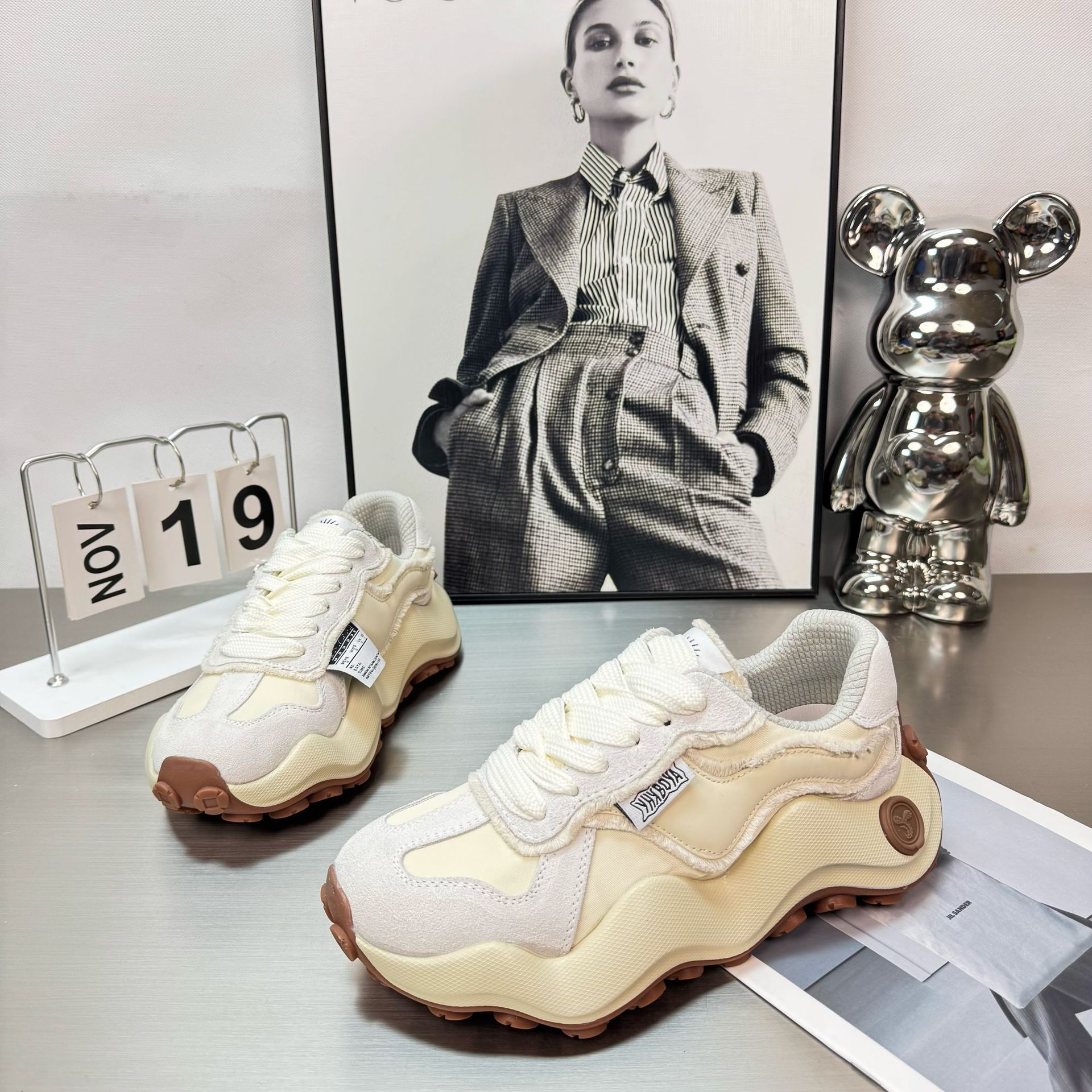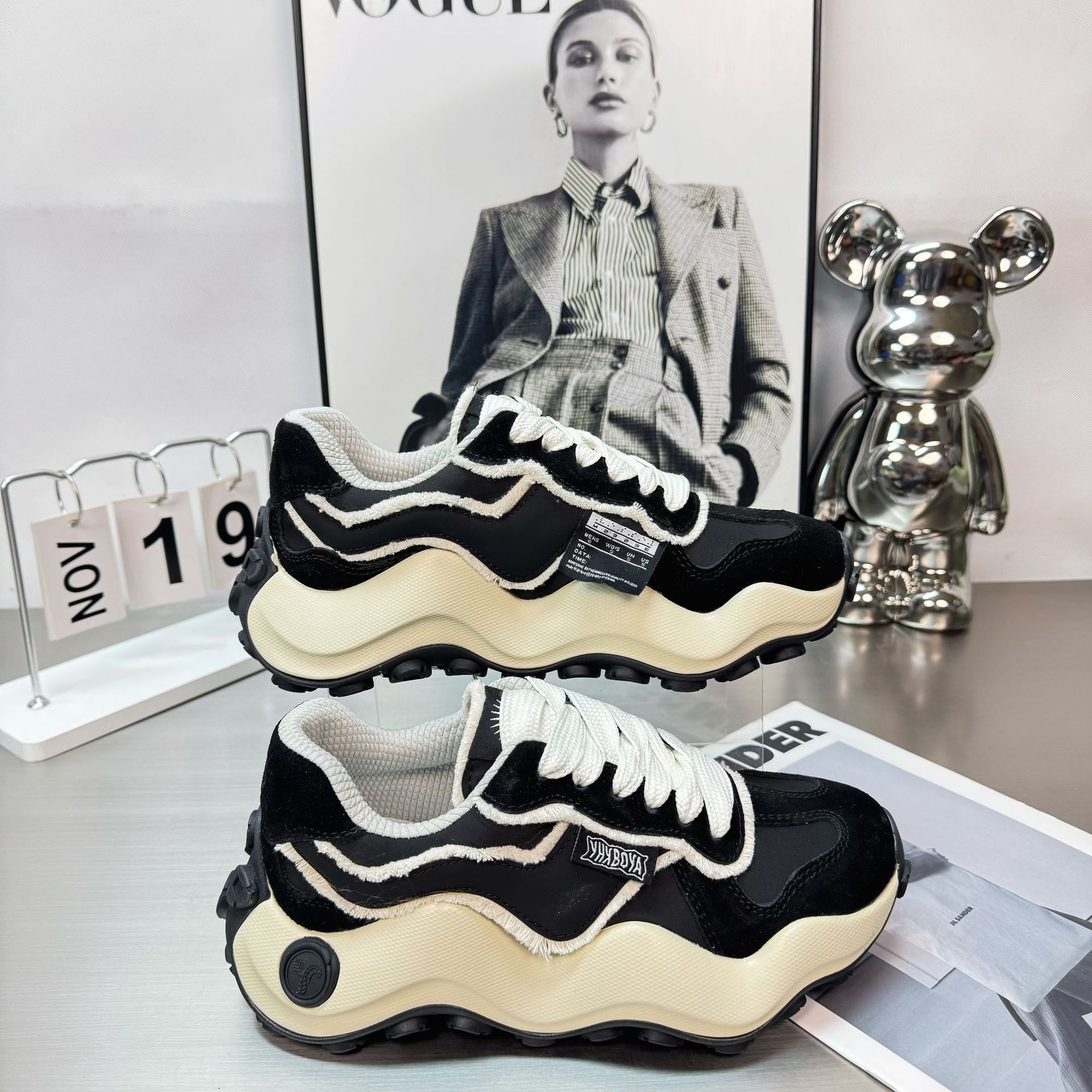 2025 새로운 자오 루시 흰 사슴 조인트 웨이브 보드 신발 남녀 애호가 신발 두꺼운 밑창 아빠 신발 빵스토어 가기