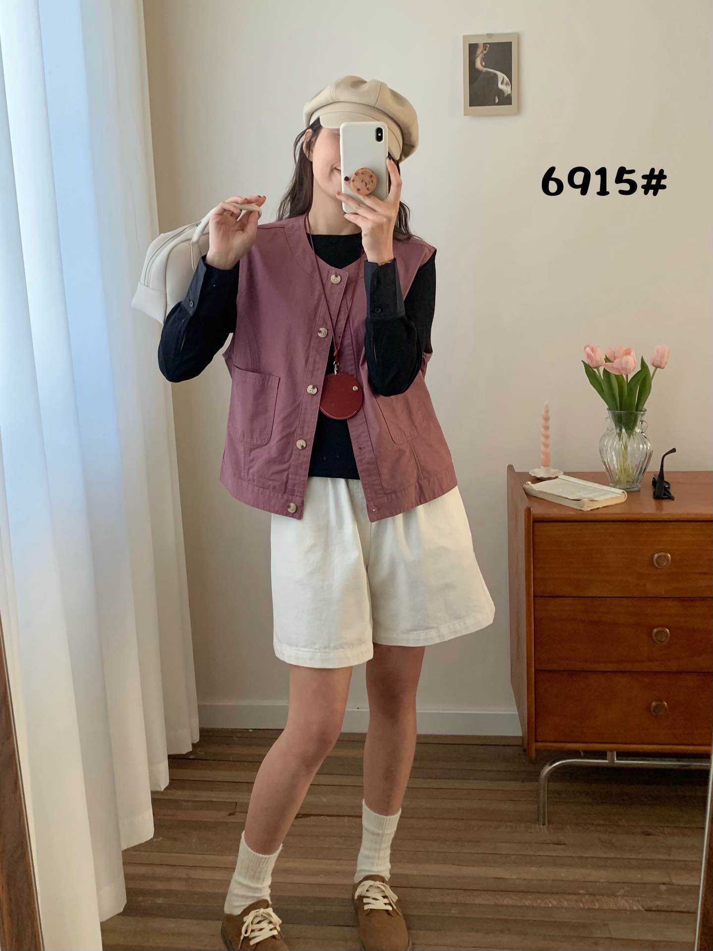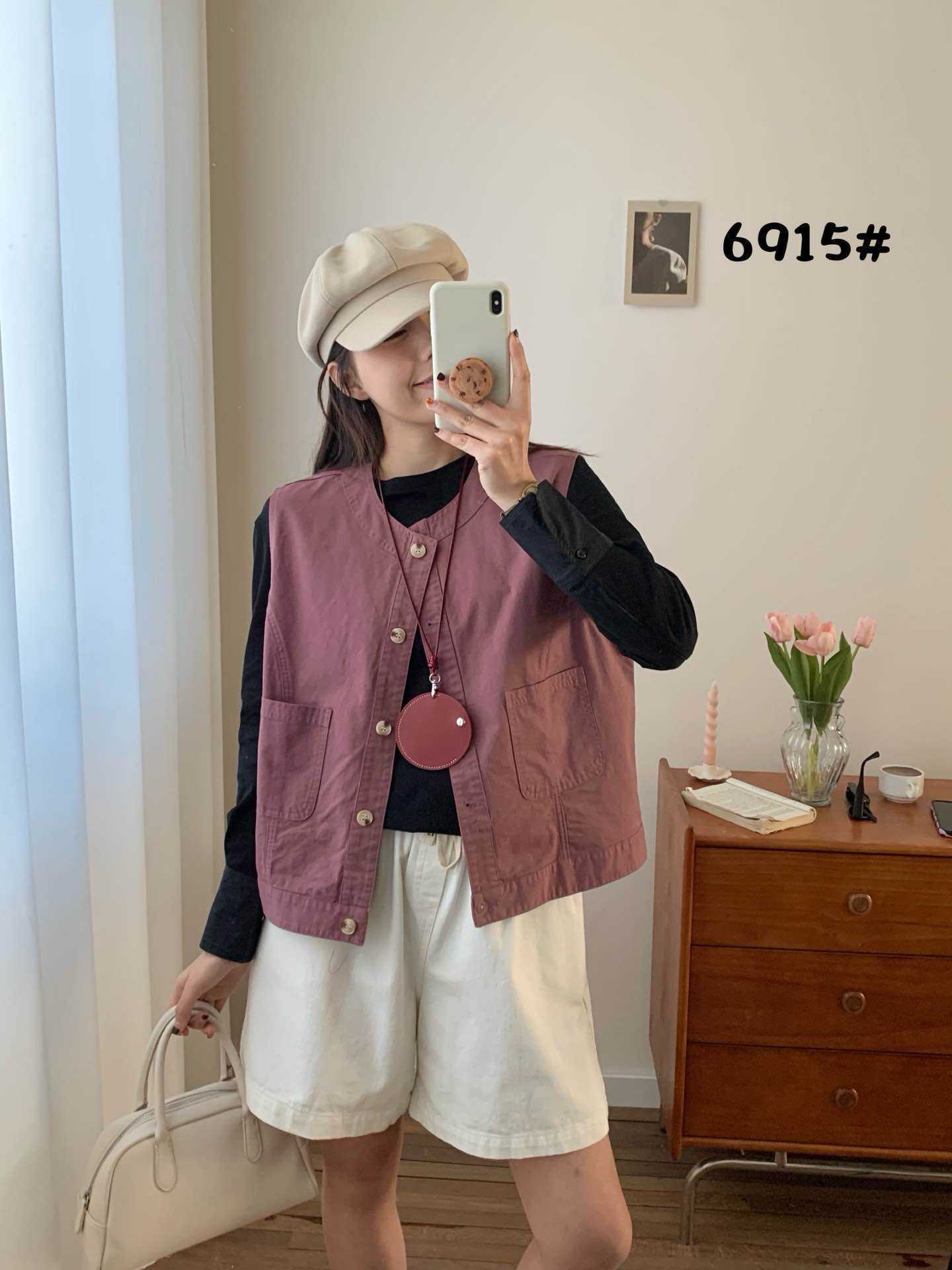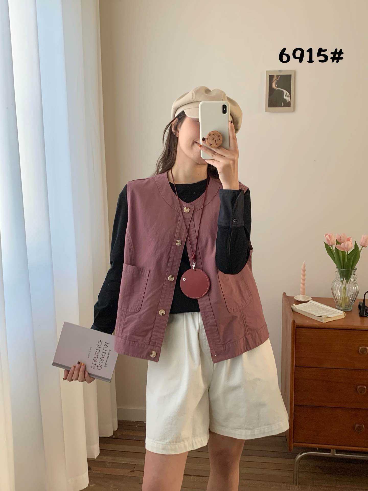 나이를 줄이는 크루 넥 솔리드 컬러 조끼 여자 2025 년 이른 봄 새 한국식 루즈 올매치 스택 재킷 조끼스토어 가기