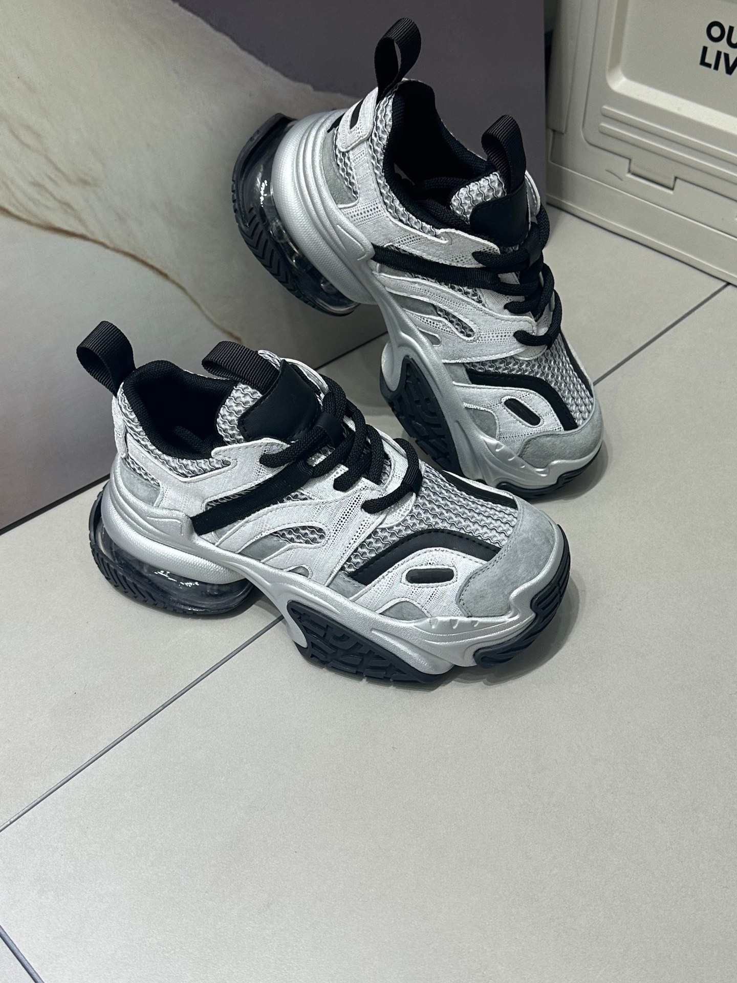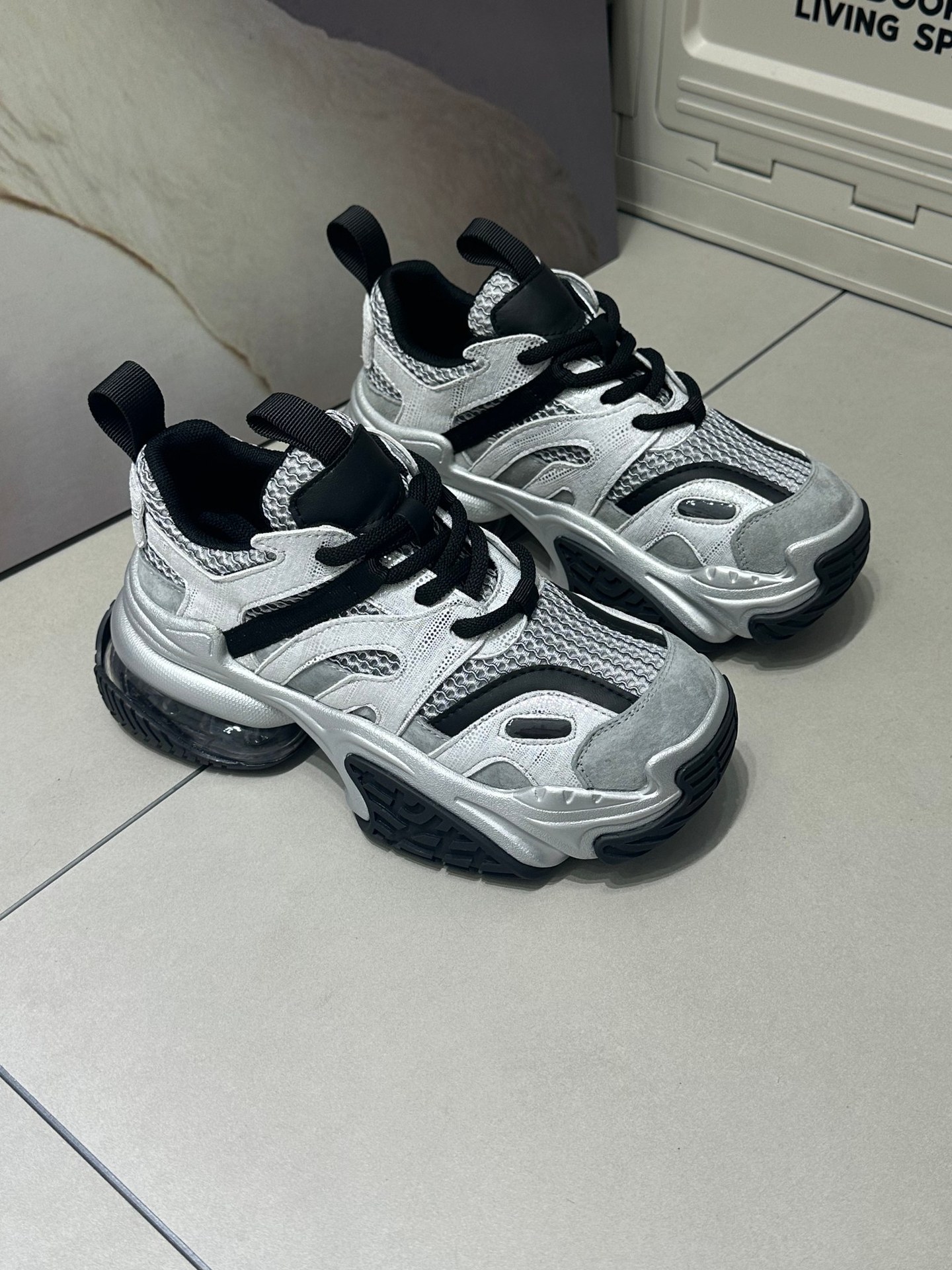 정품 가죽 두꺼운 바닥 증가 캐주얼 토르 신발 여성 2025 년 봄 가을 새 한국 스타일 라운드 토 레이스 부드러운 바닥 운동화 트렌디