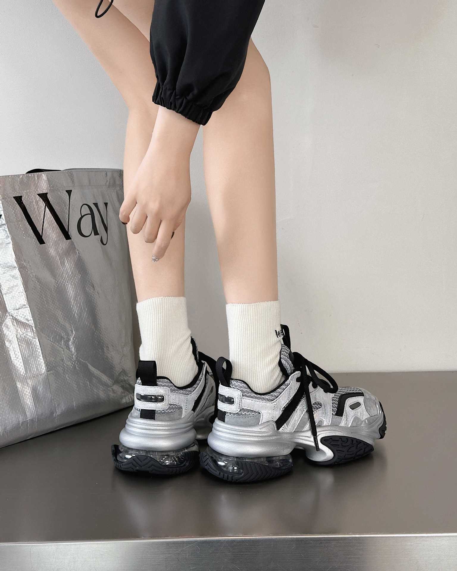 정품 가죽 두꺼운 바닥 증가 캐주얼 토르 신발 여성 2025 년 봄 가을 새 한국 스타일 라운드 토 레이스 부드러운 바닥 운동화 트렌디스토어 가기