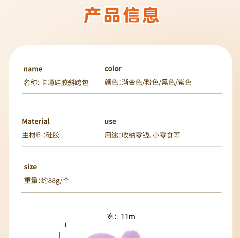 국경 간 만화 어린이 가방 멜로디 어린 소녀 크로스 바디 가방 휴대 전화 가방 어깨 가방 귀여운 실리콘 동전 지갑