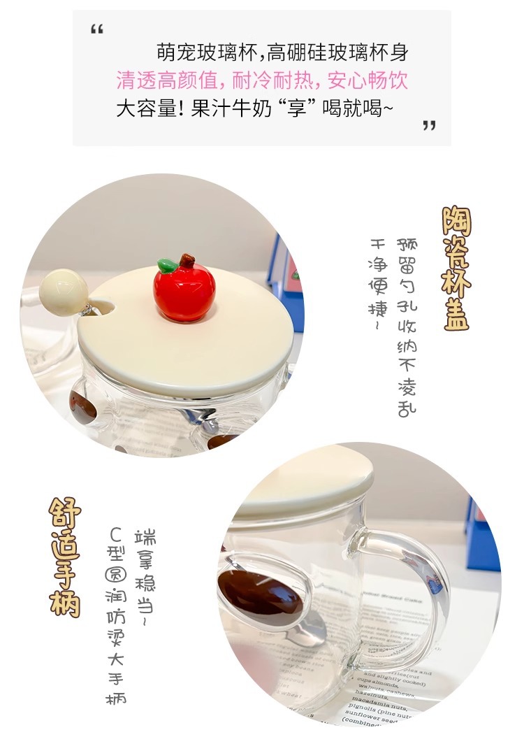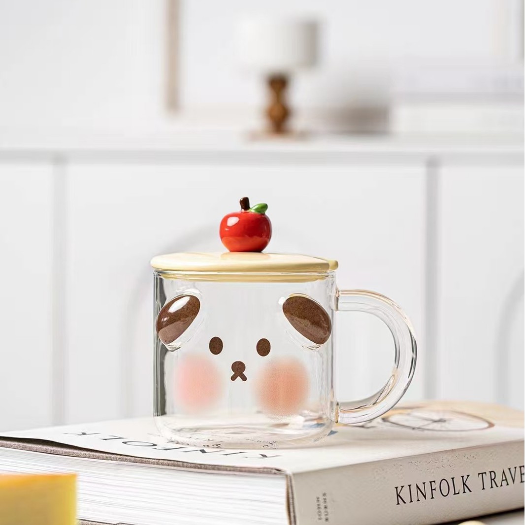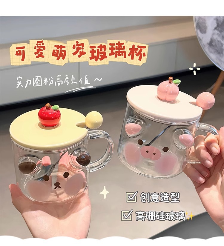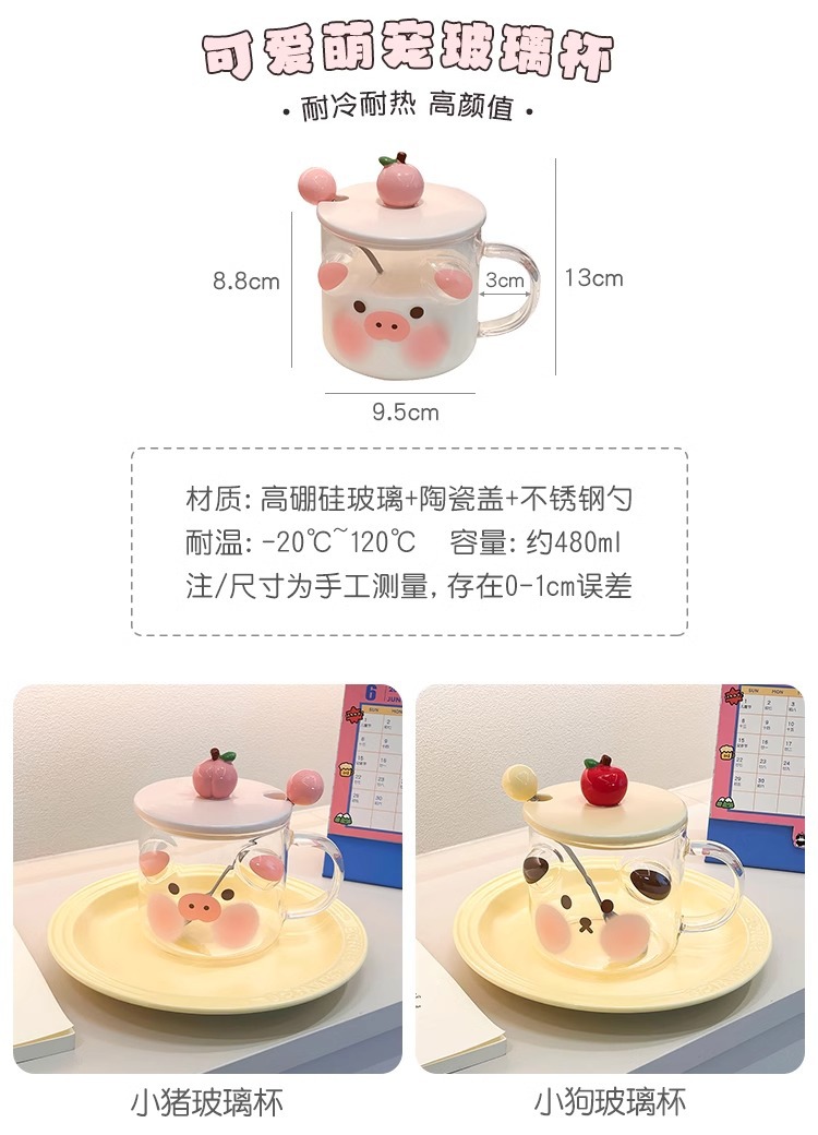 돼지 높은 색 가치 유리 머그잔 가구 전자 레인지 난방 컵 뚜껑 귀여운 마시는 컵 여자의 높은 온도 저항
