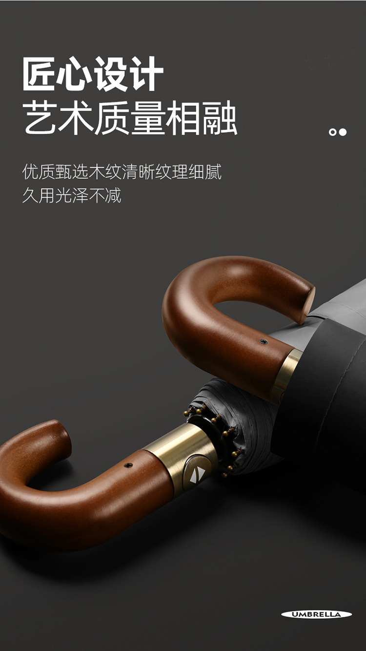 국경 간 고급 완전 자동 우산 단단한 나무 손잡이 비닐 강화 태양 보호 사용자 정의 조각 생산 로고 광고 우산