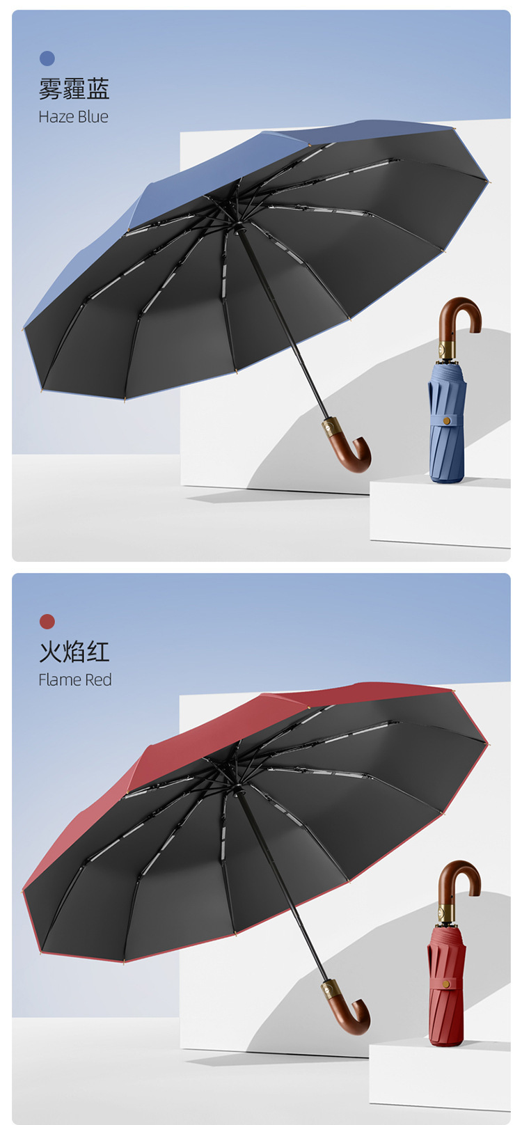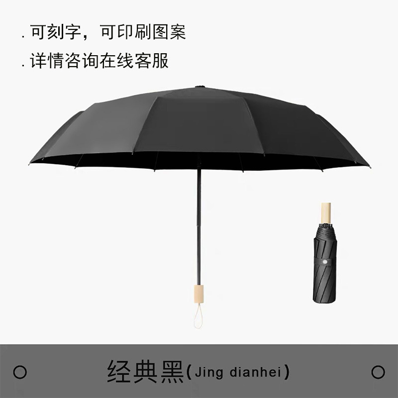 국경 간 고급 완전 자동 우산 단단한 나무 손잡이 비닐 강화 태양 보호 사용자 정의 조각 생산 로고 광고 우산스토어 가기